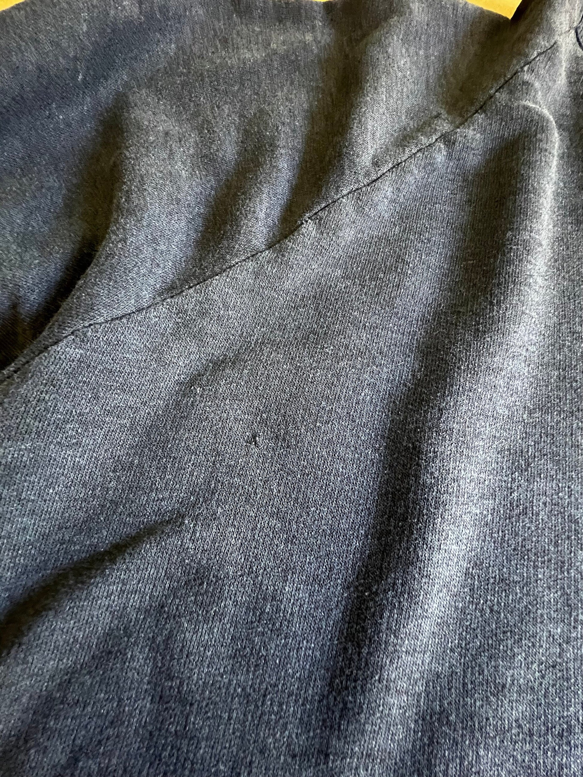 One of my absolute favorites, this 70’s/80’s raglan crewneck sweatshirt is worn to absolute perfection! Super soft and paper thin with the best feel and drape. No stains and only one tiny pinhole in the back. No tag measures 24” pit to pit and 23” top to bottom.