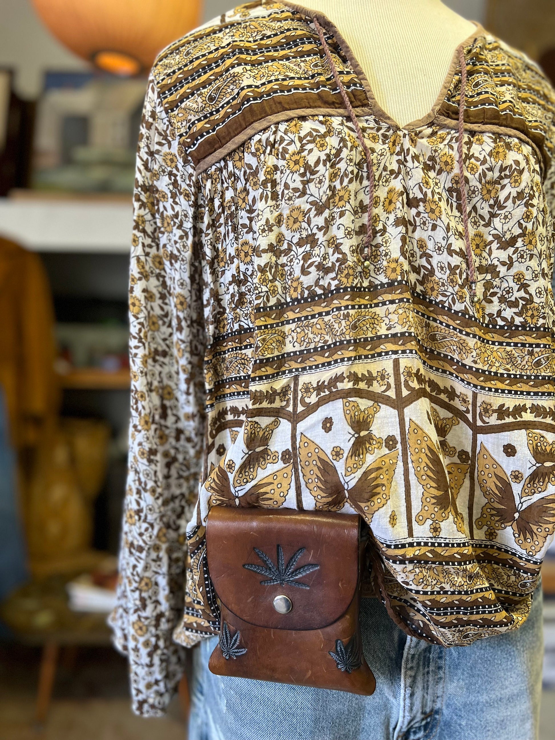Vintage 70’s Hand Tooled Leather Belt Bag Weed Leaf Mary Jane