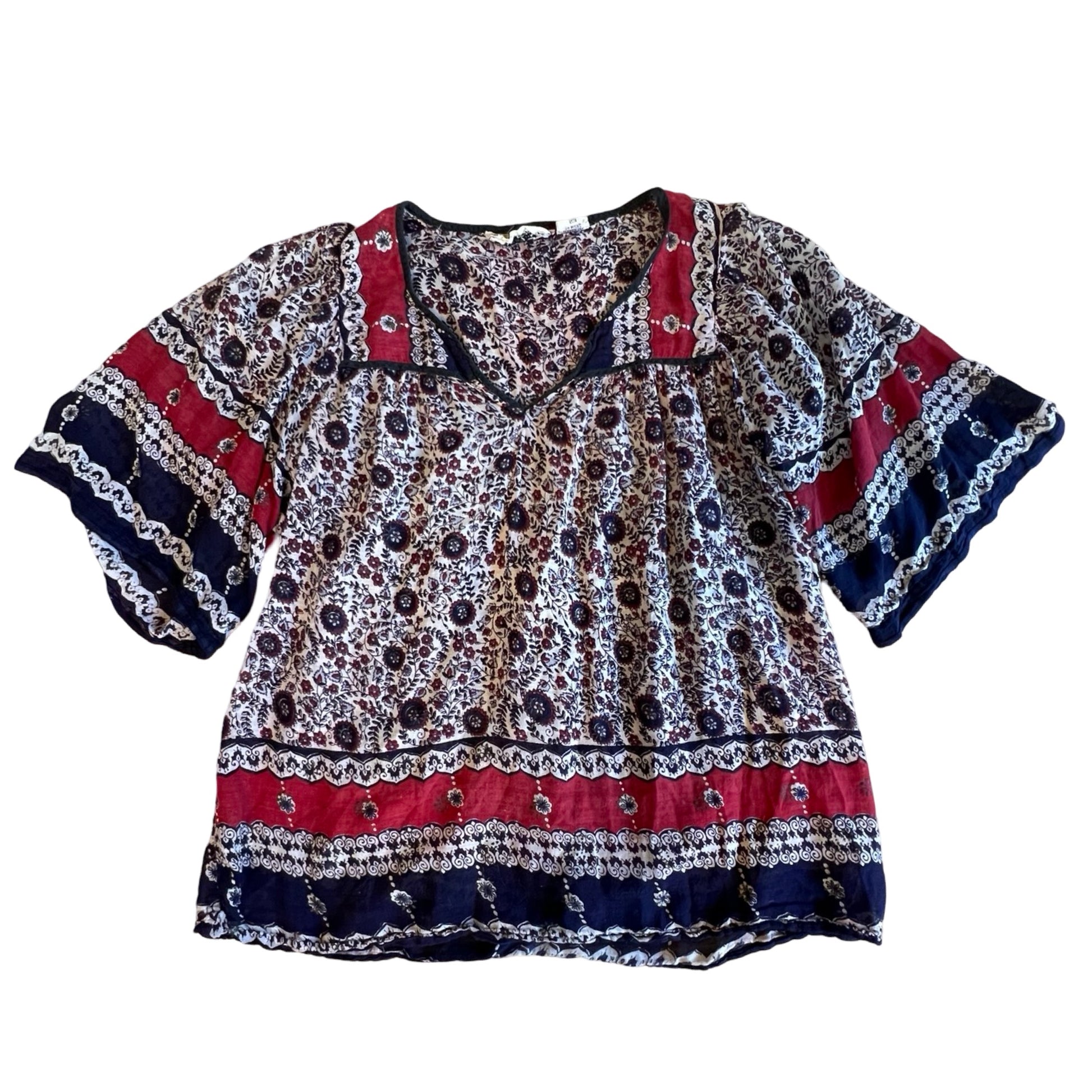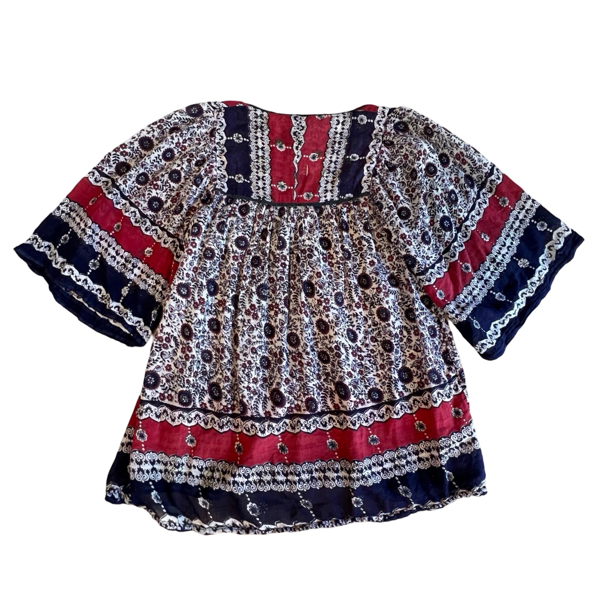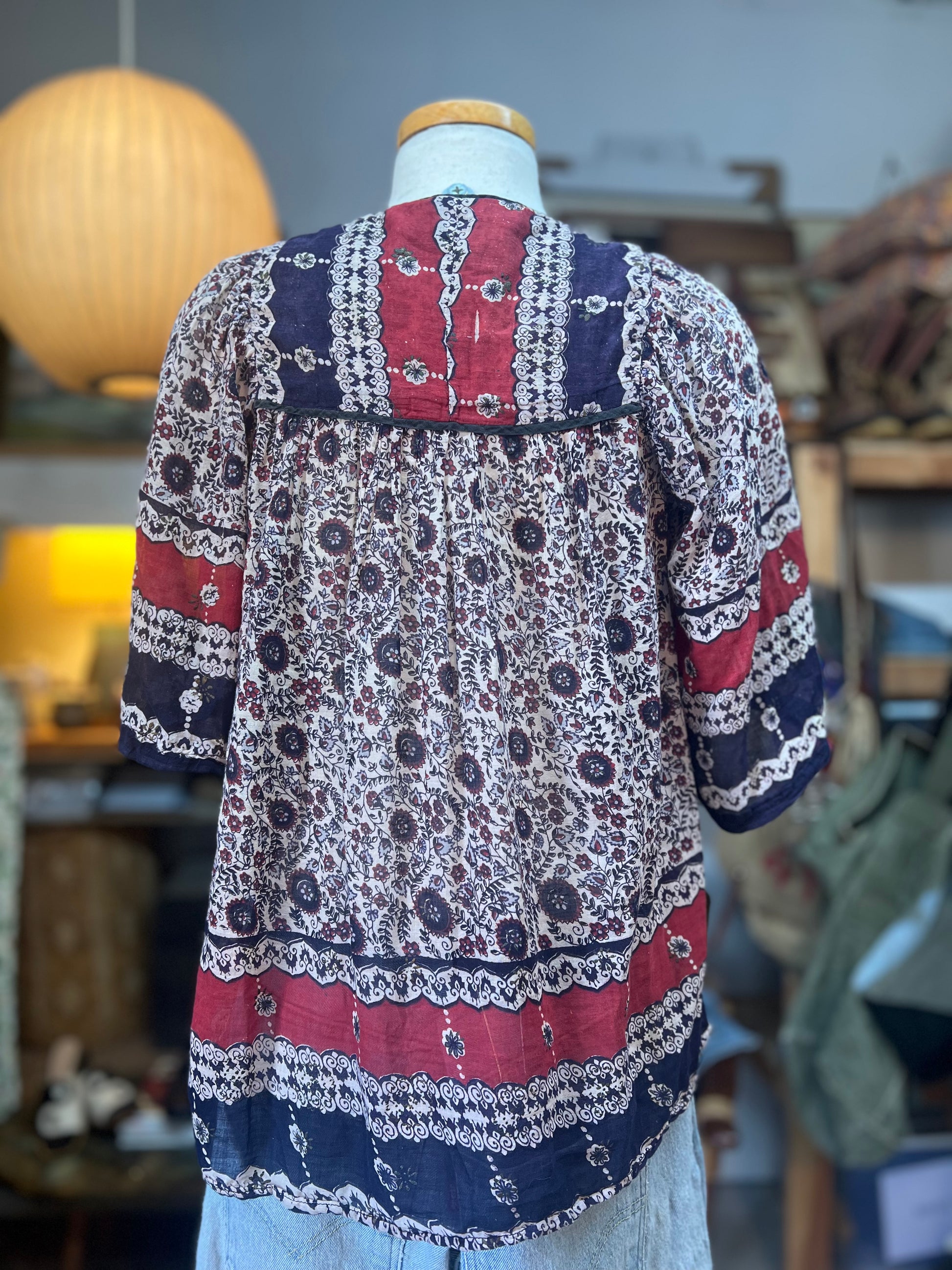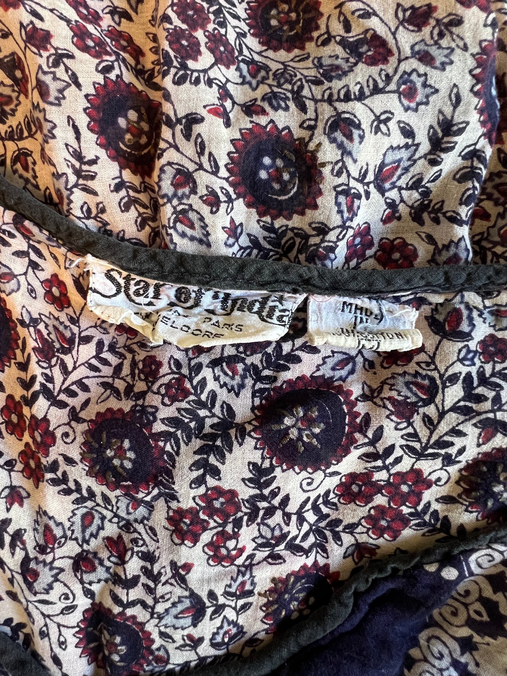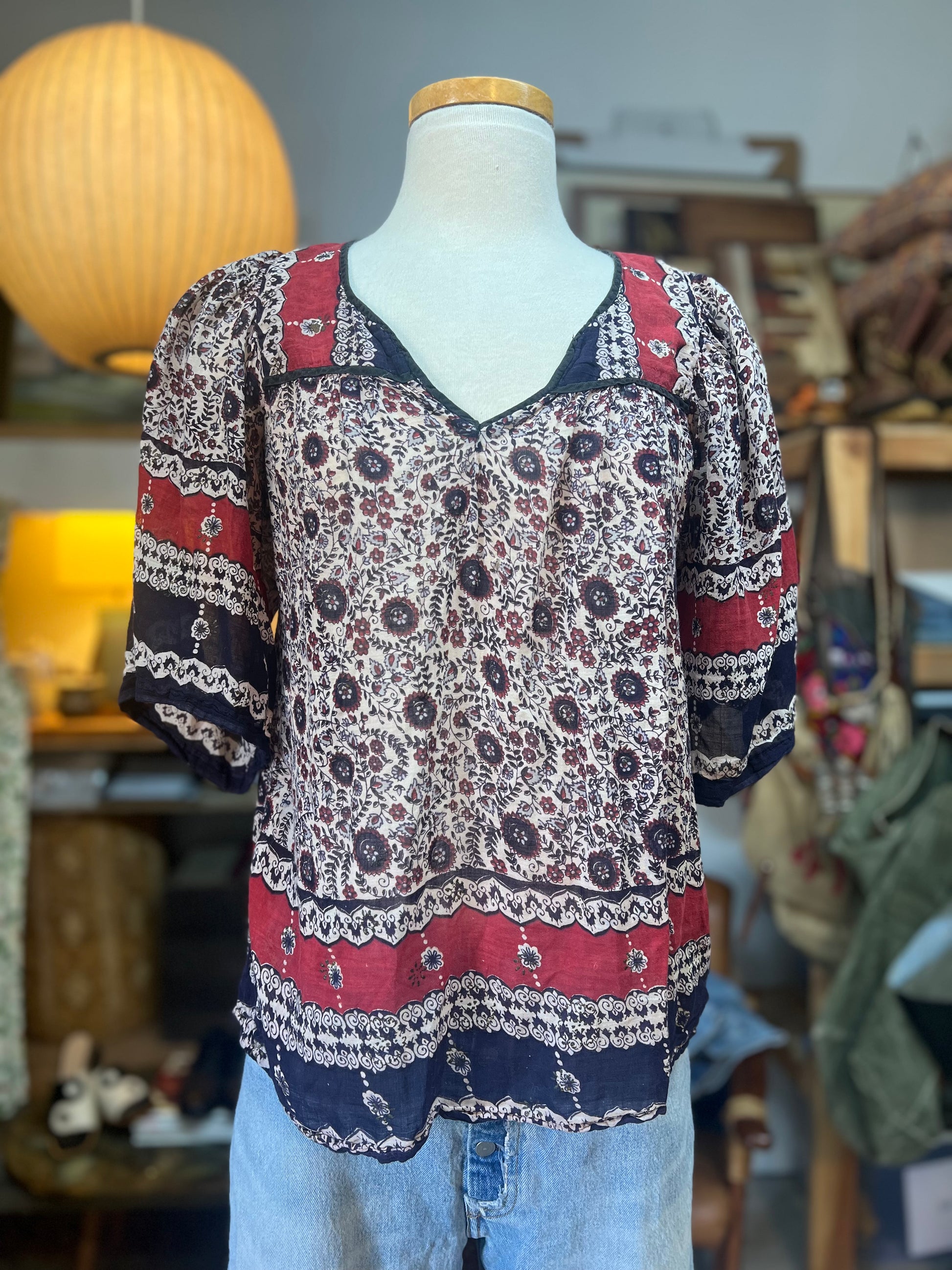 Vintage 70’s Star of India Sheer Cotton Gauze Block Print Blouse