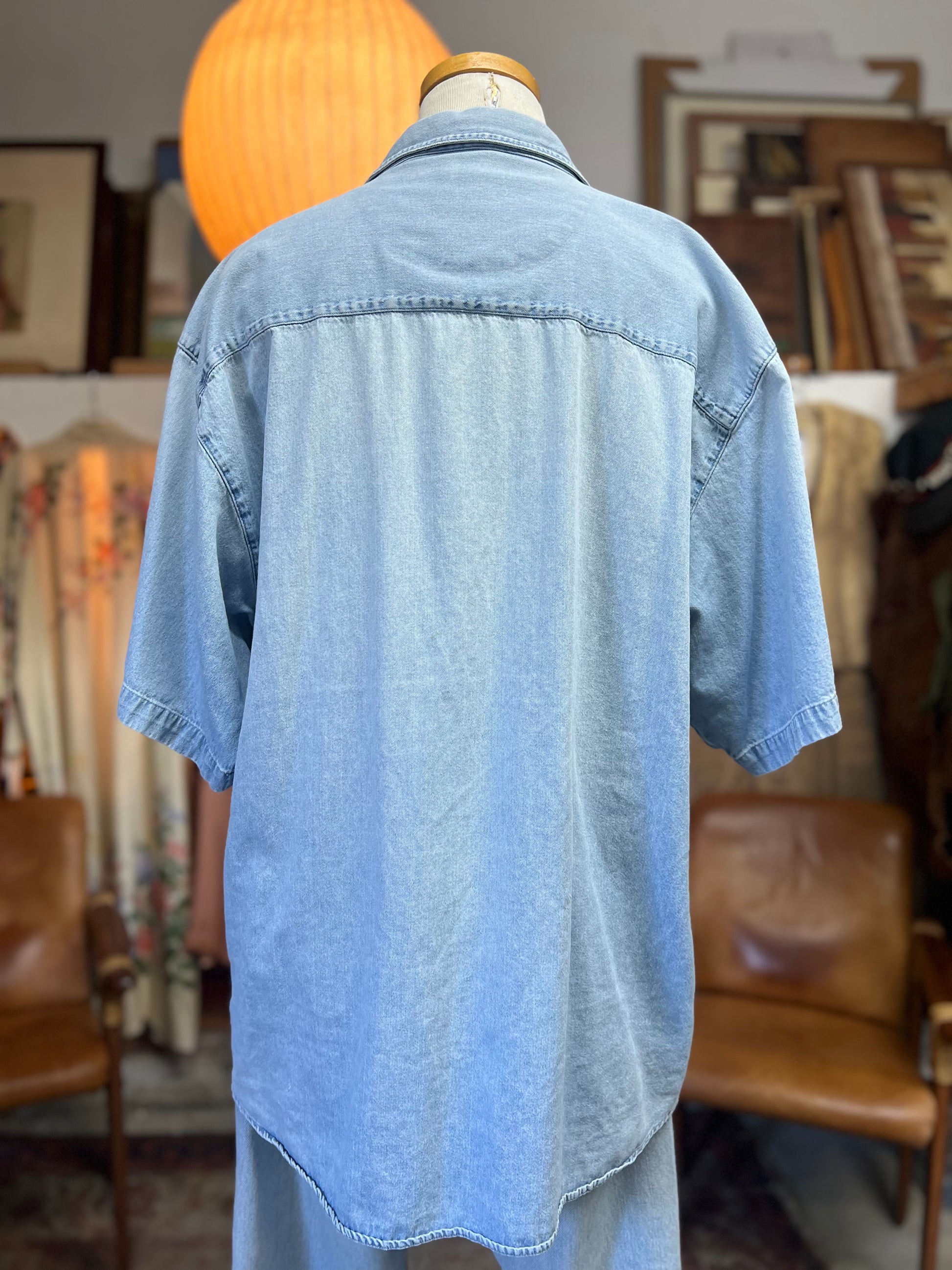 Vintage 80’s Bugle Boy Oversized S/S Faded Soft Denim Shirt XXL