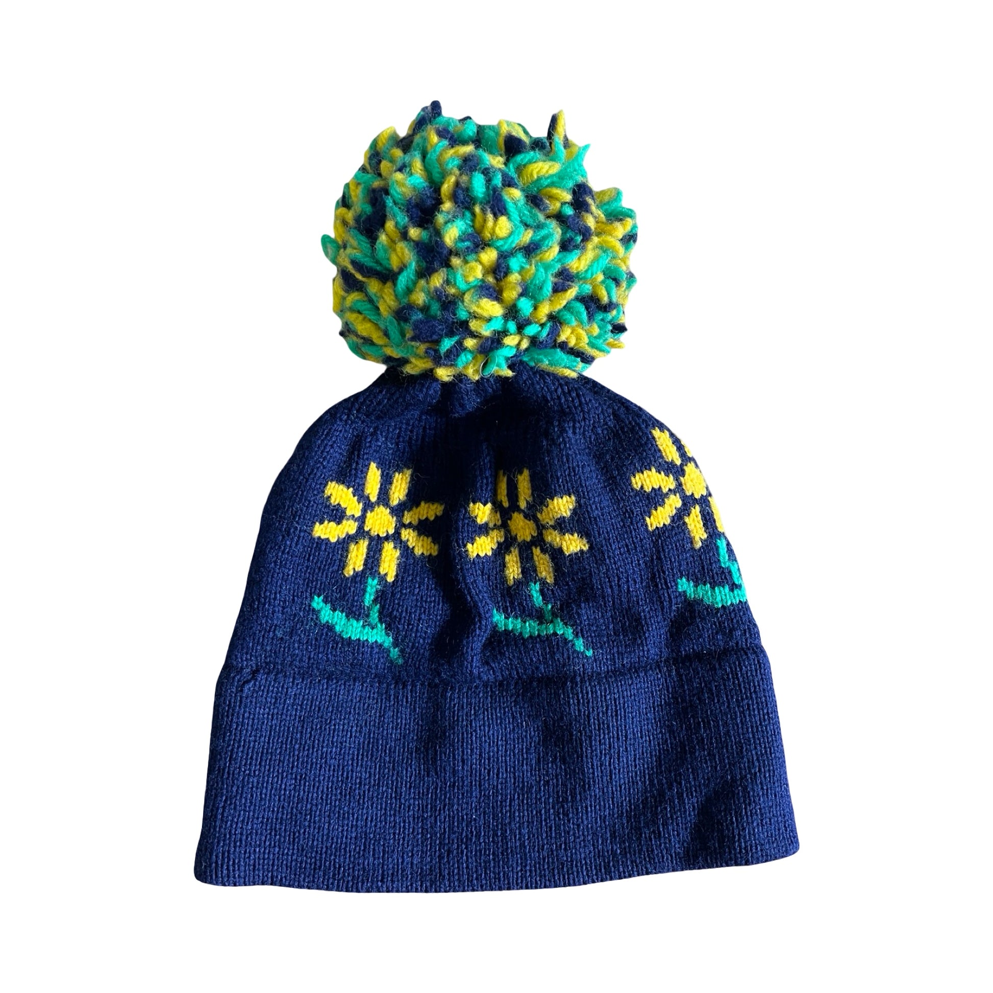 Vintage 80’s CB Daisy Pom Pom Wool Ski Hat O/S