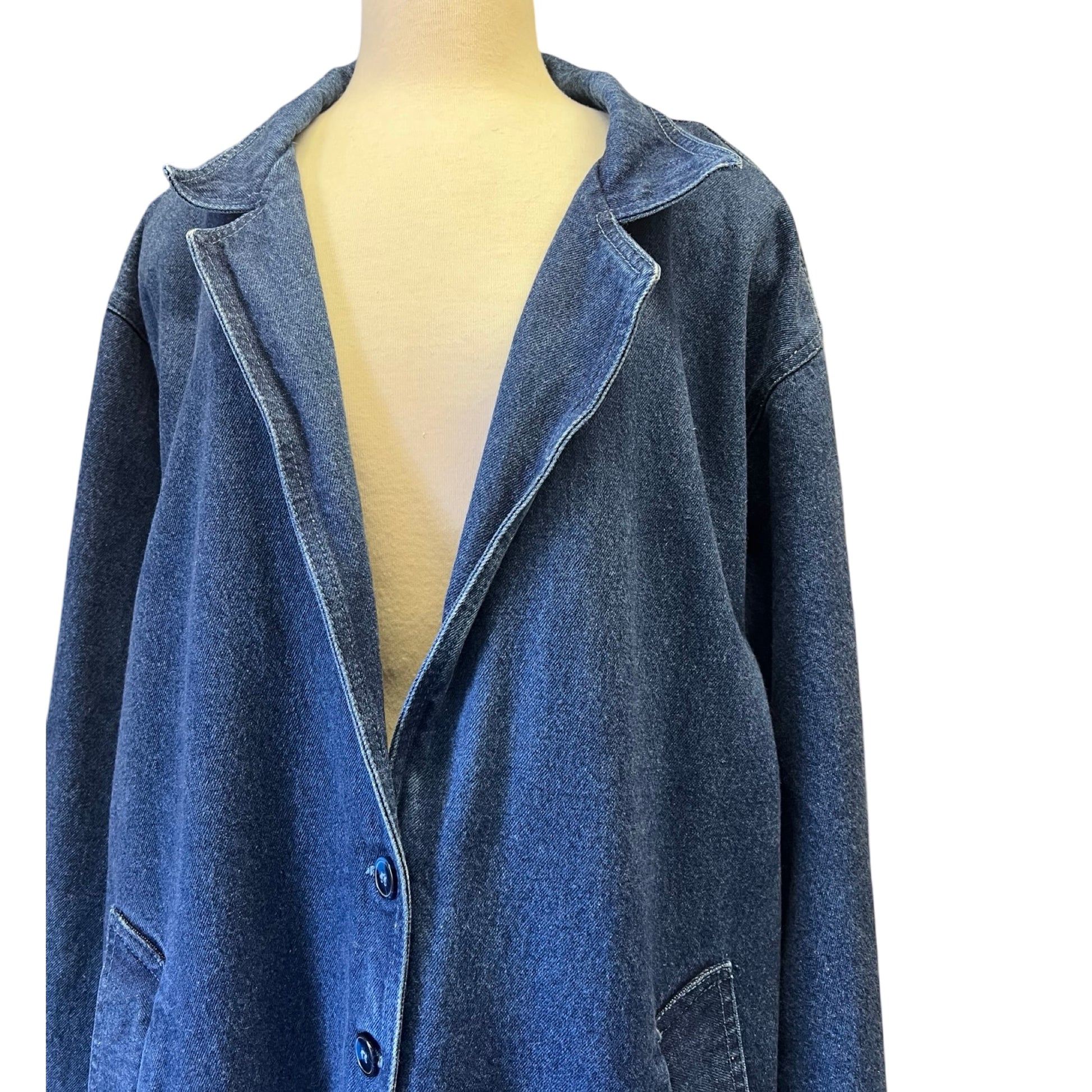 Vintage 80’s Denim Duster Trench Coat Illusions L