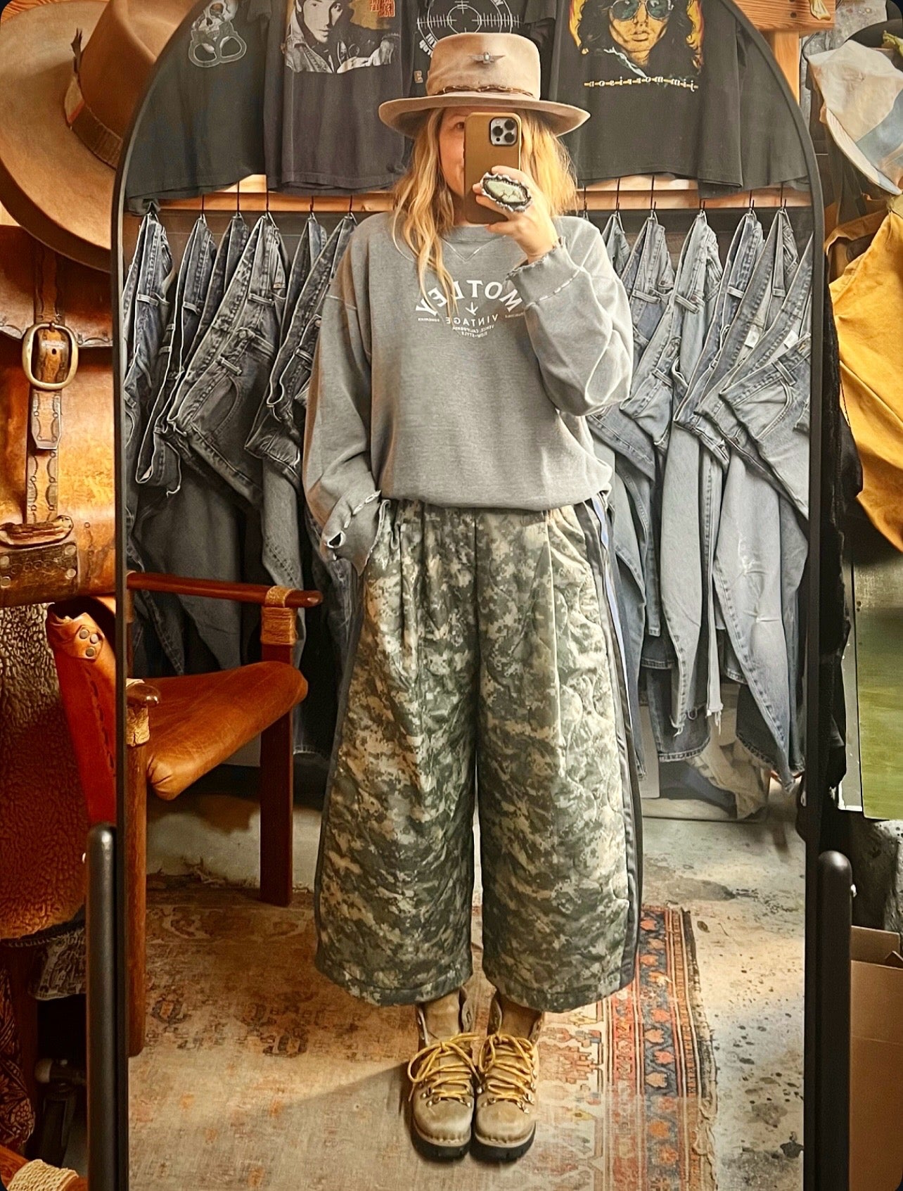 The first Motley Vintage sweatshirt I ever made! I’ve been wearing this around for the last year and just decided to make more. They’re all on vintage blanks, like this heavily distressed and butter soft 80’s Gap sweatshirt. This logo (and all my branding) was thoughtfully and lovingly made by my guy, Gregory Beauchamp of @beauchamping fame :)Tag size XL, measures 27” pit to pit and 26” top to bottom for a loose boxy fit. This one is extra special since it was the first!