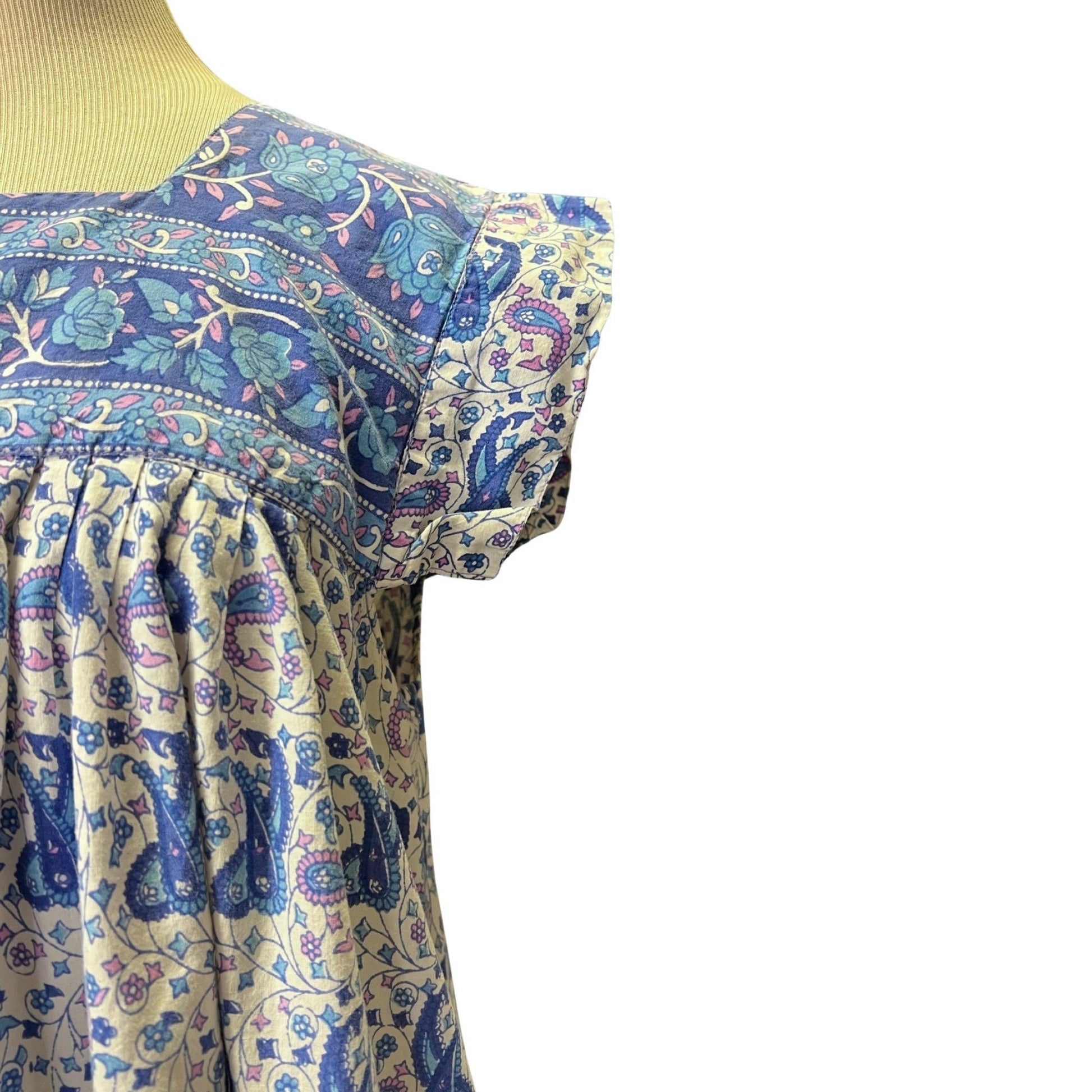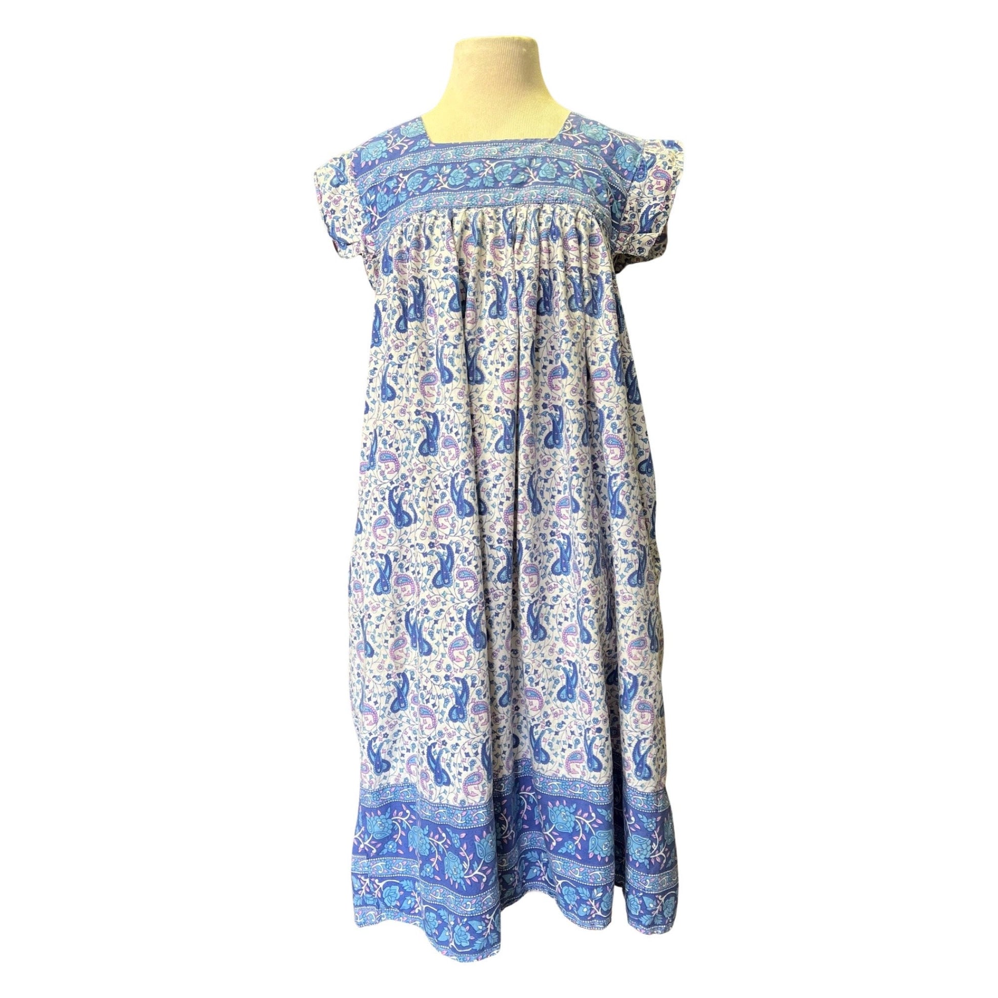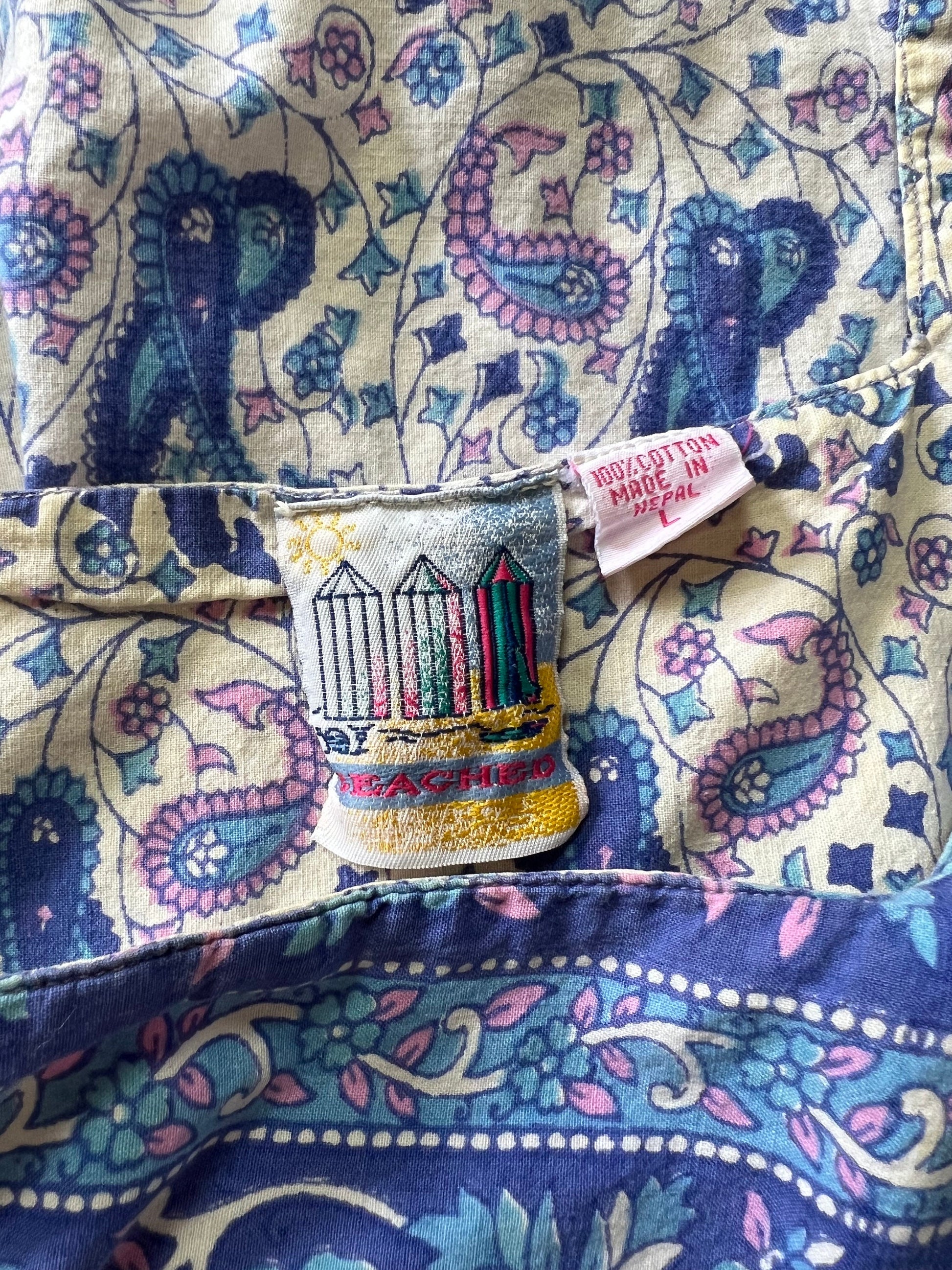 Vintage 80’s India Block Print Midi Dress with Pockets Made In Nepal L