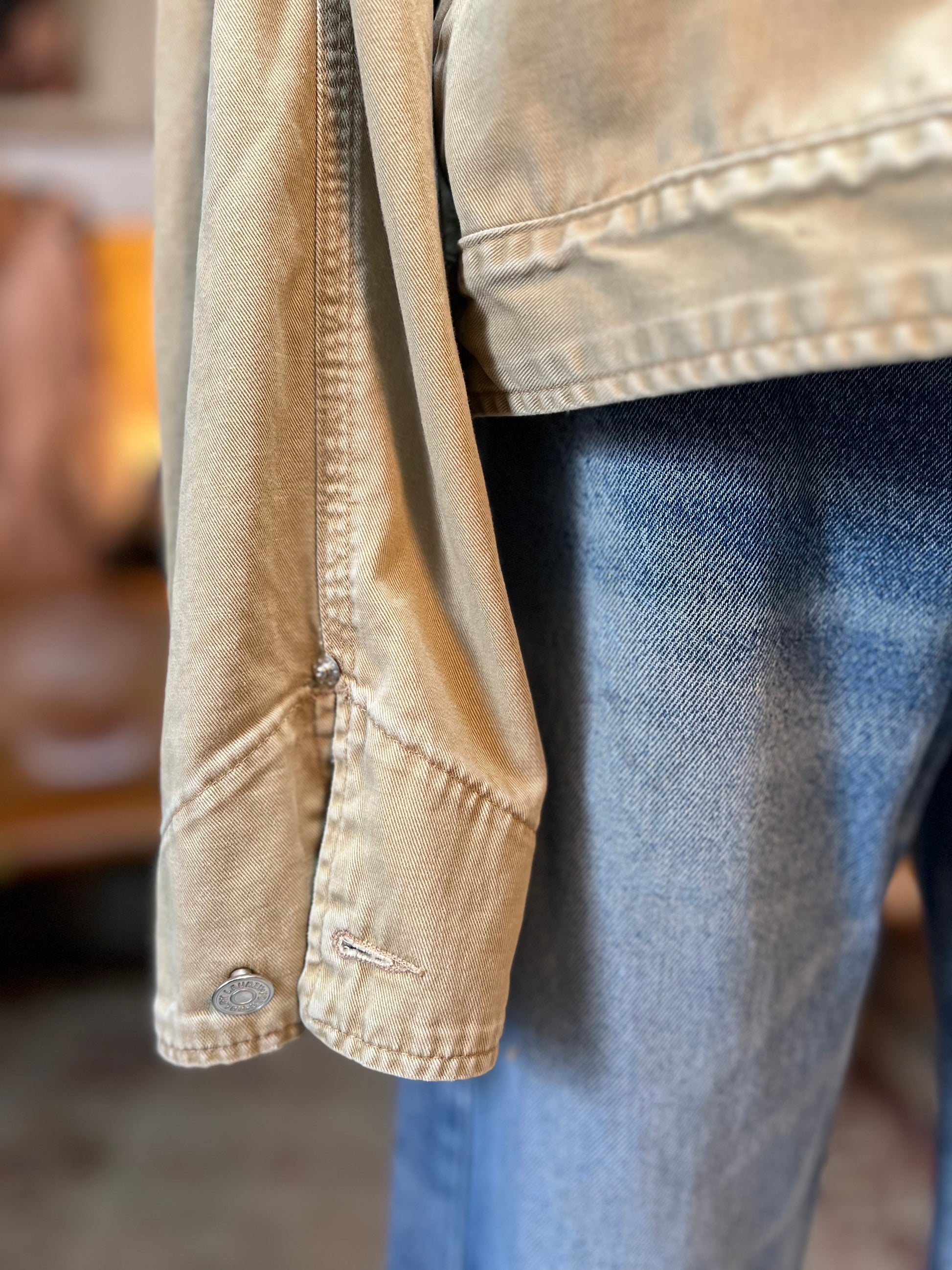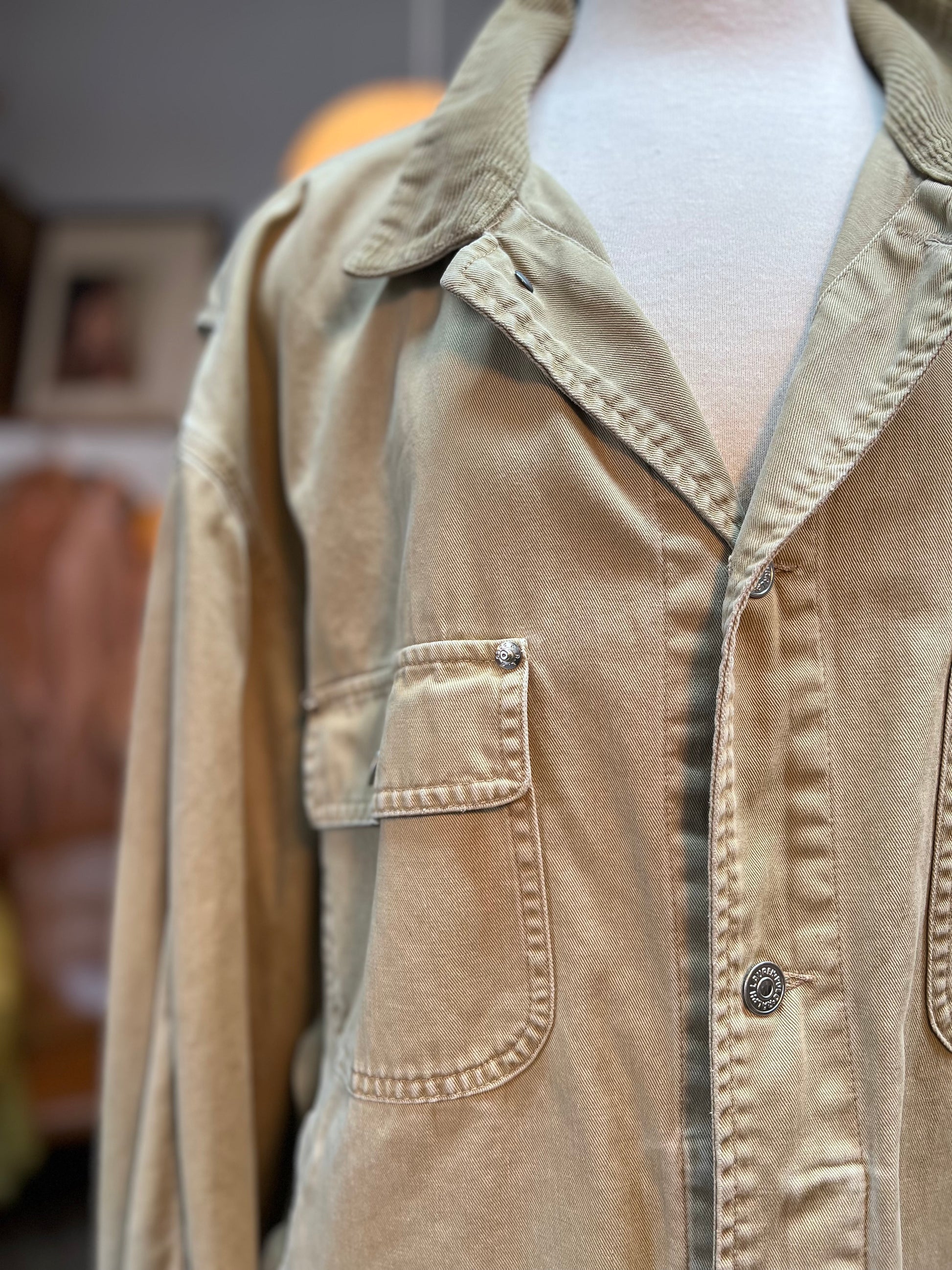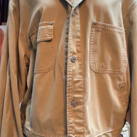 Well let’s just start with the fact that I’ve had this jacket since college!! Super rare vintage 80’s Ralph Lauren Polo Country barn jacket with corduroy collar, worn soft and thin with a beautiful drape. Oversized slightly boxy fit, tag size XL measures 27” pit to pit (almost a dolman sleeve) and 24” top to bottom. Authentic Dungarees leather label on back dates to the 80’s through early 90’s workwear pieces produced by Ralph Lauren. There are a few faint pink-ish stains on the back (see pics) but not really noticeable. This jacket is in incredible vintage condition and has lived an action packed life in 80’s/90's Newport, RI! Please give her the loving new home she deserves ;)