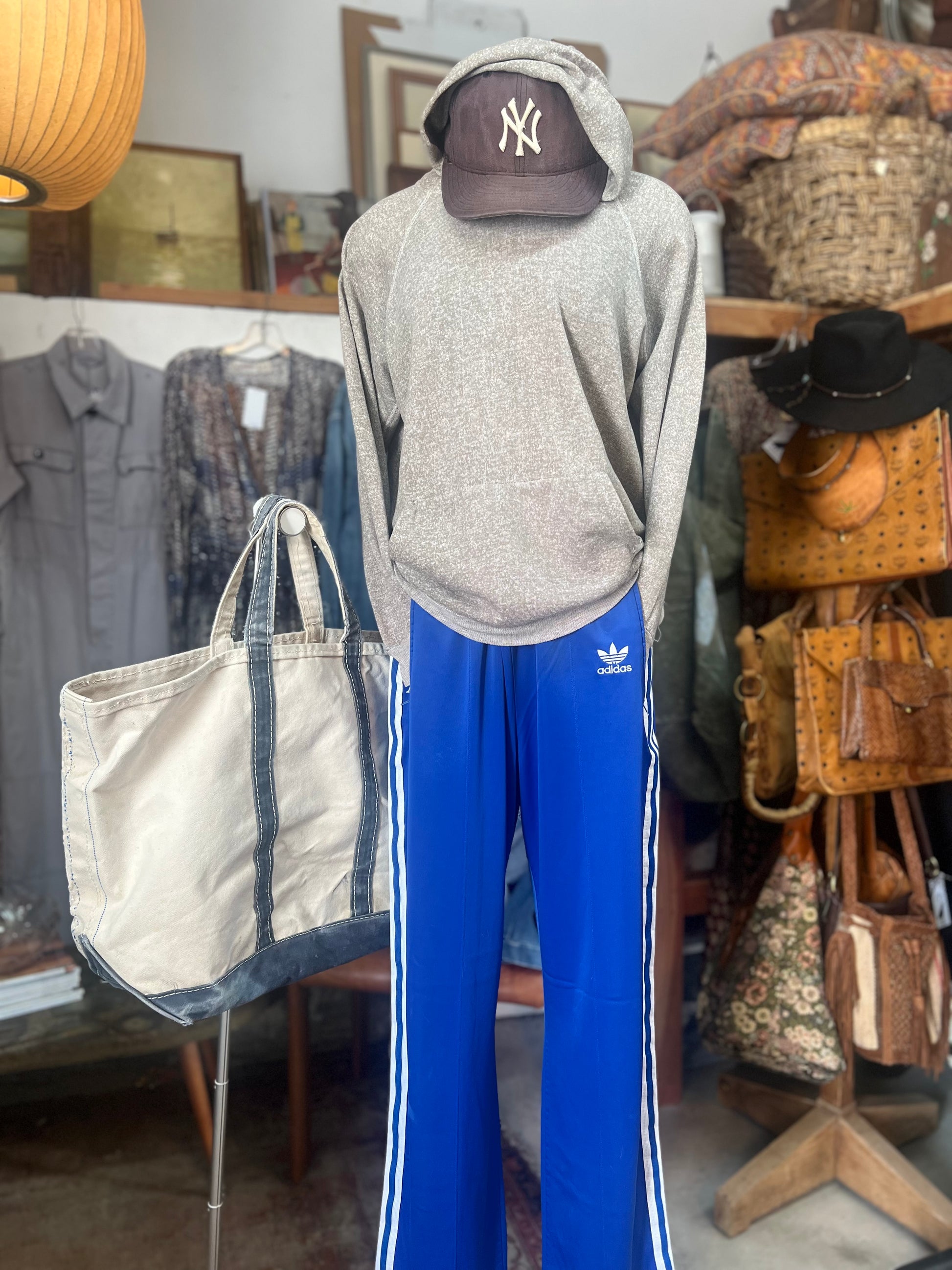 This bag is a work of art! Worn to absolute perfection, the patina on this XL vintage 80’s Lands End canvas tote is incredible. Worn and distressed with spots, stains, fraying, and separation at handles. This bag has been through it but has tons of life left. Quintessential East Coast New England classic style. SO GOOD.