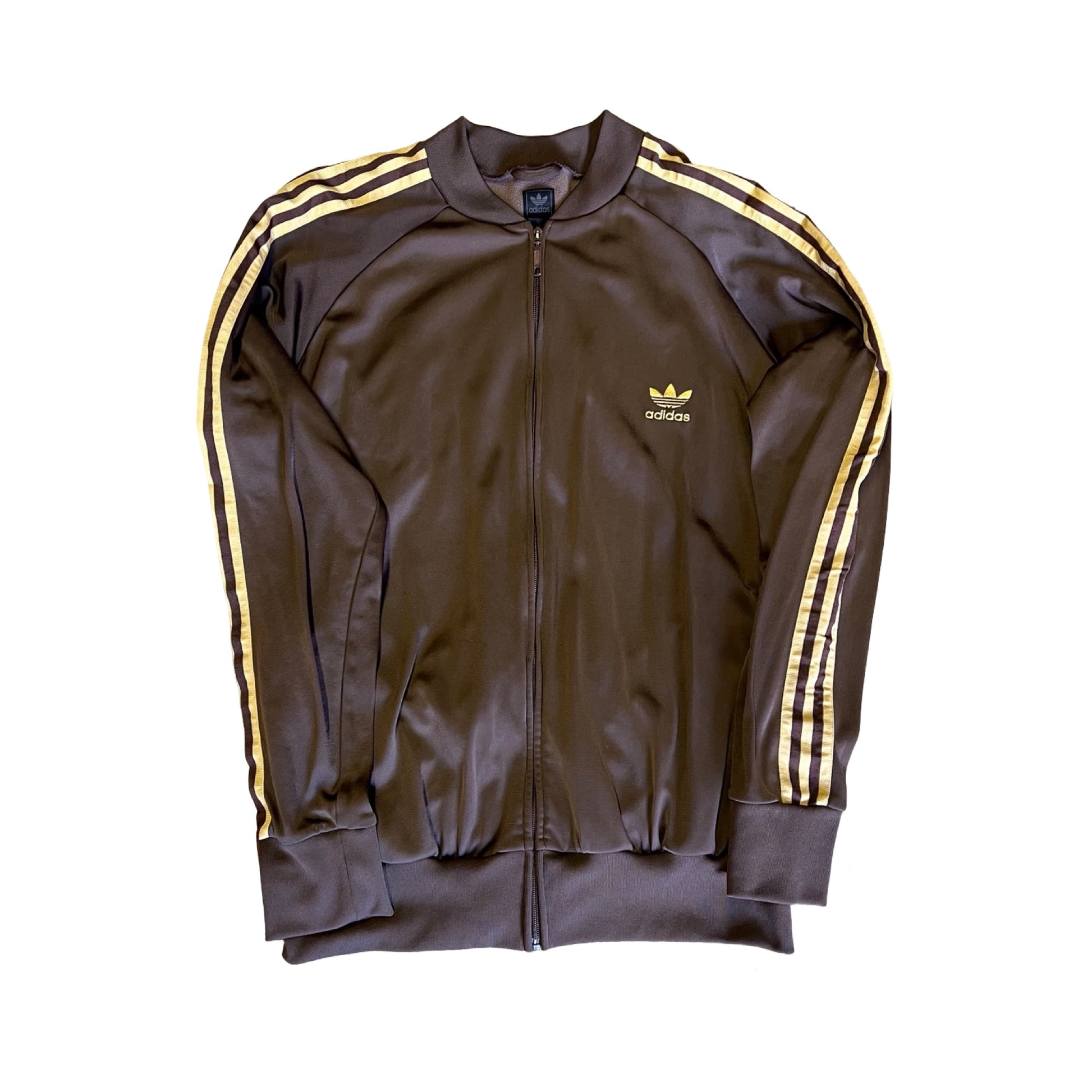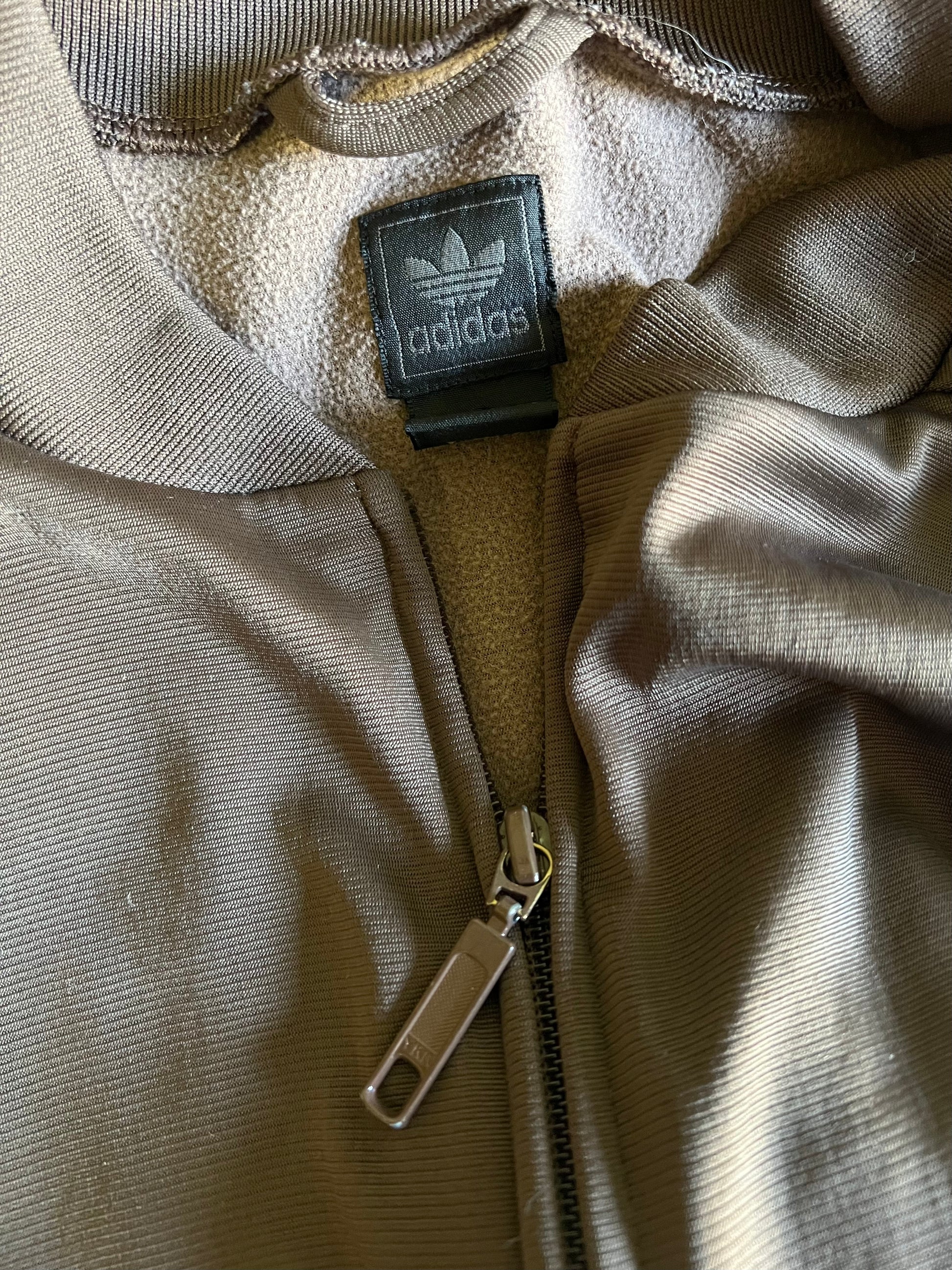Vintage 90’s Adidas track jacket. Zip front, two front pockets, brown & gold colorway. Size XL measures 26” pit to pit and 28” top to bottom.