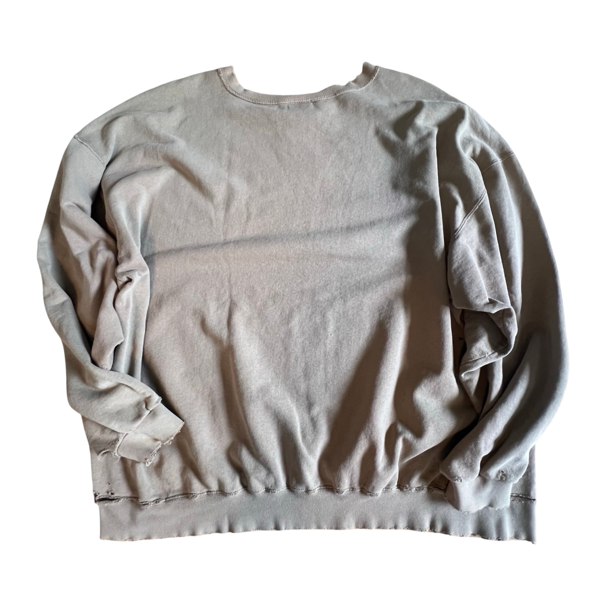 The best color and fade on this super distressed 90’s Nike swoosh logo sweatshirt! Small holes and marks throughout, super frayed at cuffs, neck and hem. Great oversized body fit on this cozy 90’s classic. No size on tag, measures 29” pit to pit and 27” top to bottom. **pics on mannequin show true color
