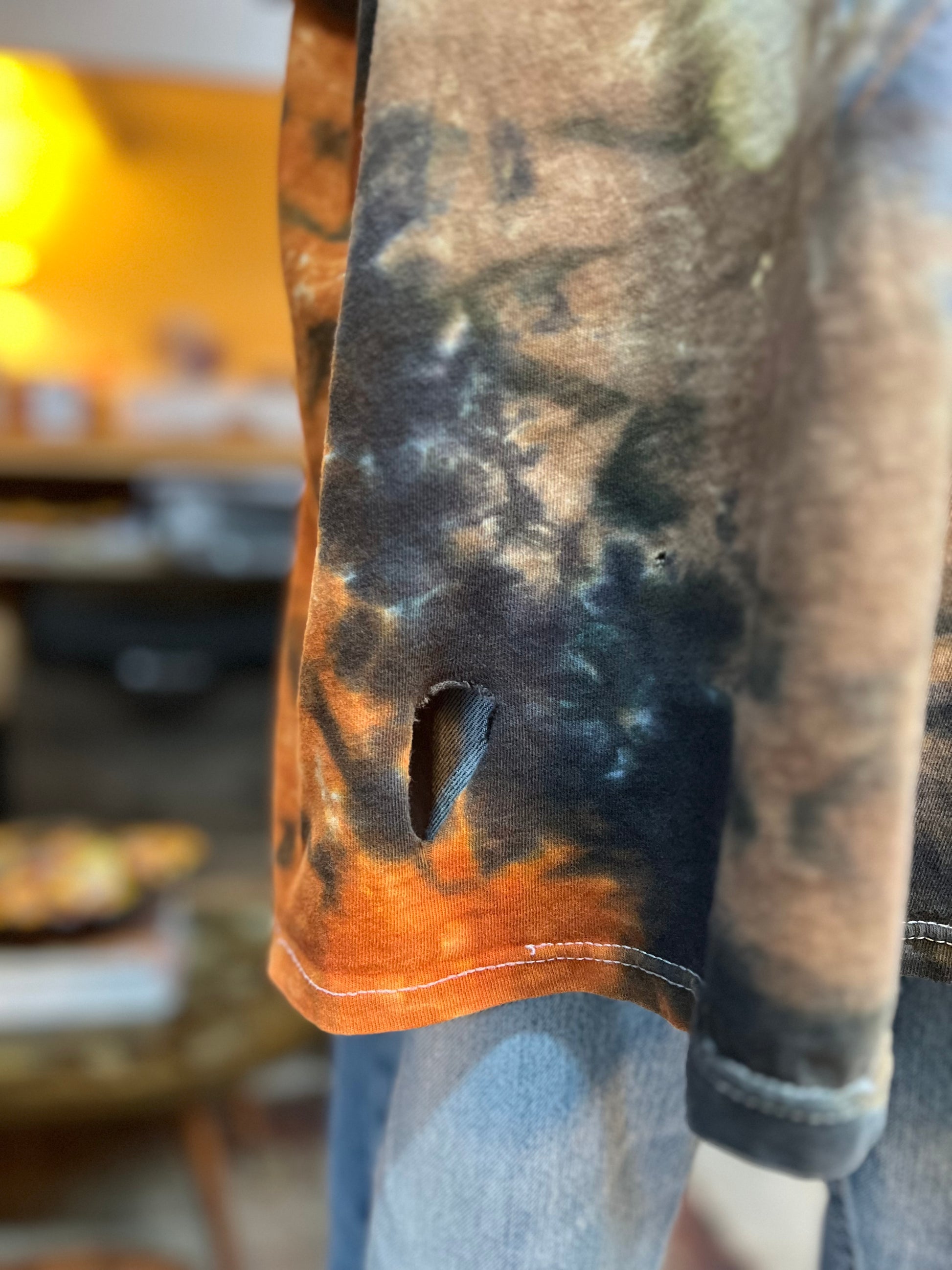 Vintage oversized & distressed tie dyed AC/DC tee. Small holes throughout, bigger hole in bottom front, not tags, measures 27” pit to pit and 29” top to bottom.