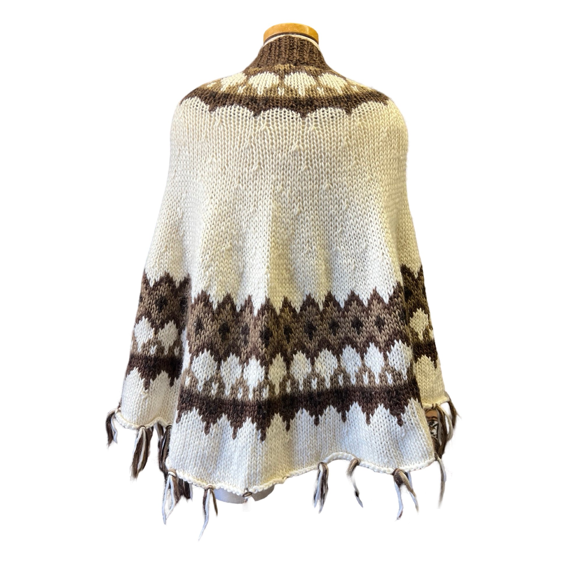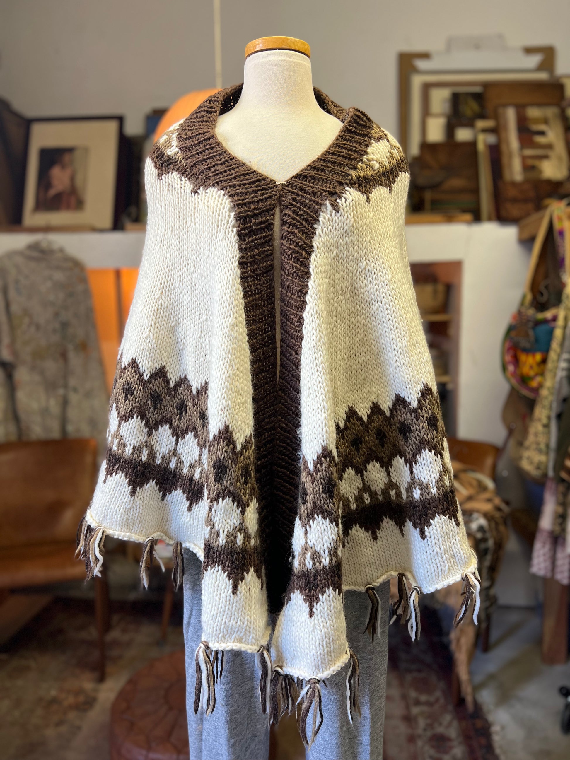 Vintage Alpaca Hand Knit Shawl Wrap Cape Scarf Sweater Cowichan Fringe O/S