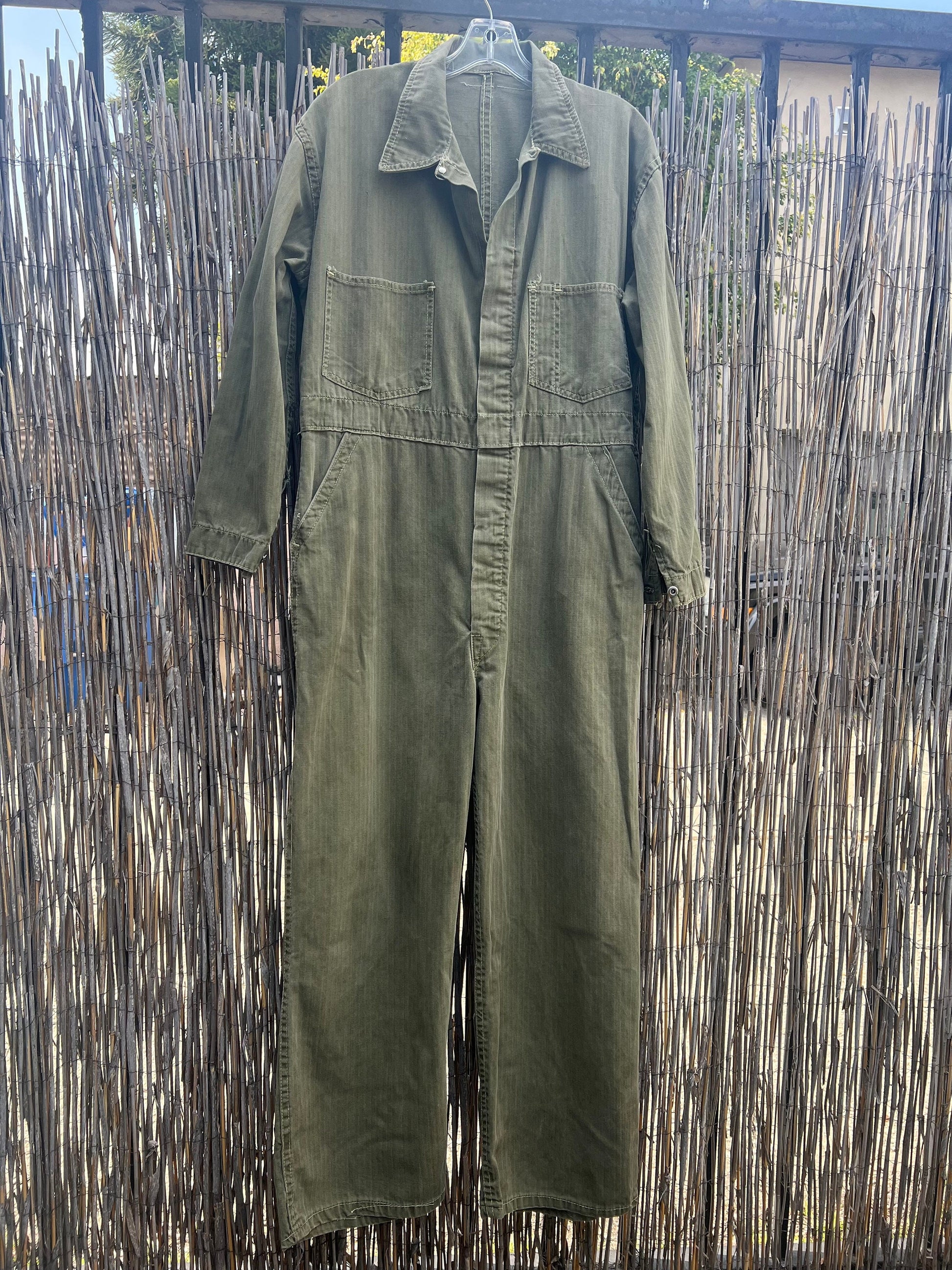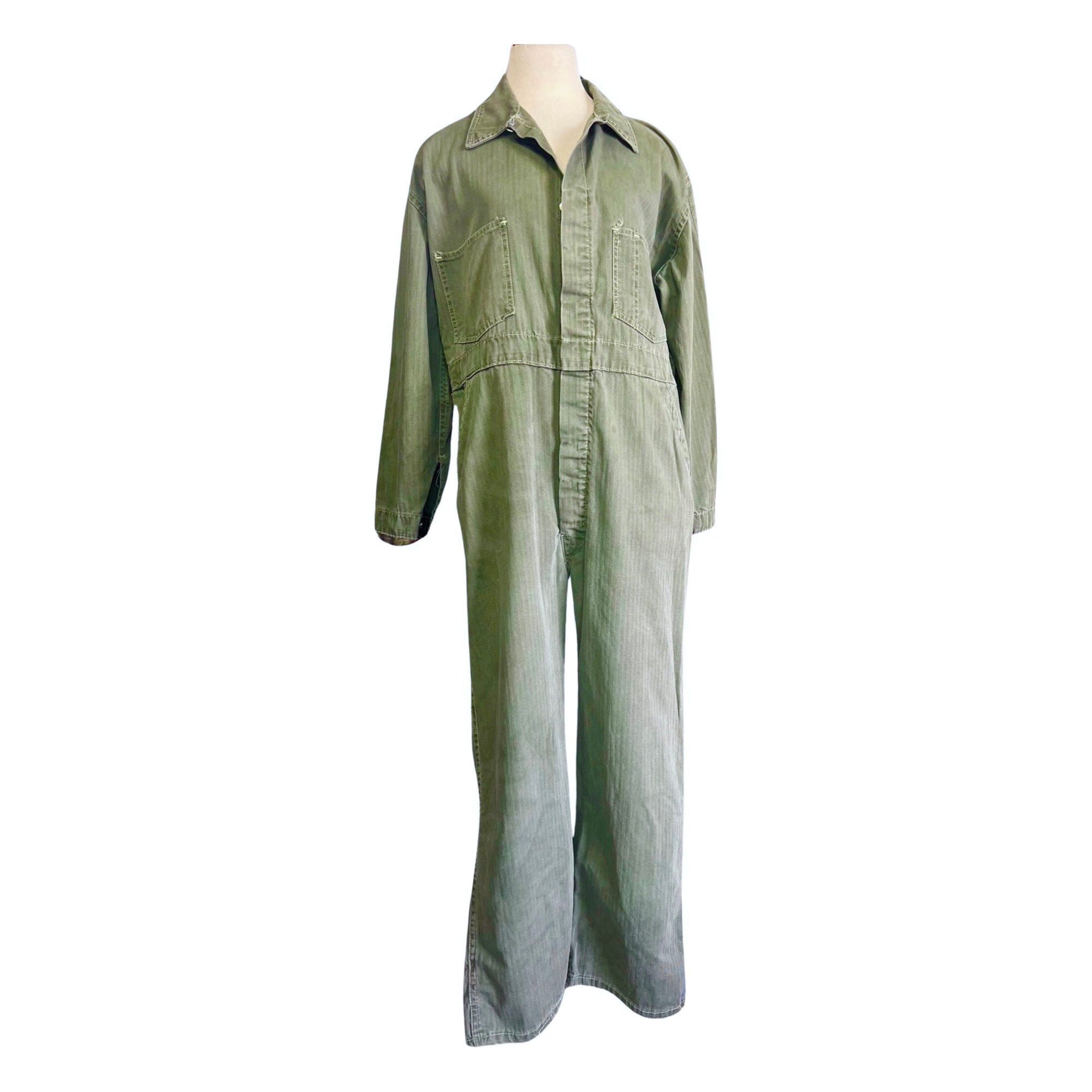 Vintage jumpsuit in great condition. Engineer striped, button front, very soft, and long and in length. Measures 24” pit to pit and 20” at waist.