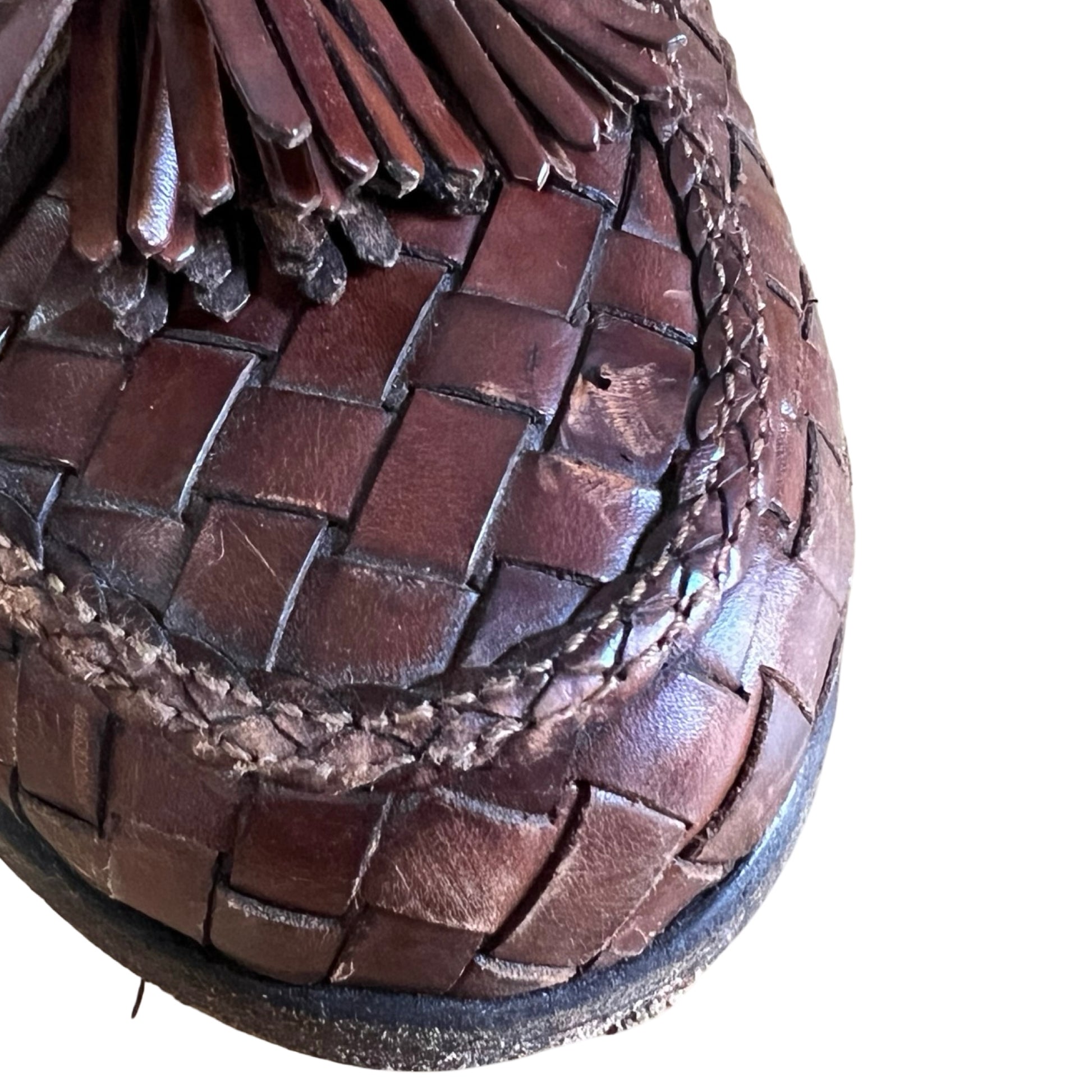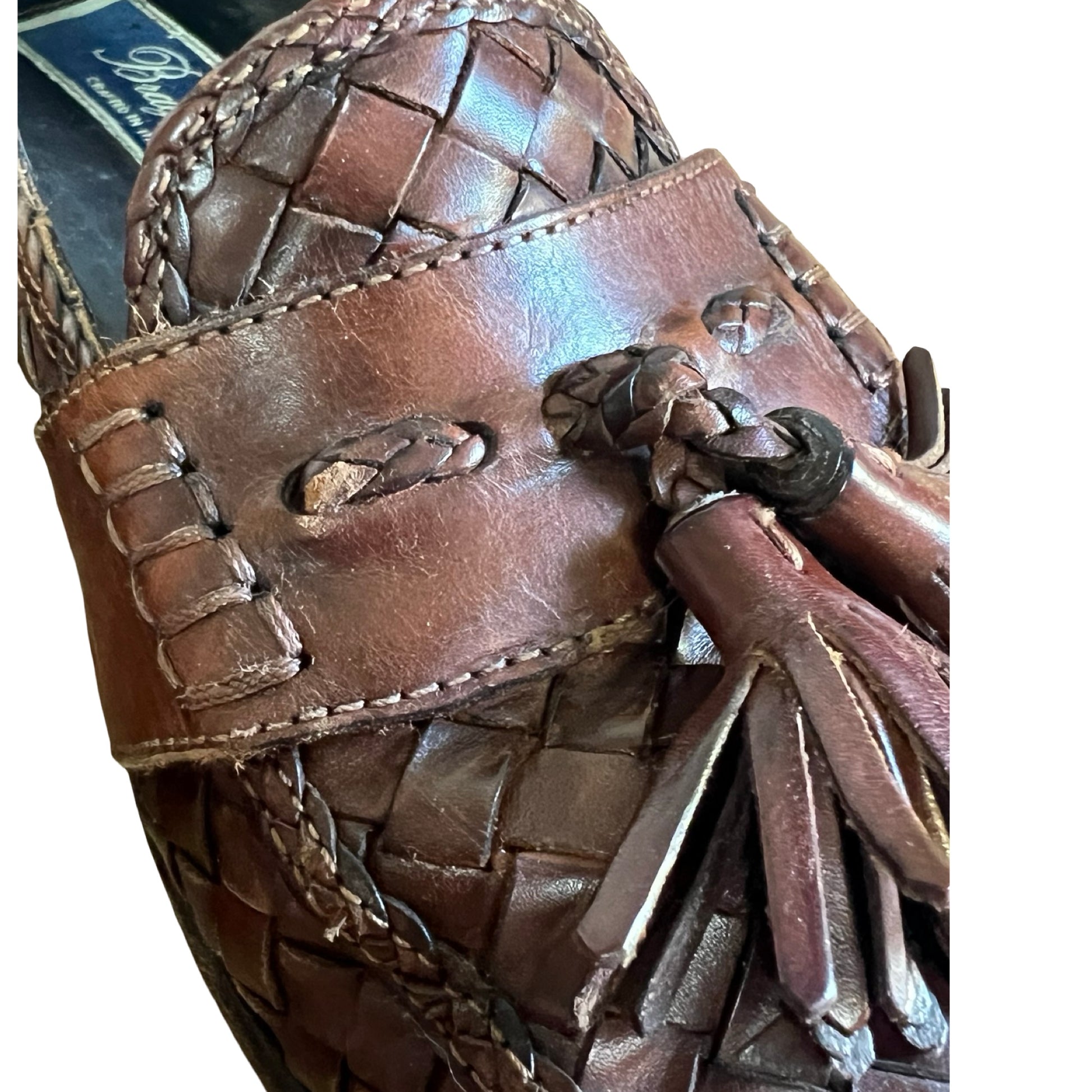 Vintage Bragano Distressed Woven Leather Tassel Loafers Made In Italy Men’s 7.5