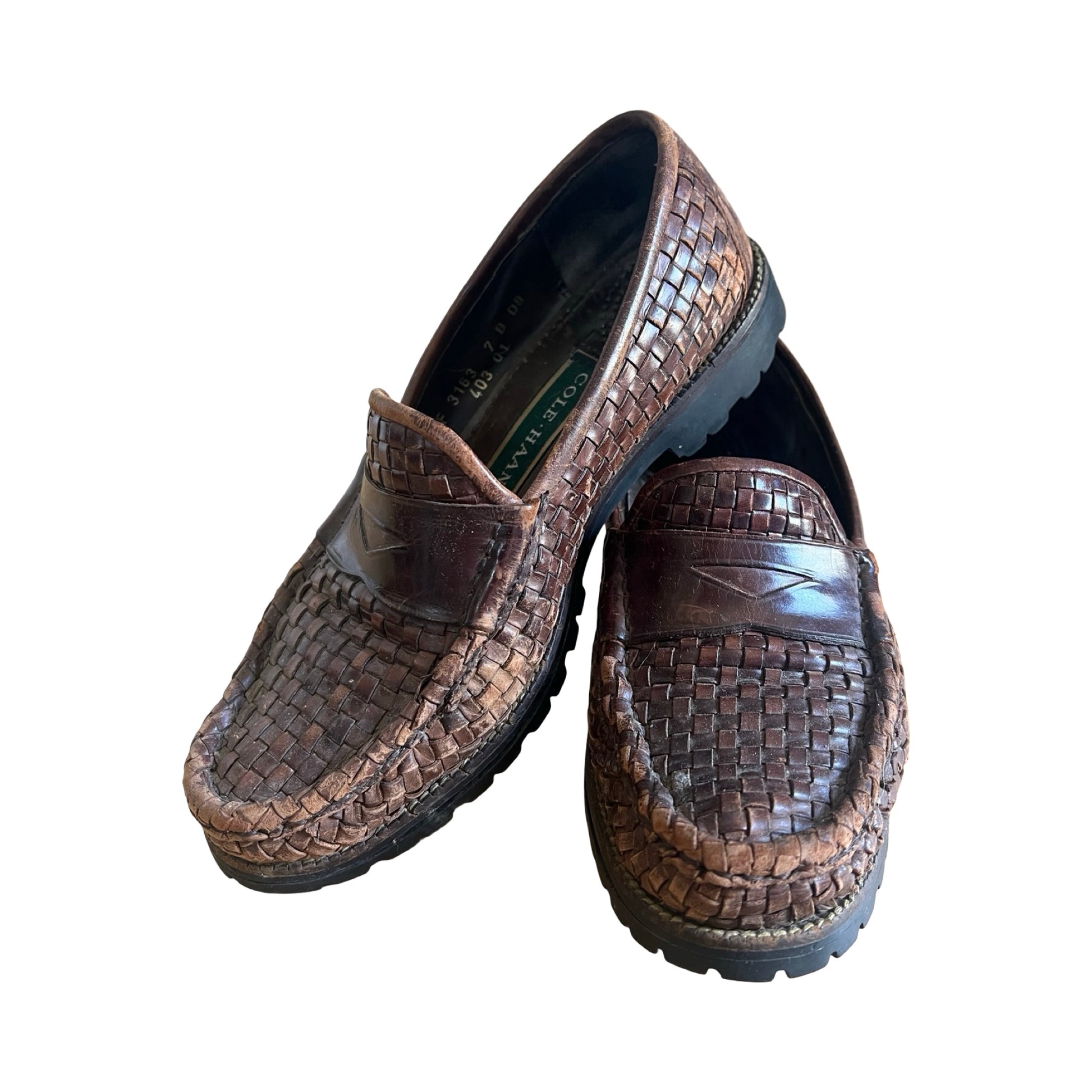 Vintage Cole Haan Woven Leather Loafers Worn to Perfection 7