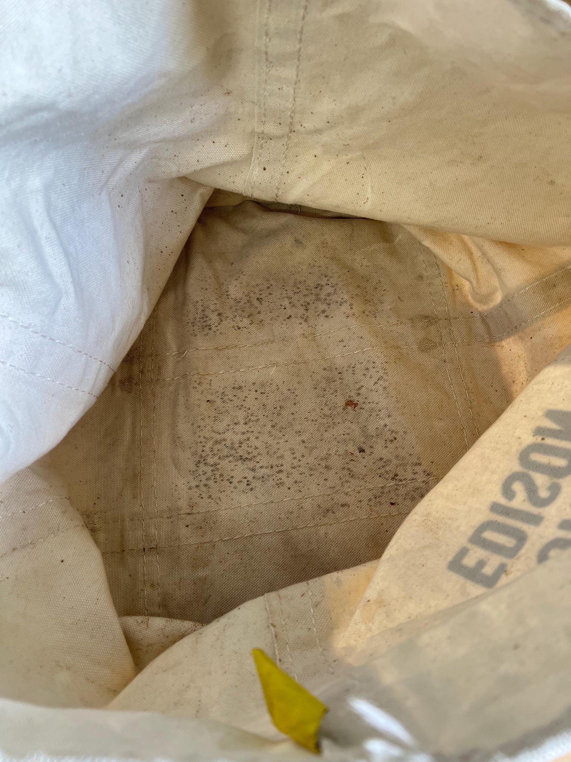 Vintage Con Edison canvas work utility tote by Dandux. Well worn, distressed, sturdy canvas work bag with spotting and marks throughout exterior and interior. Measures 18” x 14”. This one is hard to let go! So good
