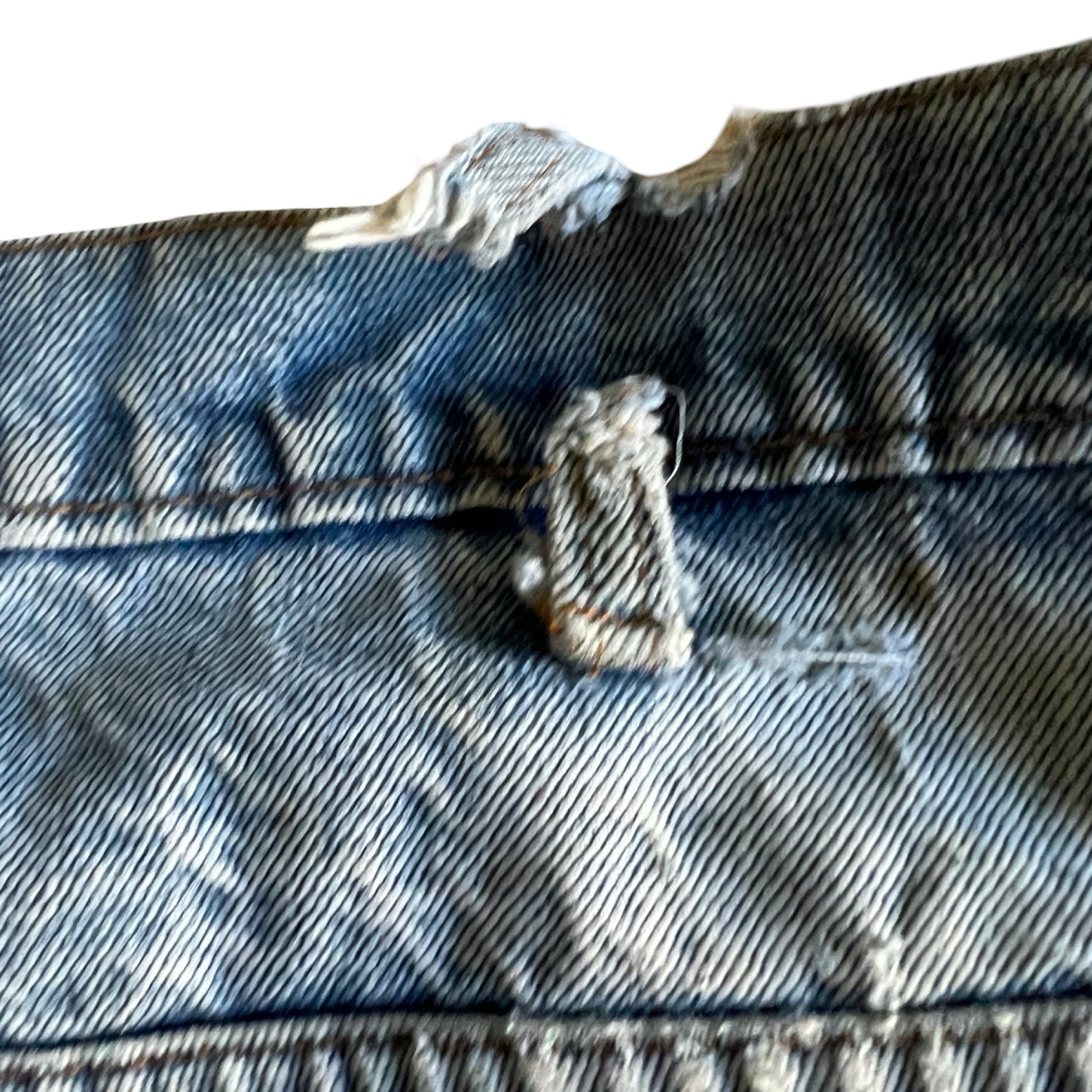 One of my grail pairs of vintage Levi’s!! These 517 orange tabs are perfectly worn, faded, and distressed with the most insane hem wear everrrrr (which is a big deal in my book). Big rip at the knee, one separated belt loop in back and overall wear. The fit on these is next level!!! A whopping 12” leg opening means these are more flare than bootleg. Measures 18” across the waist with a 30” inseam. I’ll leave the knee mending up to the new lucky owner….sew it, patch it, whatever you’re feeling. This is an incredible pair of vintage Levi’s!!!