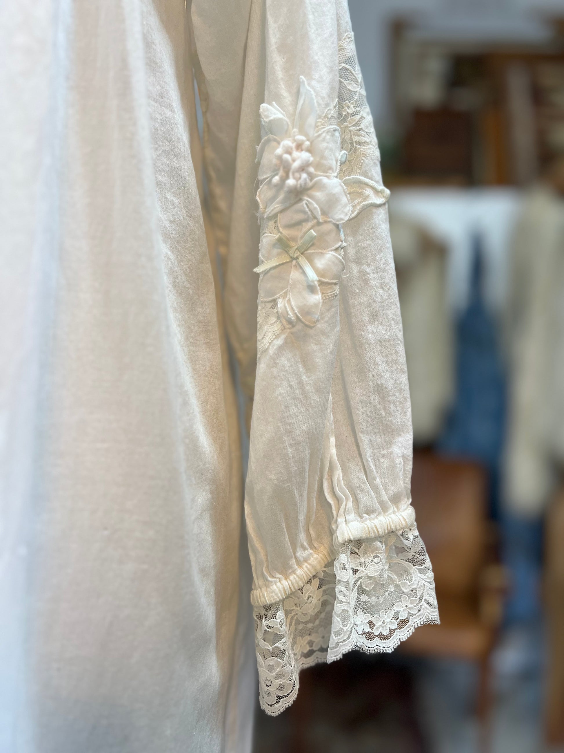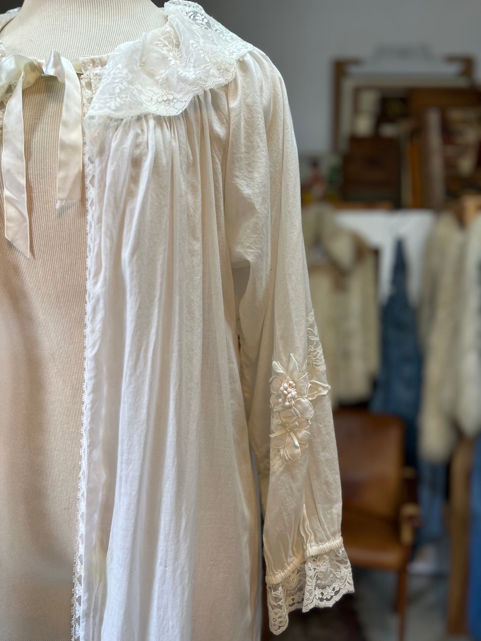 Vintage Ethereal Cotton Lace Flower Detail Peignoir P/S