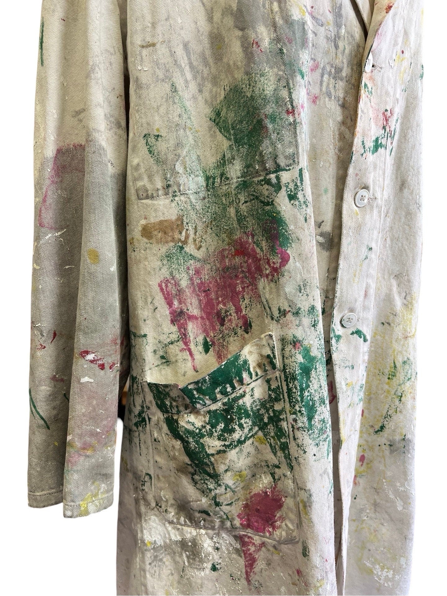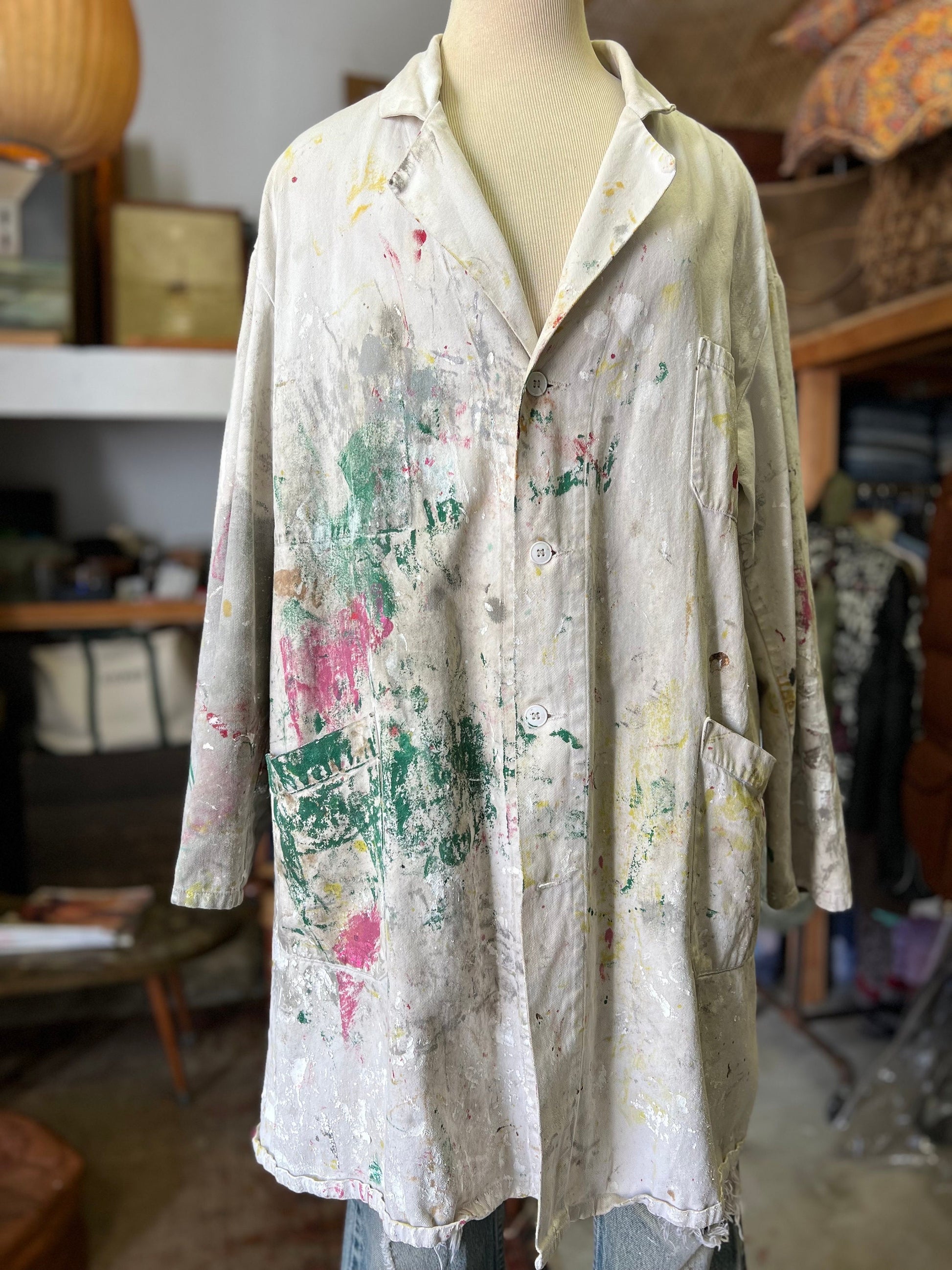 Vintage French Painters Coat Workwear Paint Splatter Artist Smock