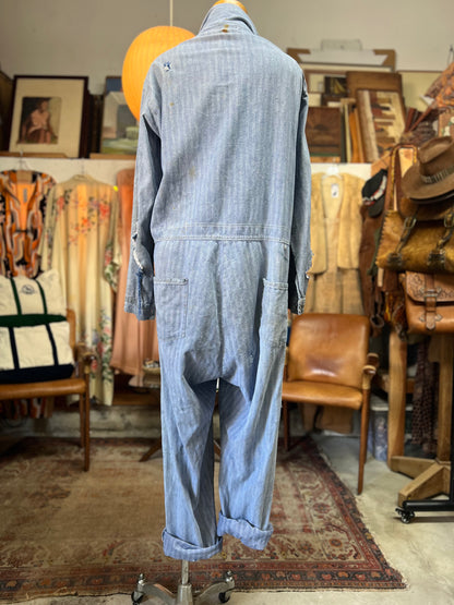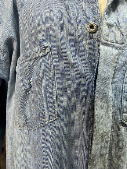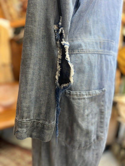 Vintage Heavily Distressed Herringbone Twill Denim Jumpsuit 46