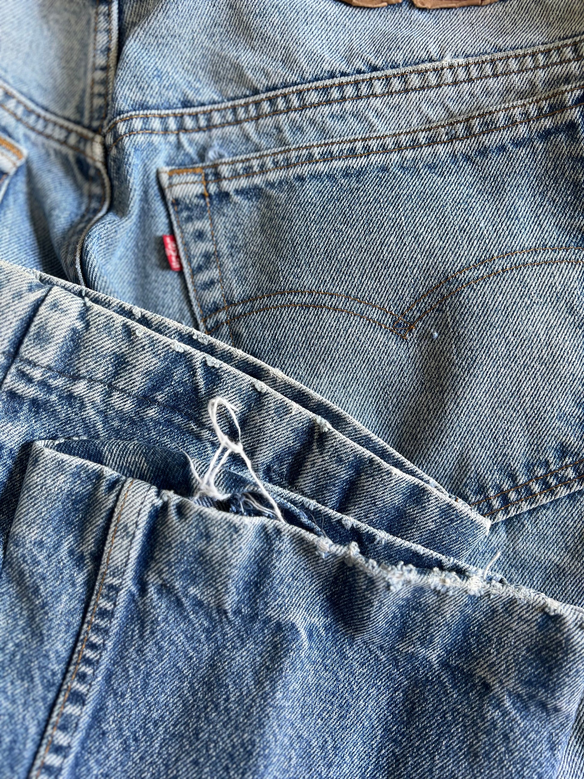 What a great paid of red tab 517’s! Beautiful fade and wear on these, with amazing after-market wide hems. Tag reads 40X36 but actual measurements are 38X29 (19” across waist). Hard to find 517’s that aren’t tiny, this pair is so good!! *pinned on mannequin