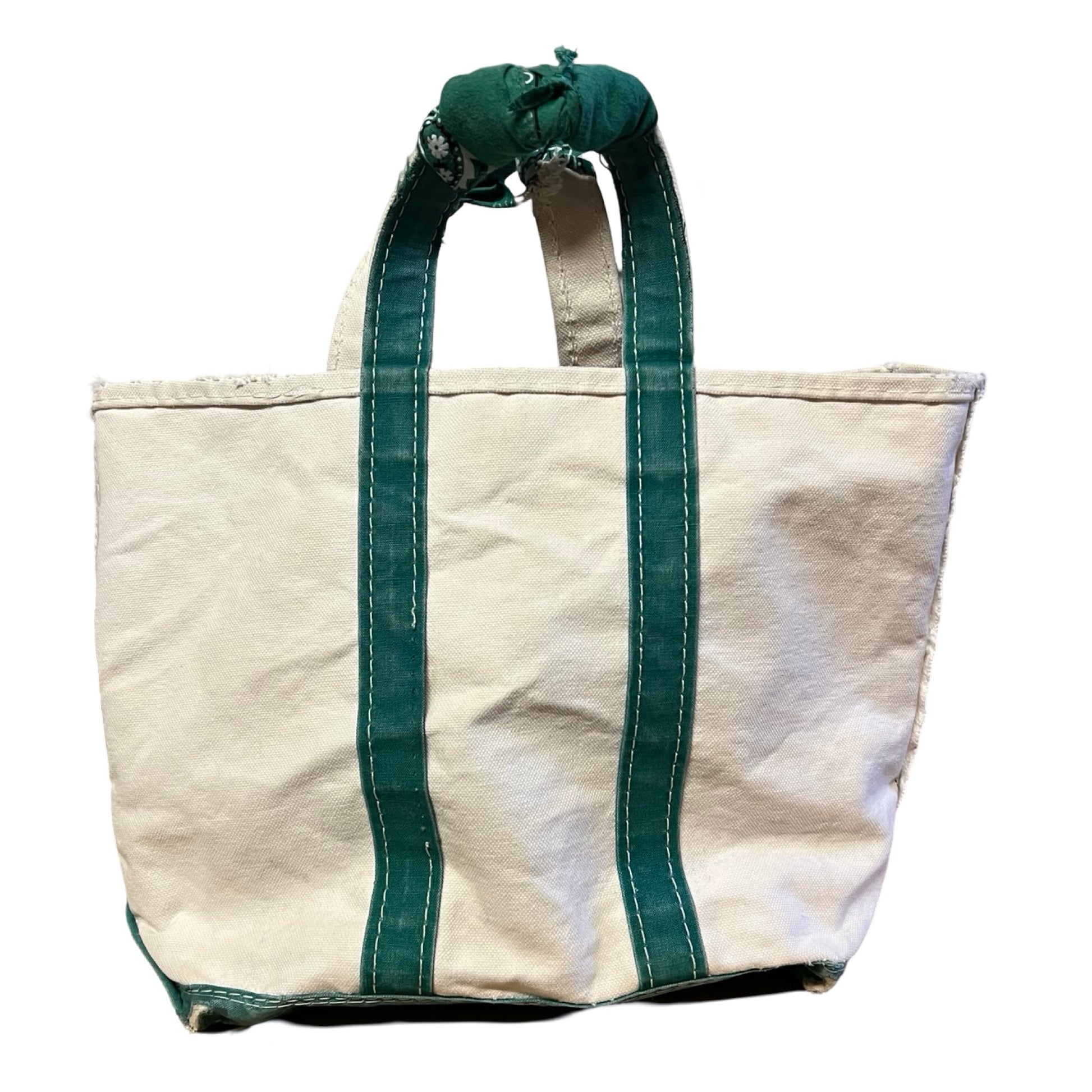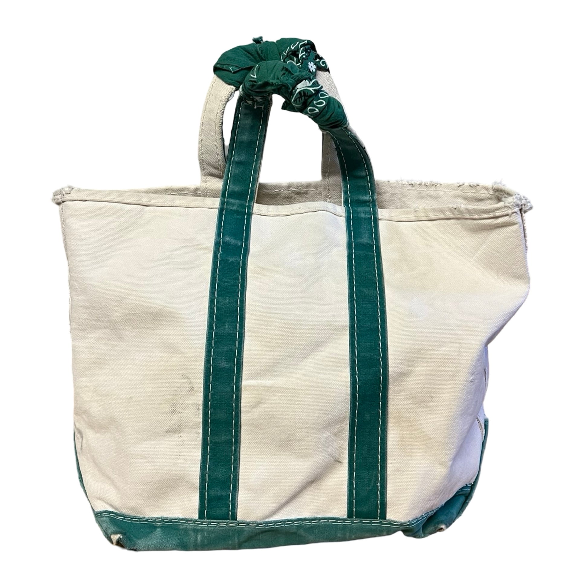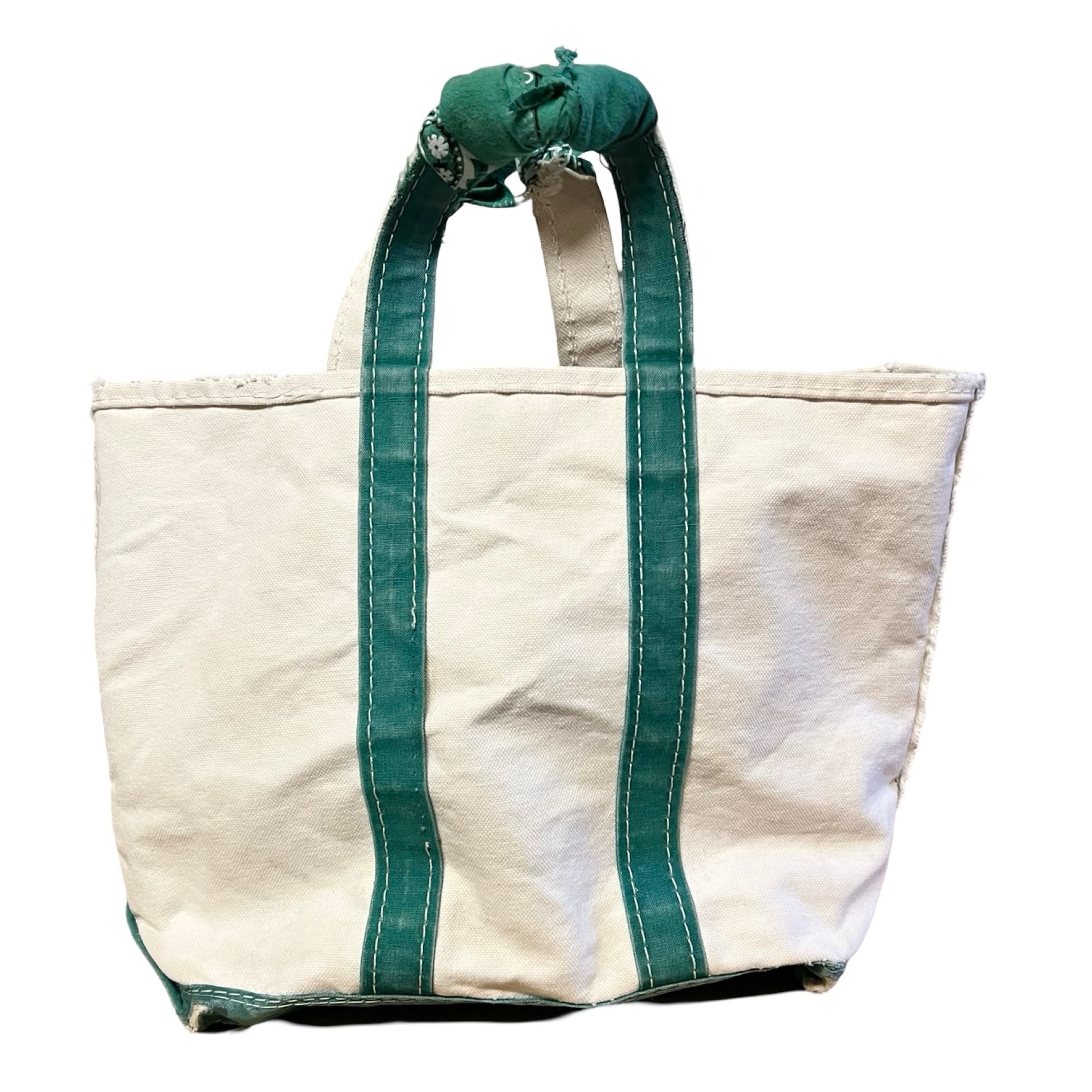 Vintage LL Bean Boat & Tote Small Distressed w/ Vintage Bandana Handle Repair