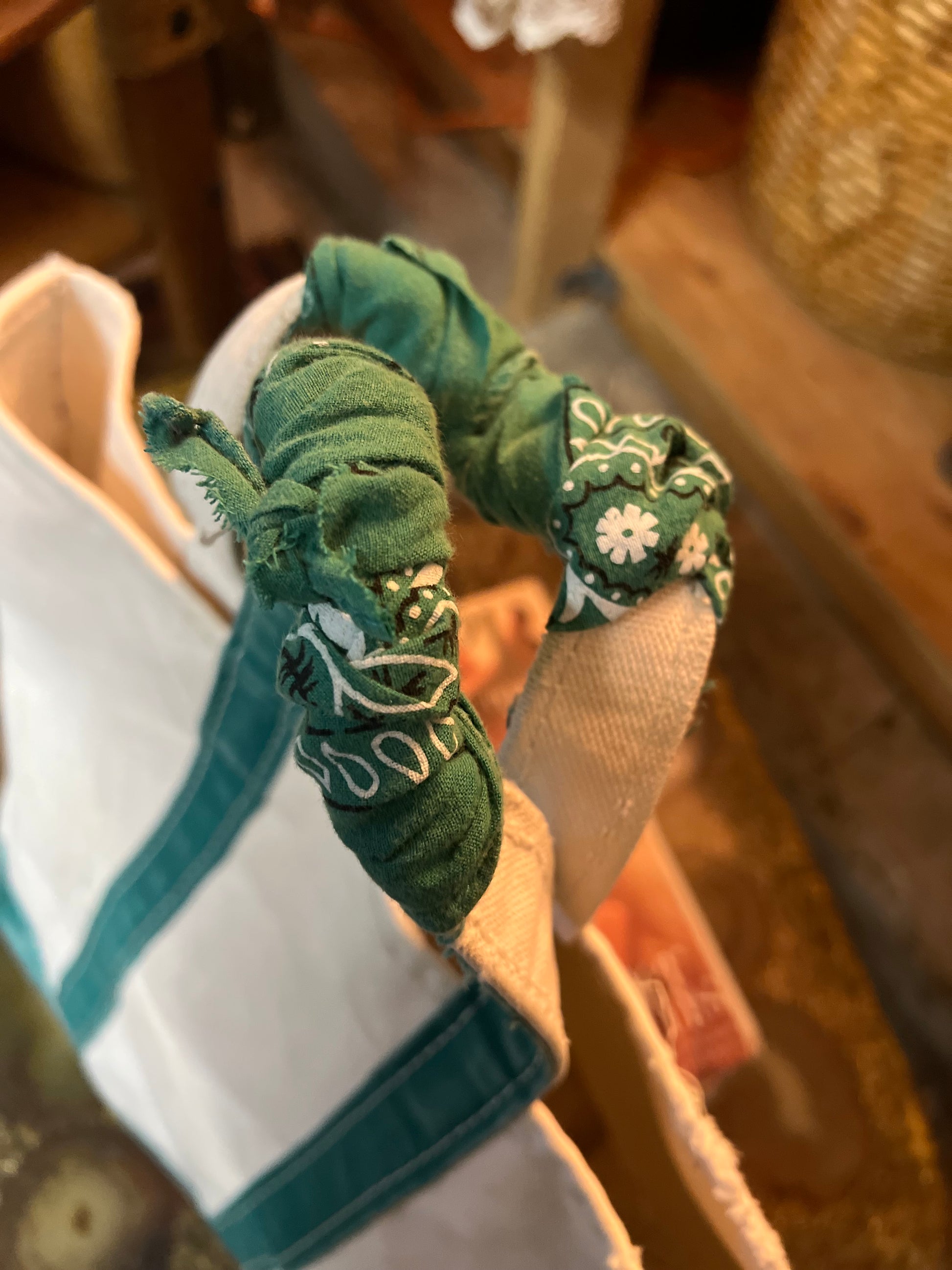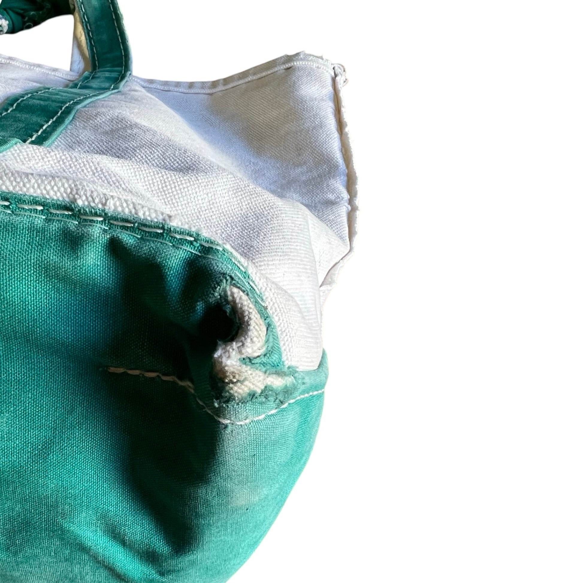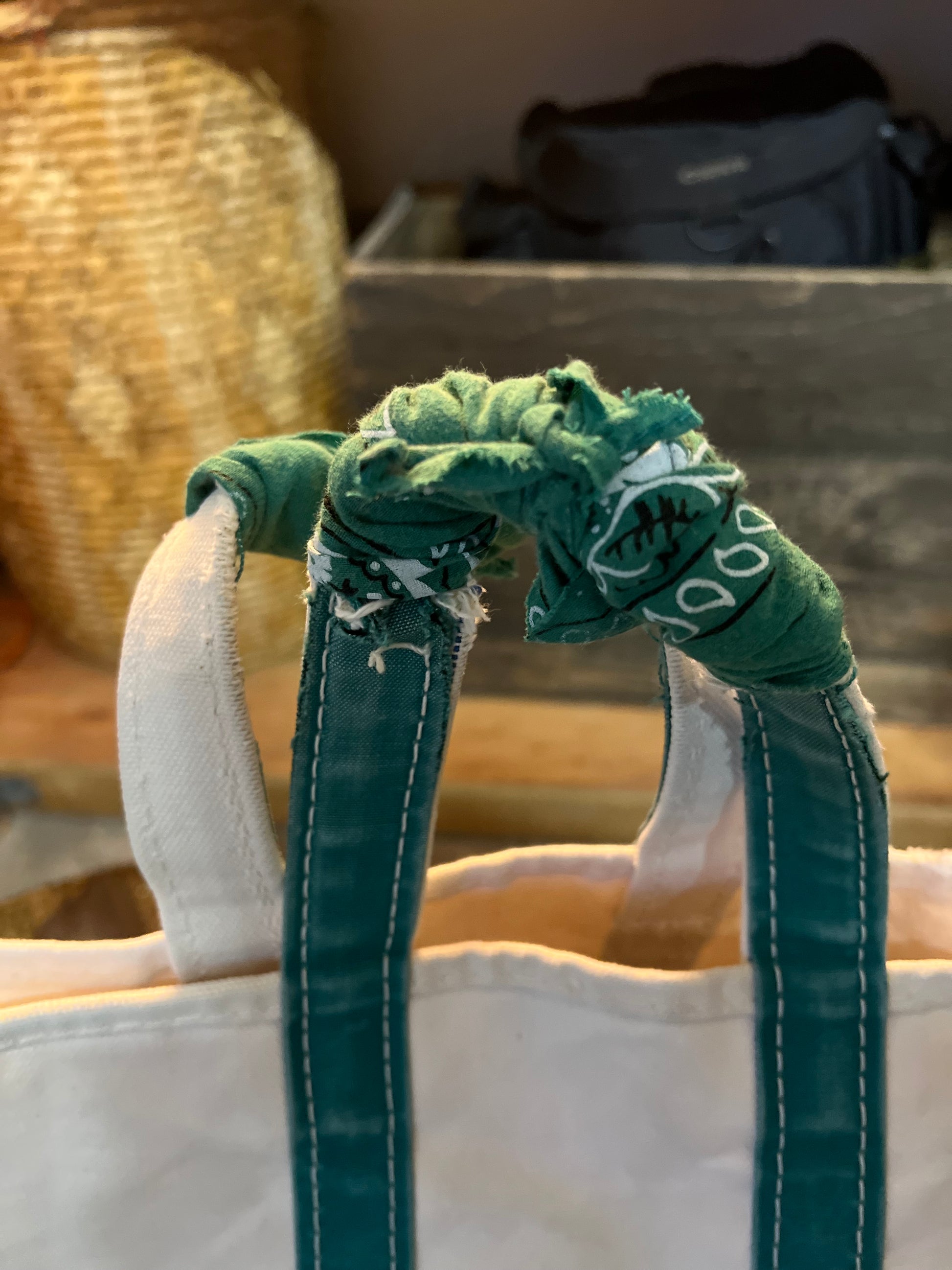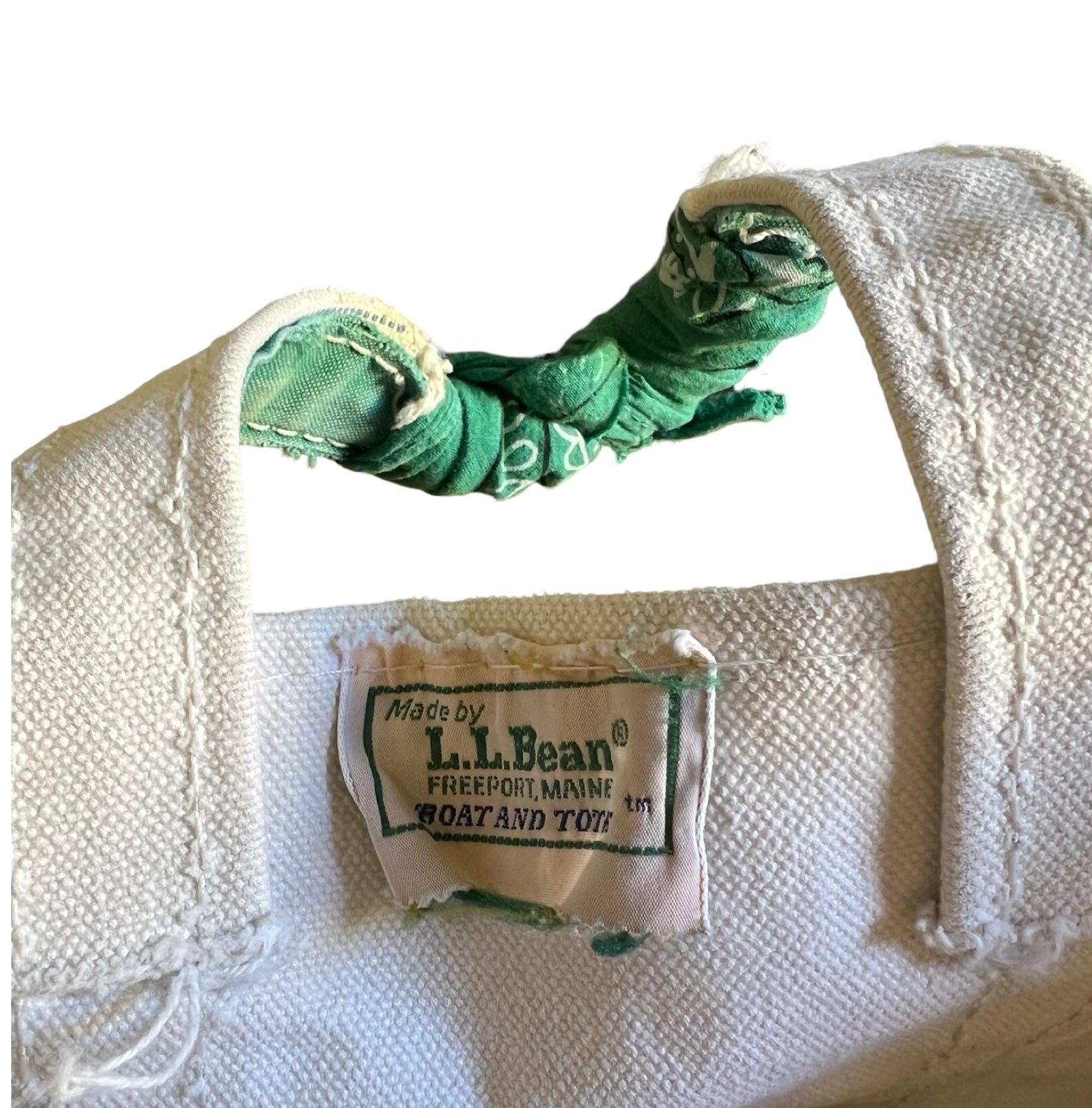 Vintage LL Bean Boat & Tote Small Distressed w/ Vintage Bandana Handle Repair