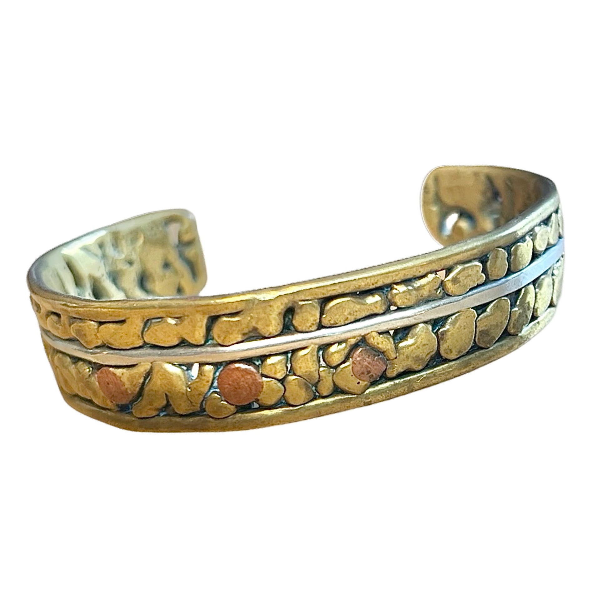 Vintage Modernist Brass, Silver & Copper Mixed Metal Cuff
