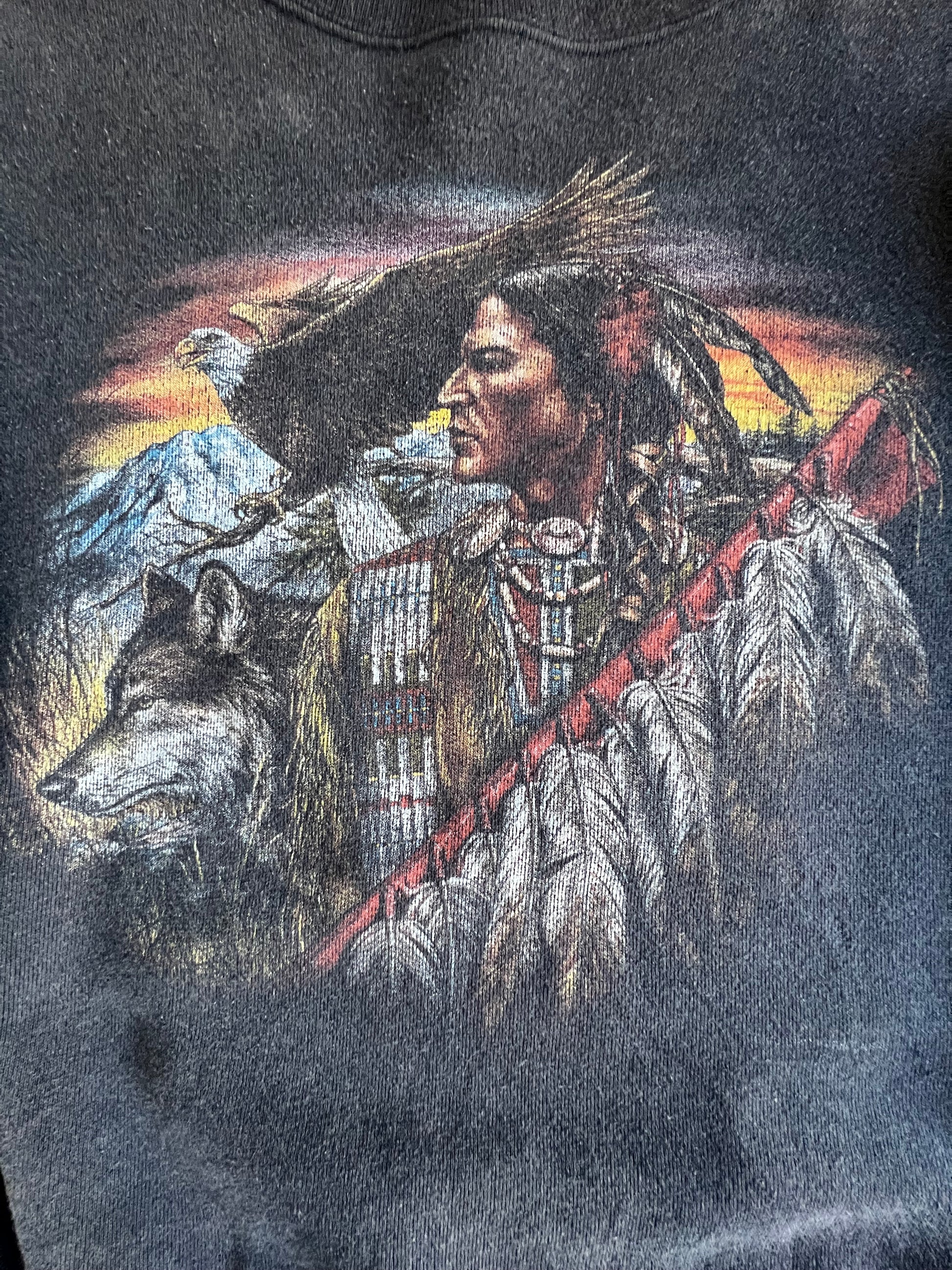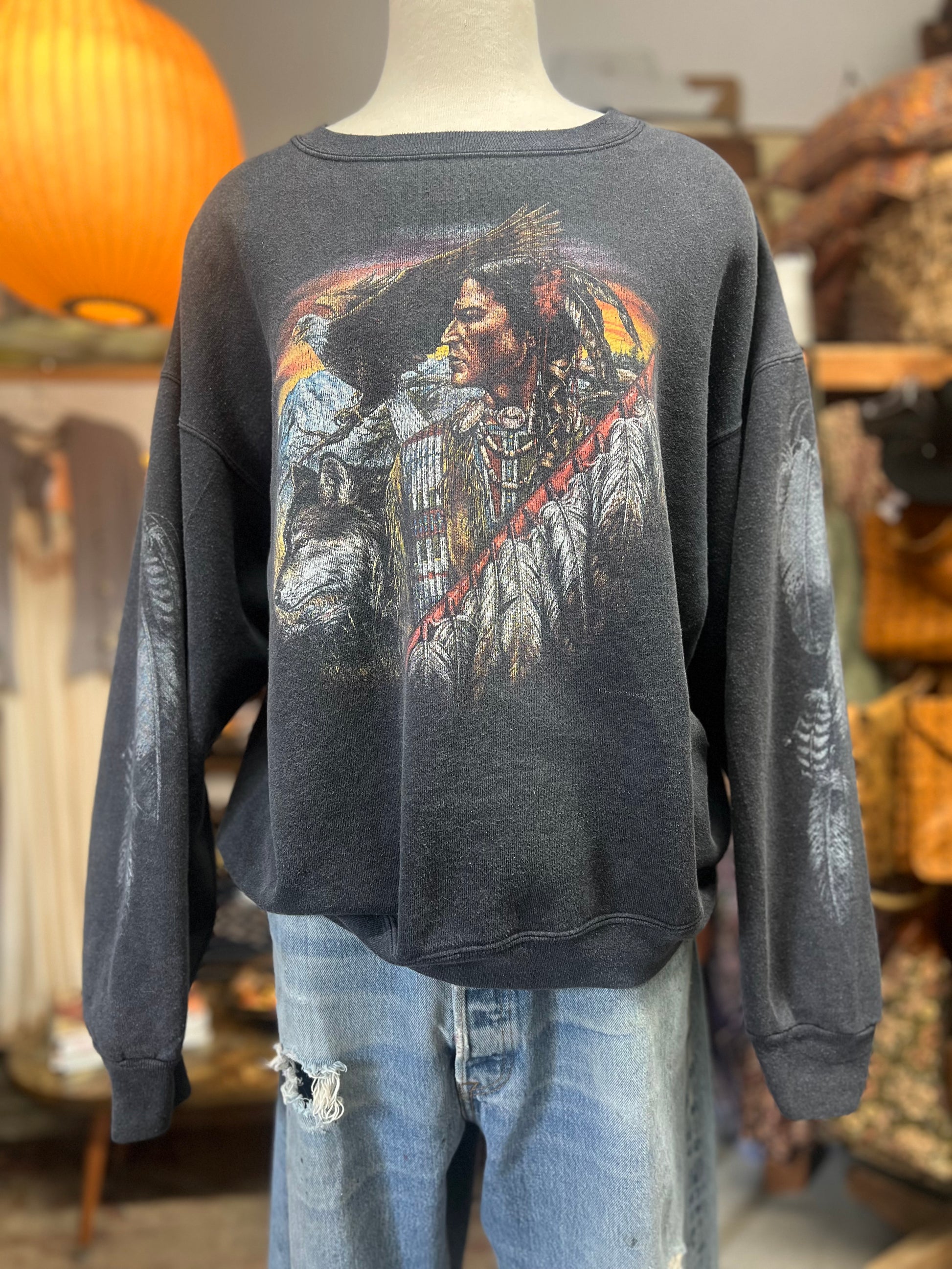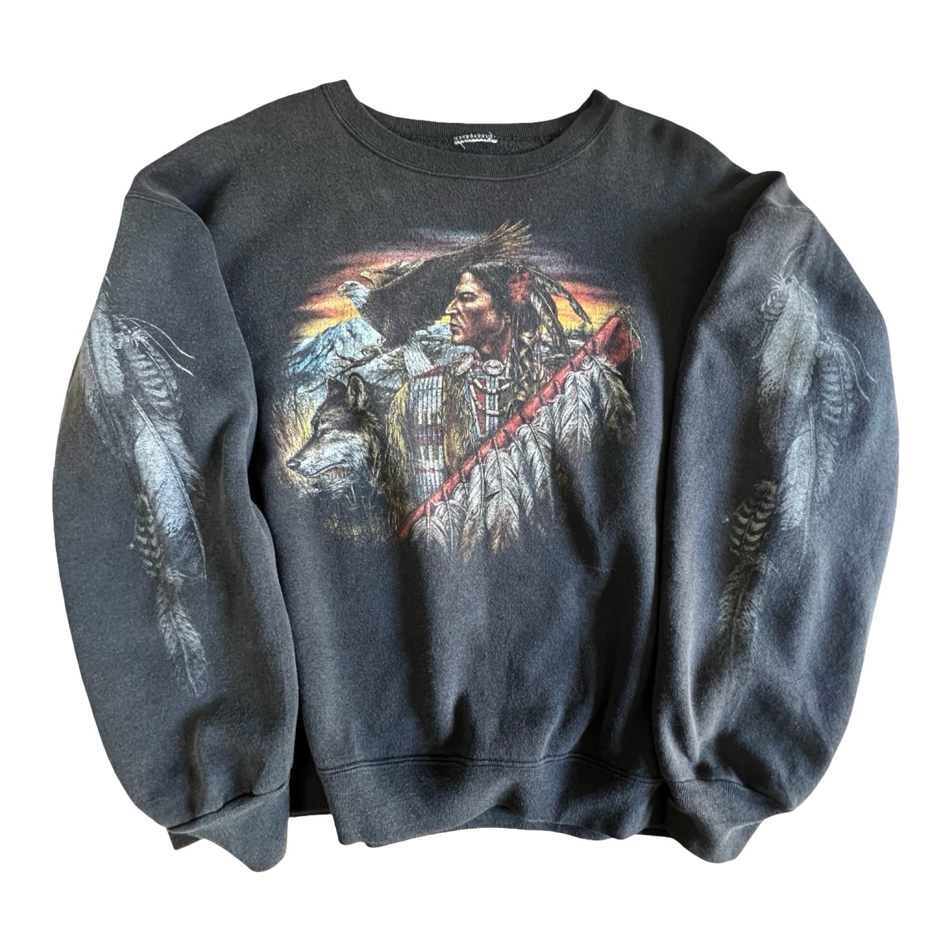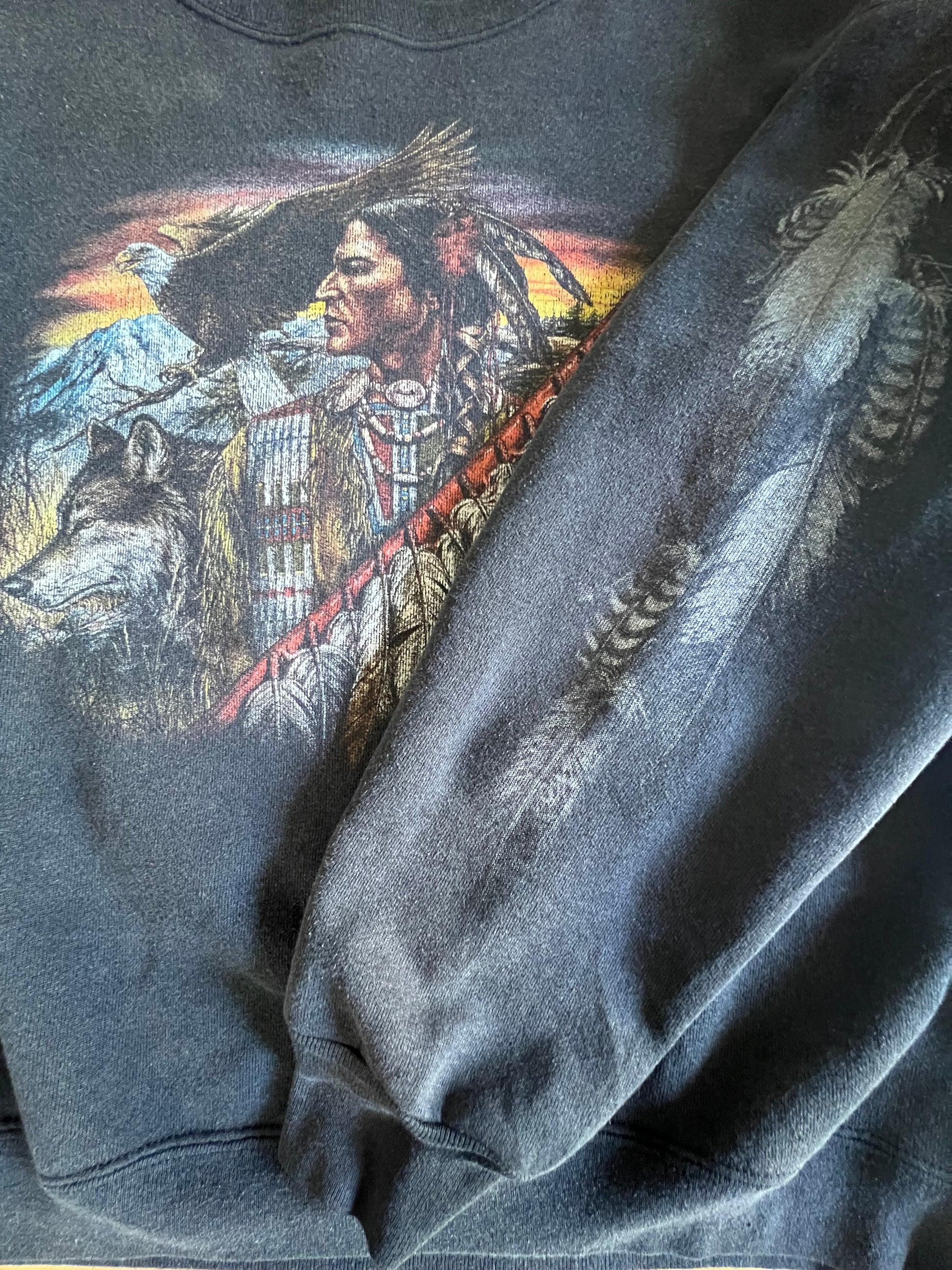 Vintage Native American Oversized Sweatshirt Feather Sleeves XL