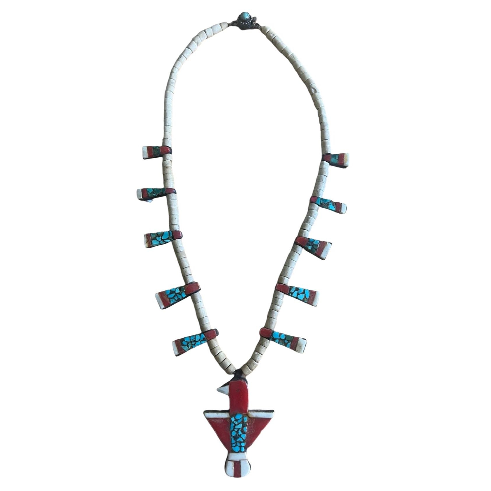 Rare Vintage Santo Domingo Kewa Pueblo Depression Era Thunderbird Necklace