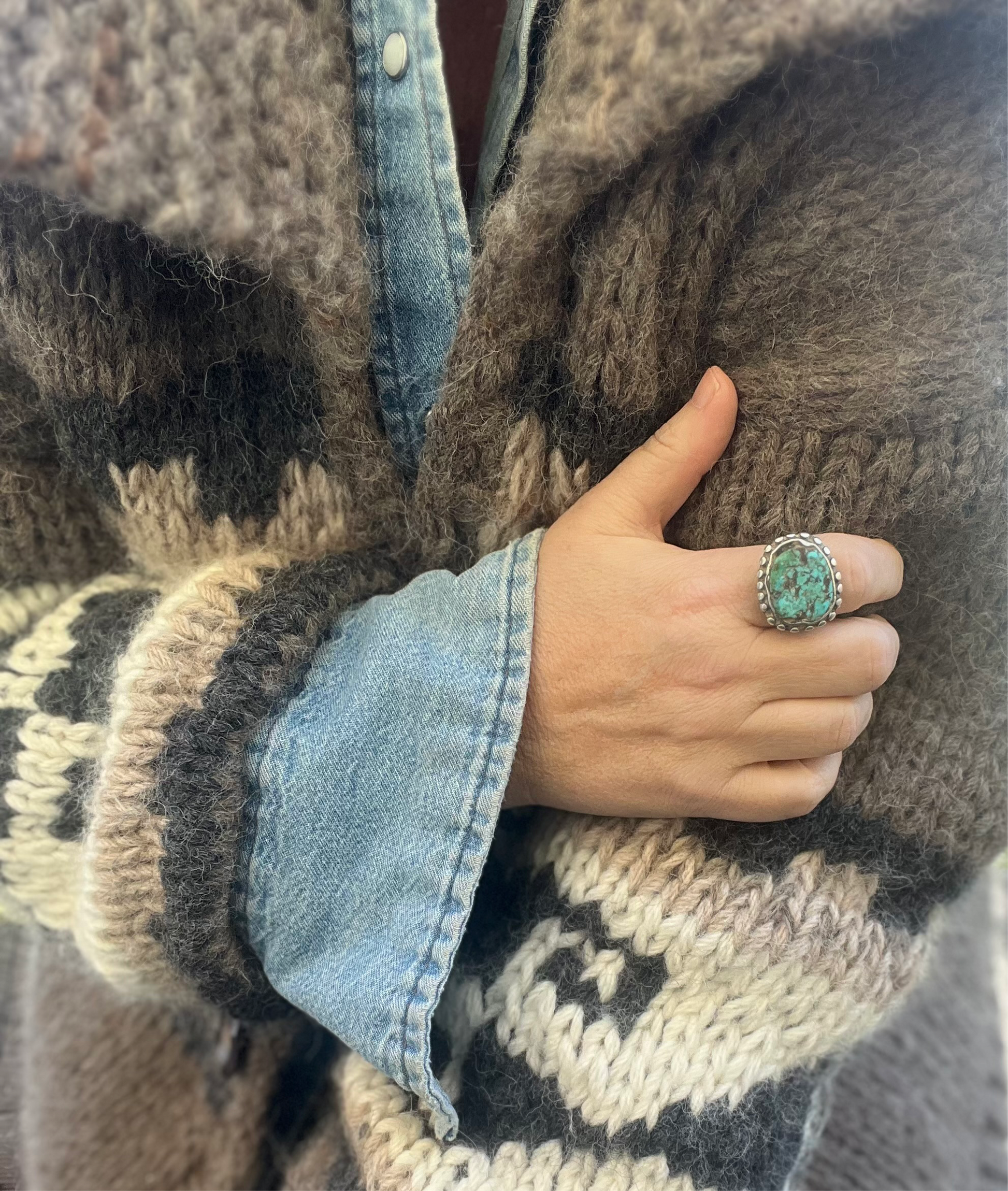 Vintage Navajo Sterling Silver Nautral Turquoise Ring Size 8.5