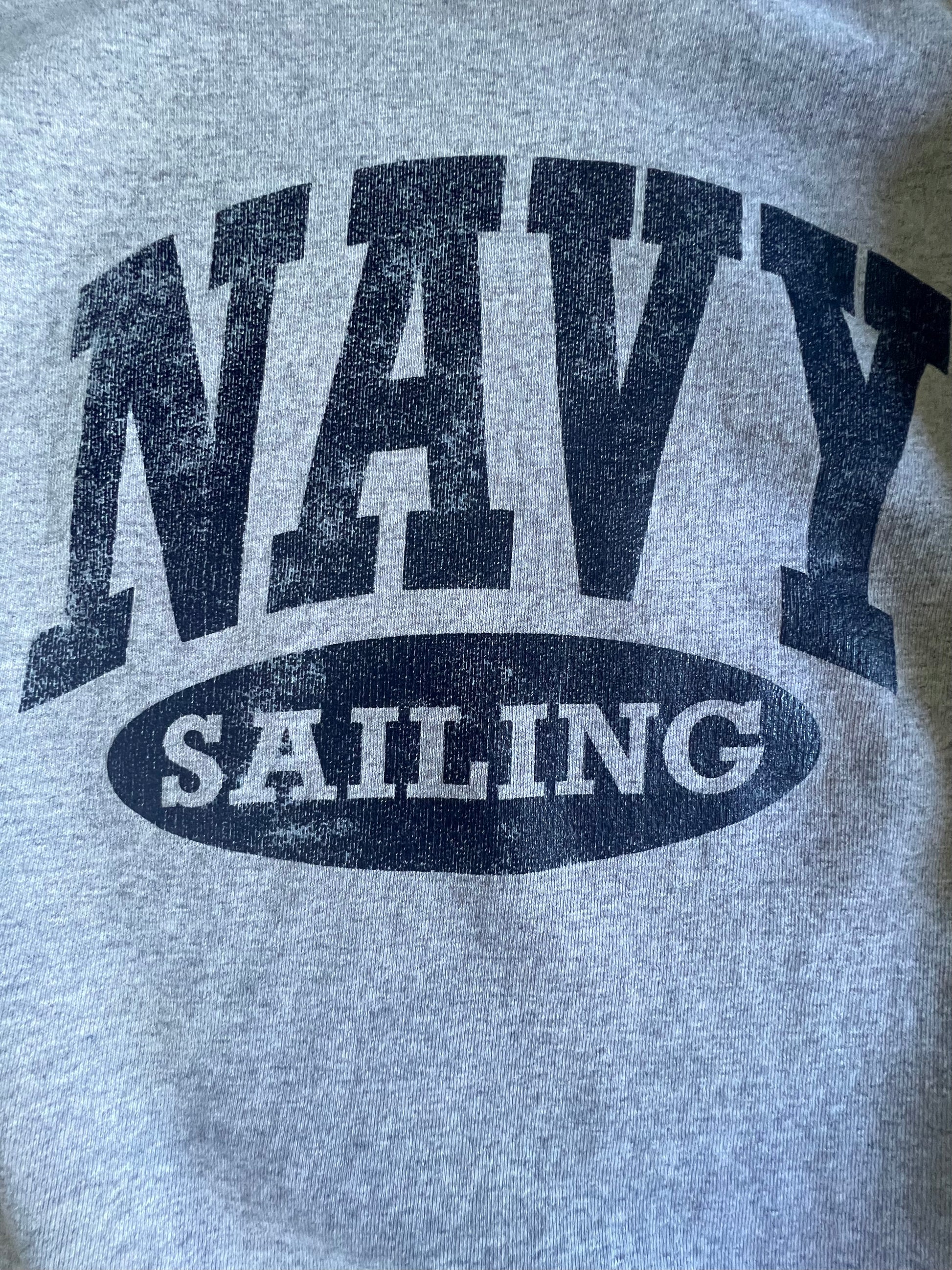 Incredible vintage Navy Sailing faded and well worn oversized crewneck sweatshirt. Fruit of the Loom tag size 2XL, measures 27” pit to pit and 25” top to bottom.