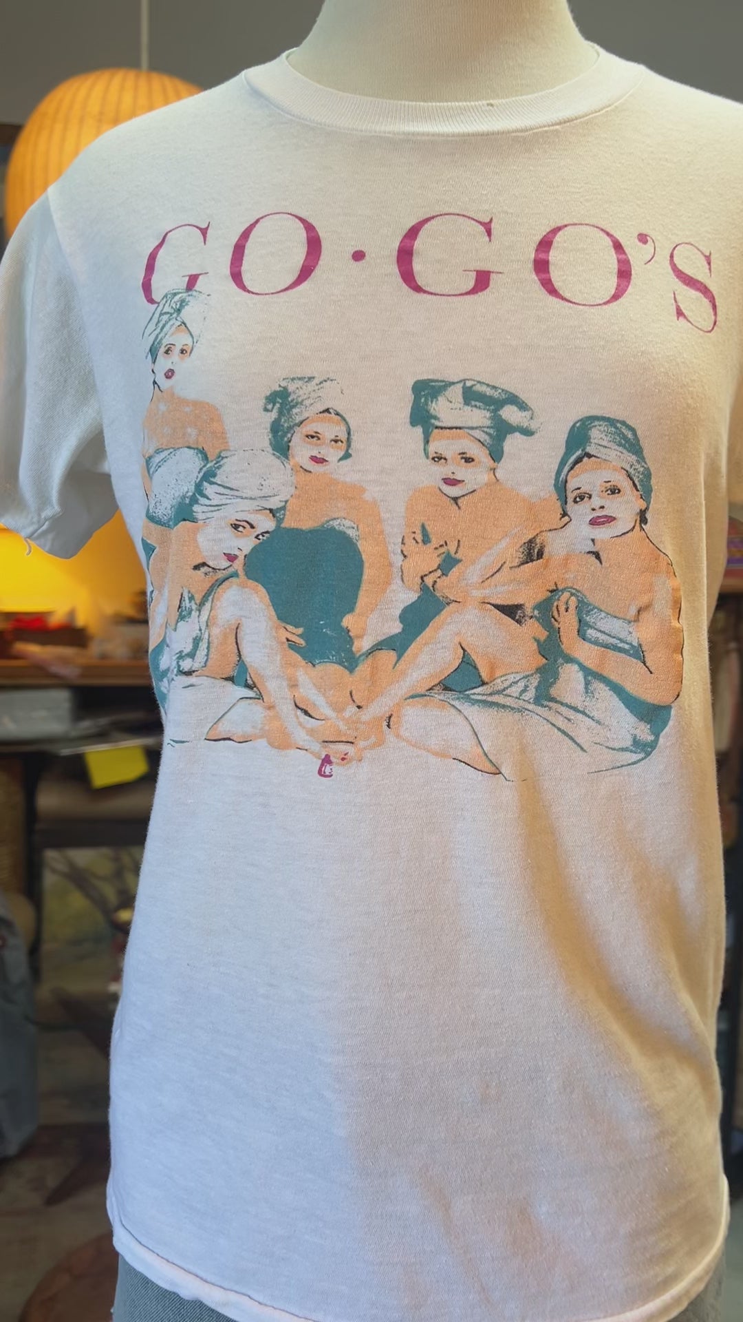 An absolute 1980’s unicorn! Rare vintage original 1982 Go Go’s single stitch tee, paper thin and butter soft, in beautiful vintage condition for an almost 50 year old t-shirt (one small hole on front collar). No size tag, measures 18” pit to pit and 24” top to bottom. This graphic has been used to reproduce contemporary versions (that retail for $300)…this tee is an authentic 1982 ORIGINAL!!! What an incredible find!!