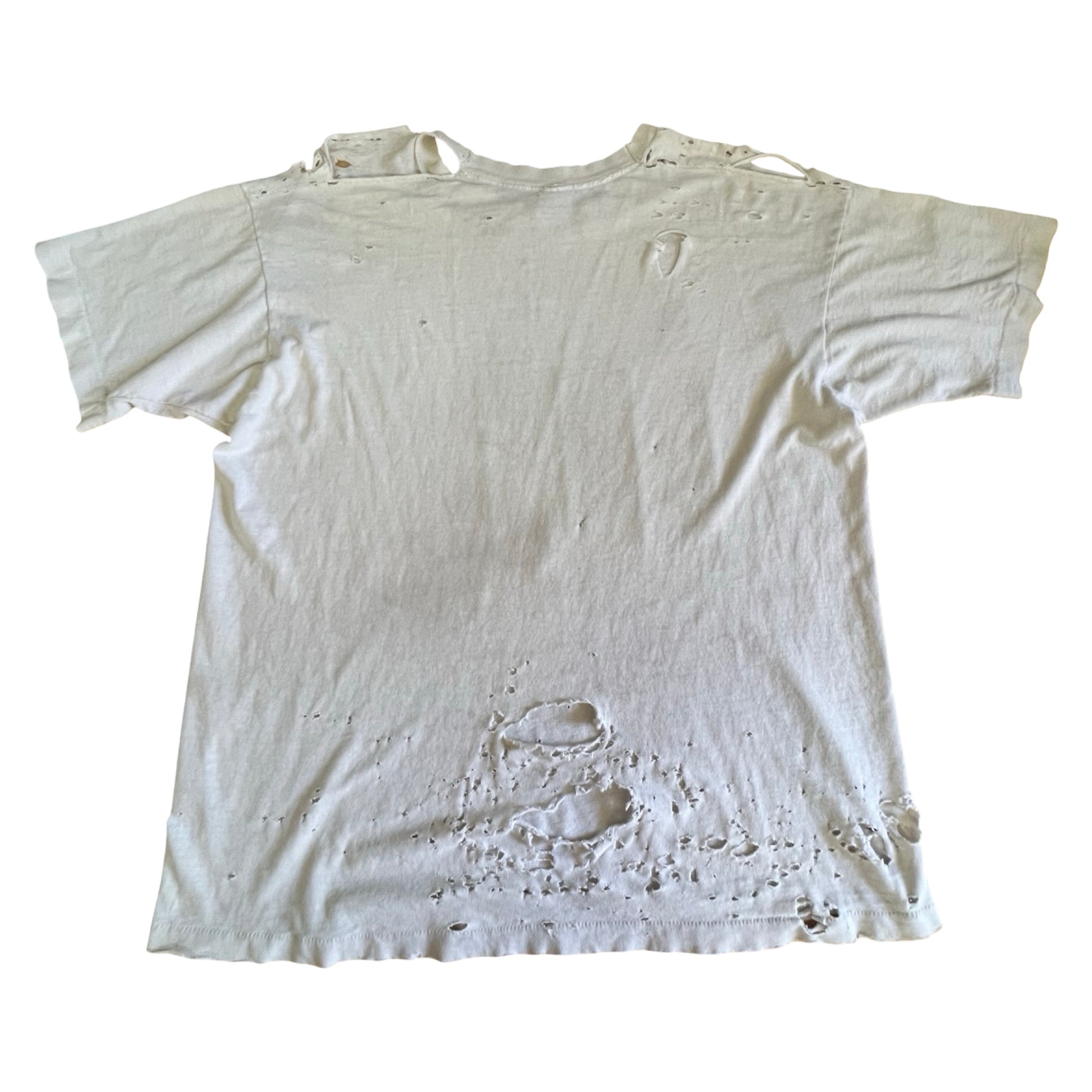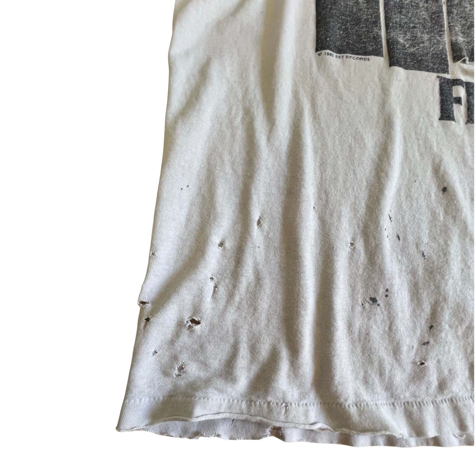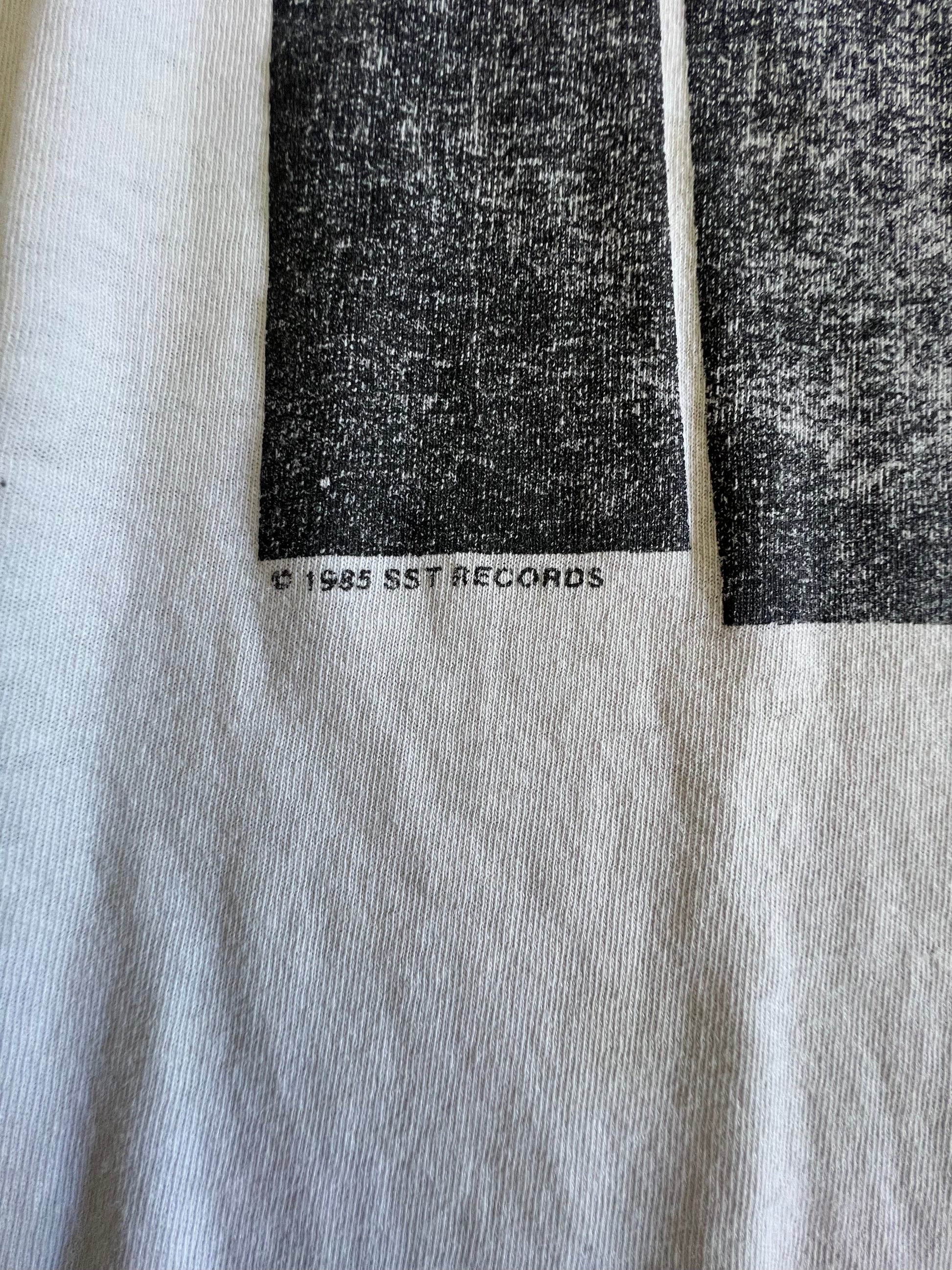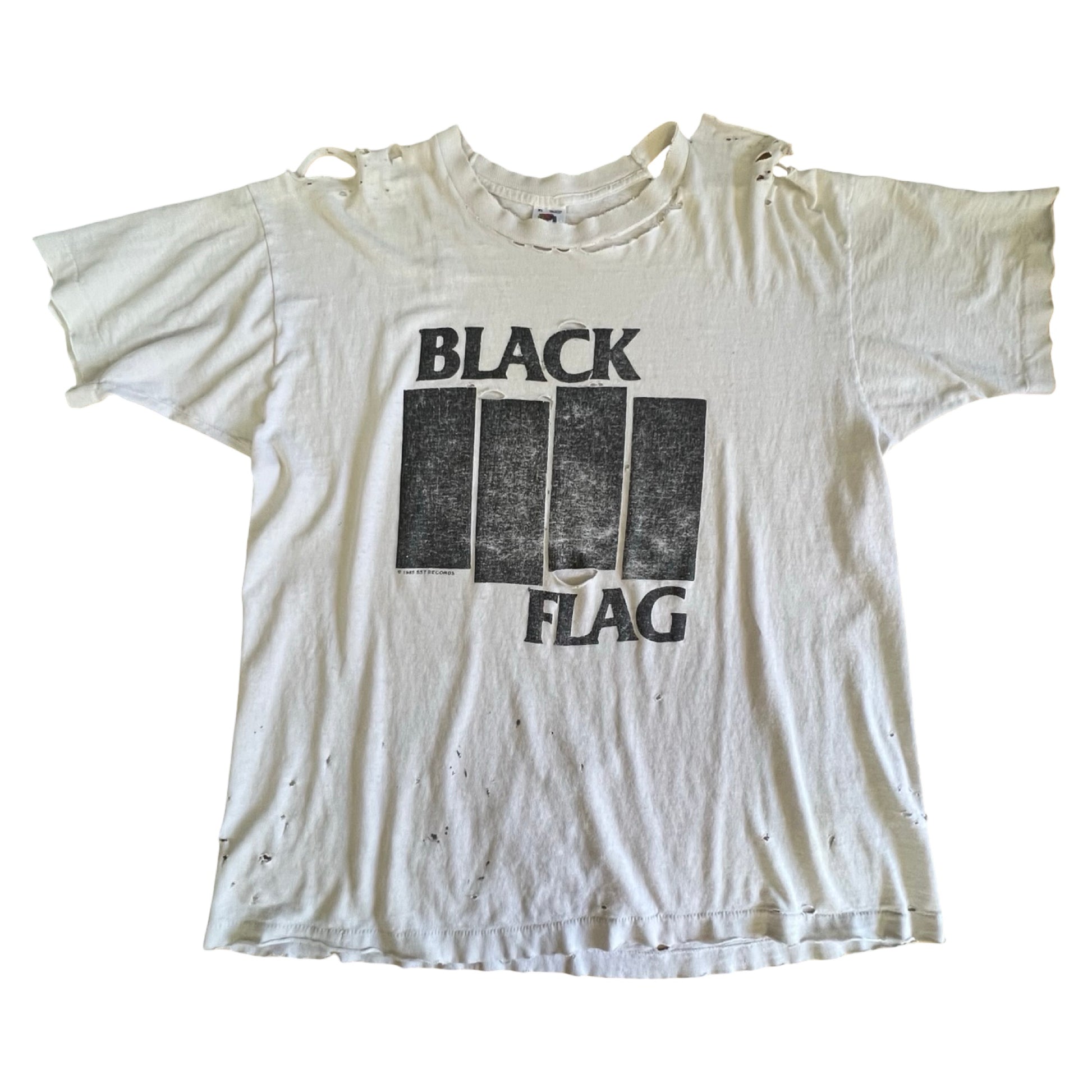 Vintage original authentic 1985 Black Flag single stitch t-shirt (not a 90’s re-print!). This shirt is rare, especially in this size. Copyright mark 1985 SST Records. It is heavily distressed and thrashed with holes everywhere and some spots & stains throughout. Fruit of the Loom tag XL measures 24” pit to pit and 28” top to bottom. Truly a special collectors piece.