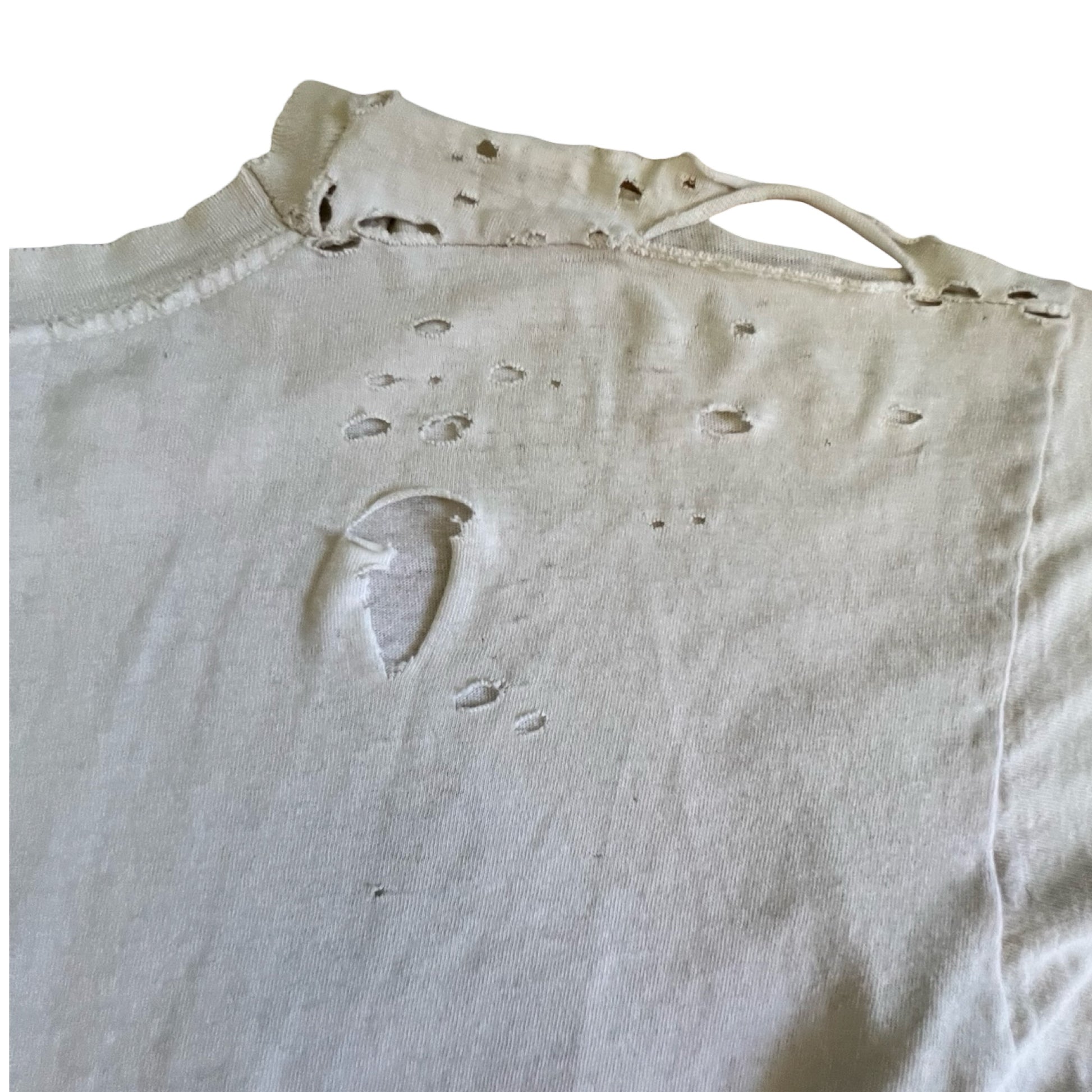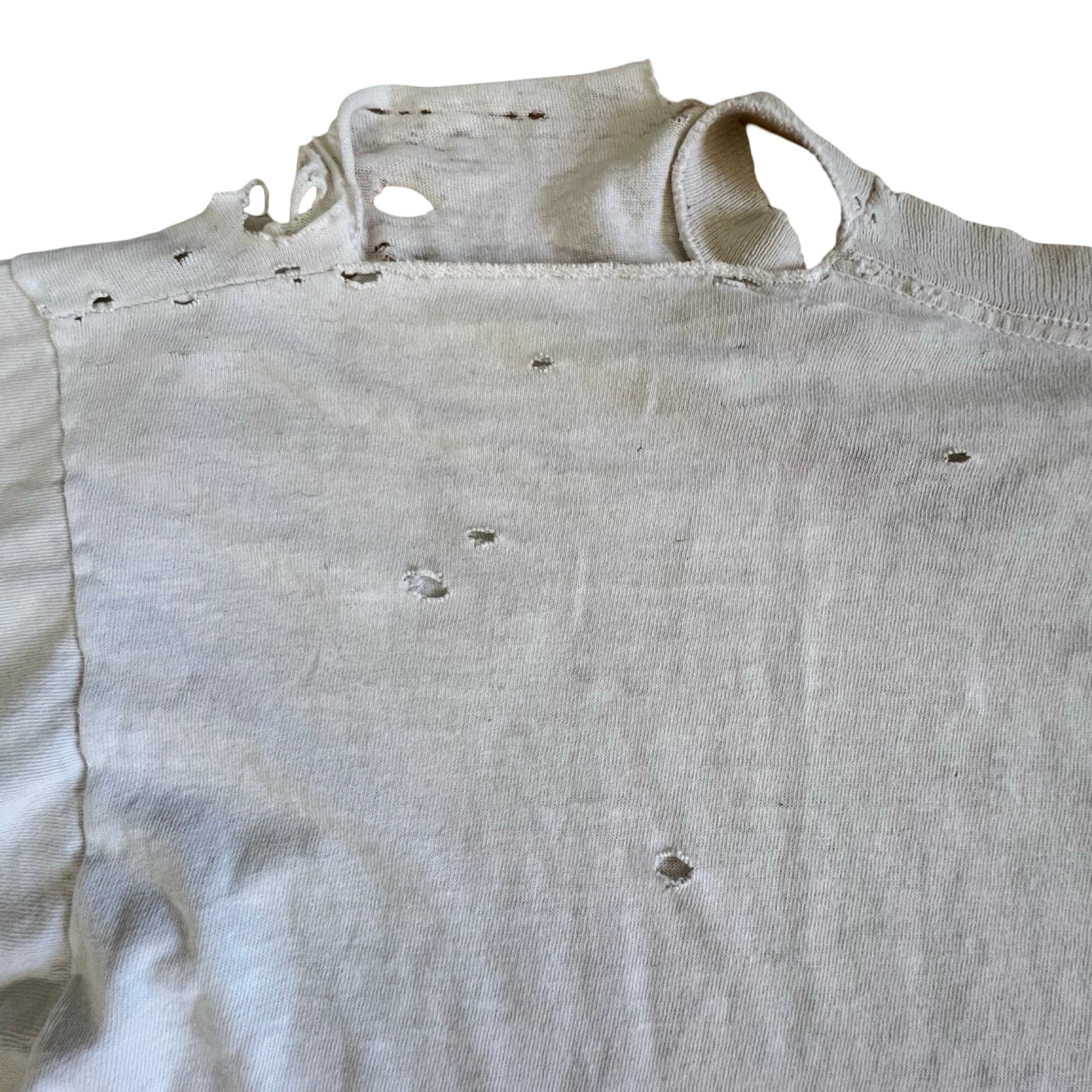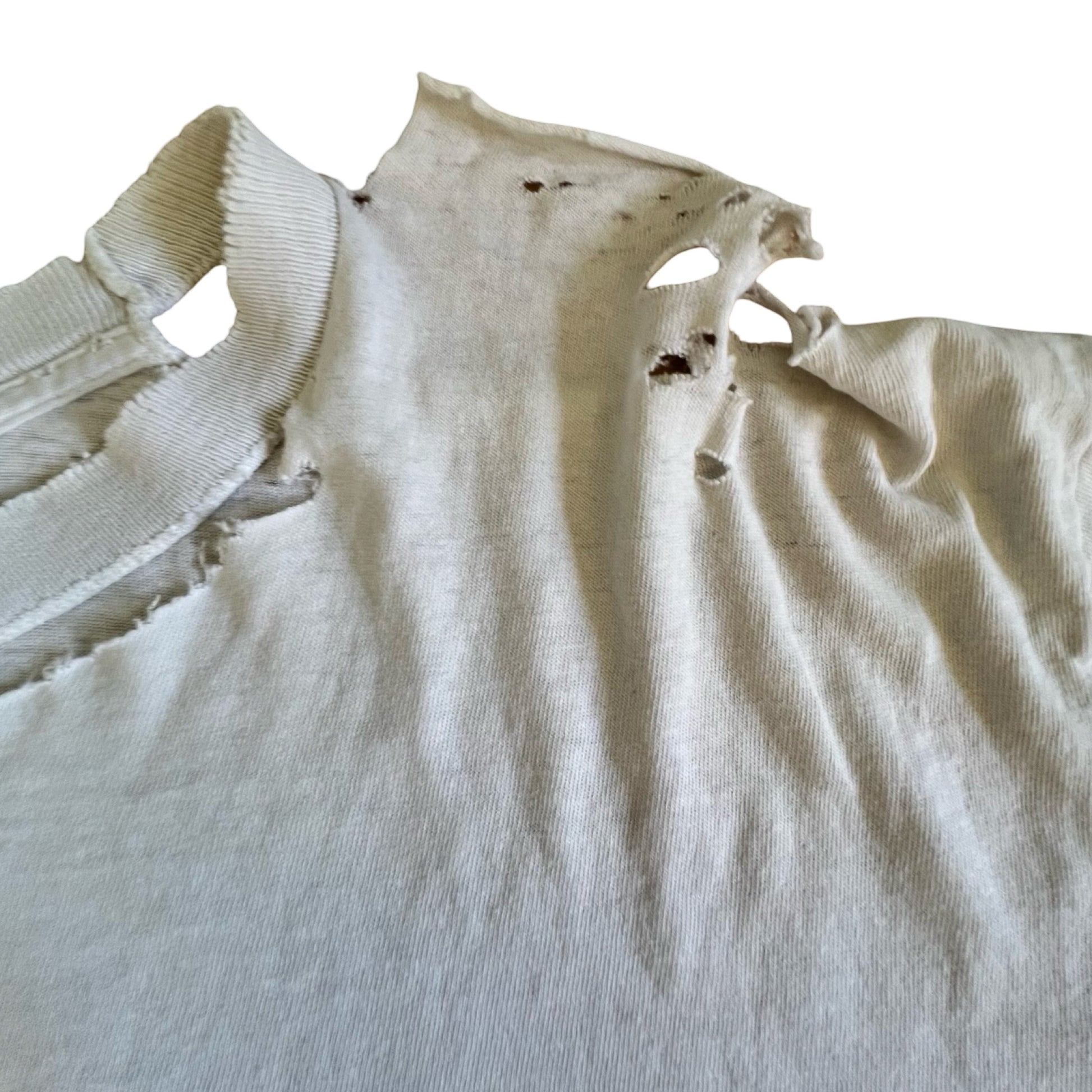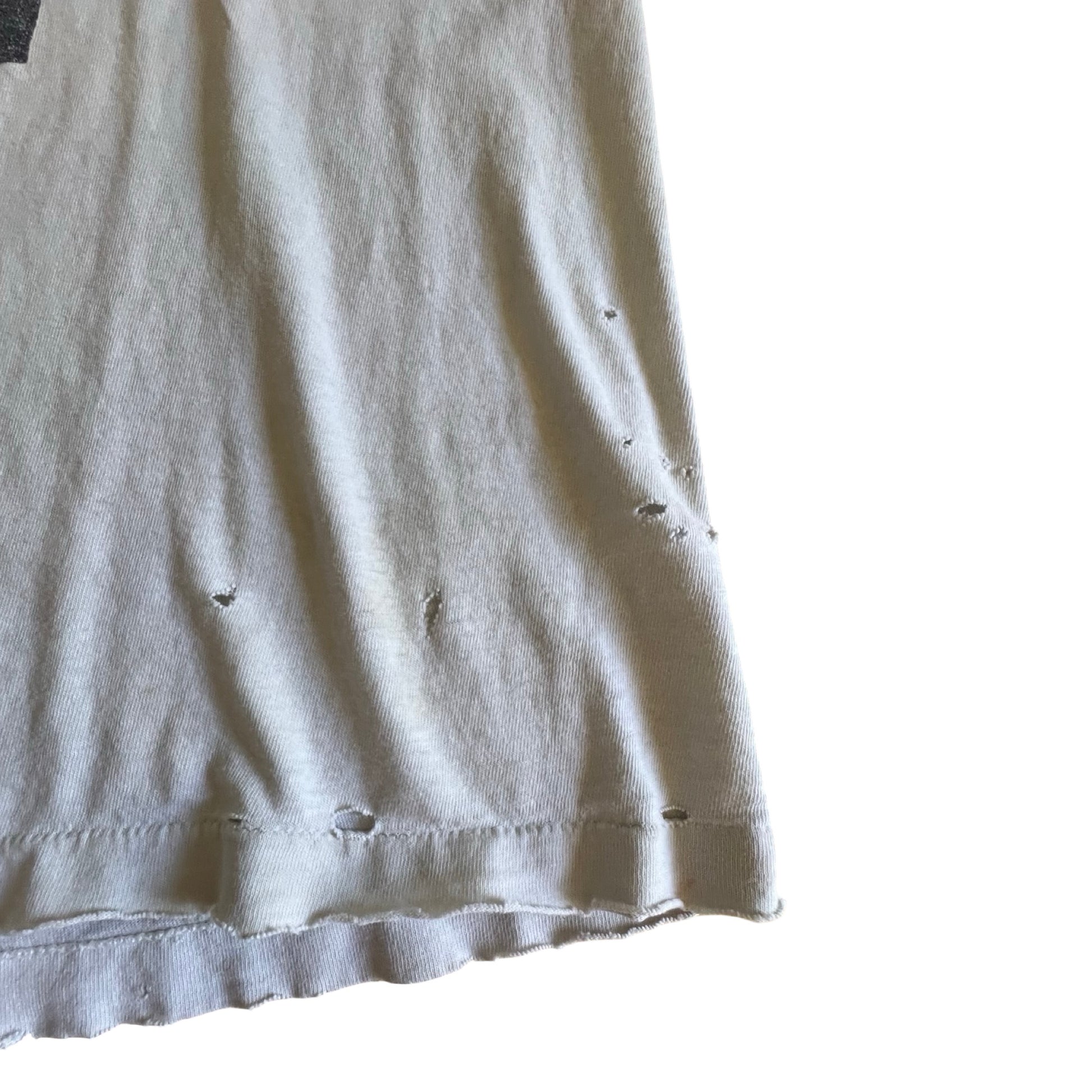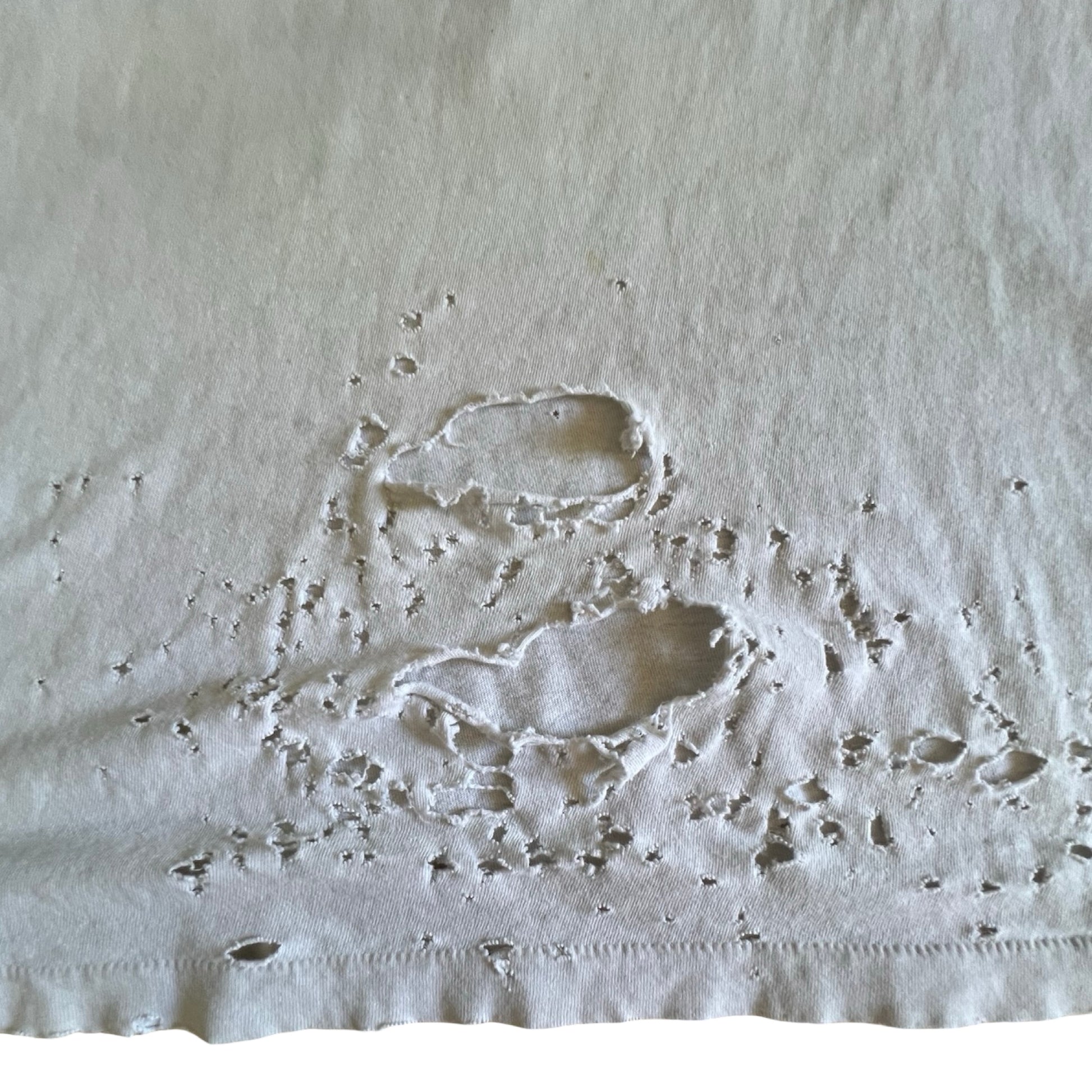 Vintage original authentic 1985 Black Flag single stitch t-shirt (not a 90’s re-print!). This shirt is rare, especially in this size. Copyright mark 1985 SST Records. It is heavily distressed and thrashed with holes everywhere and some spots & stains throughout. Fruit of the Loom tag XL measures 24” pit to pit and 28” top to bottom. Truly a special collectors piece.