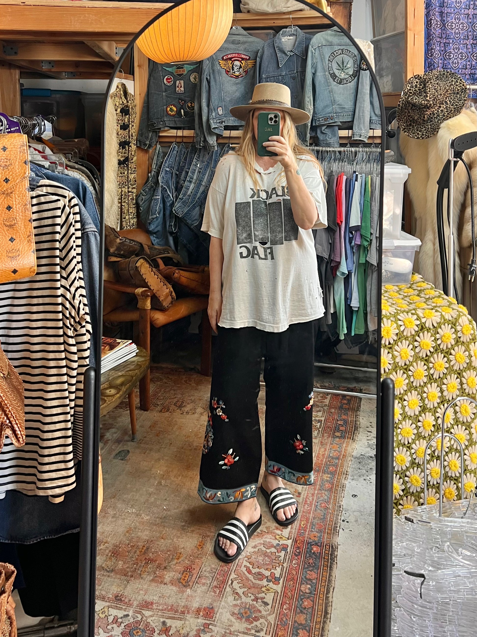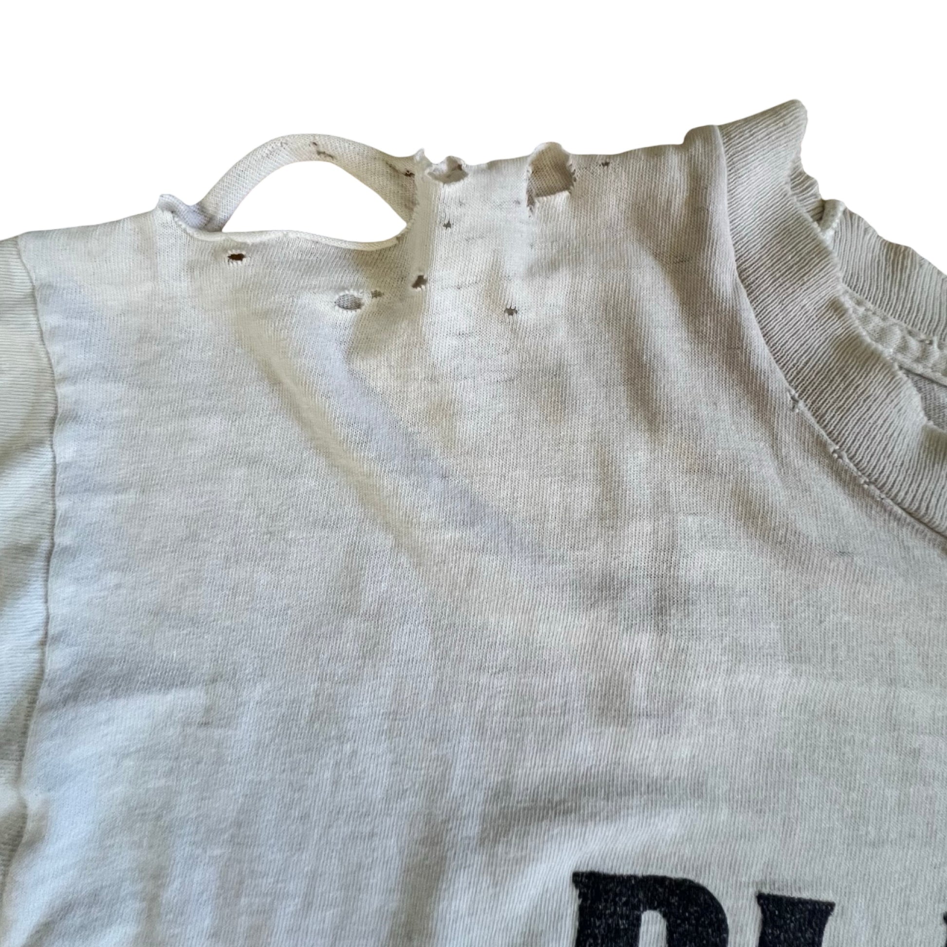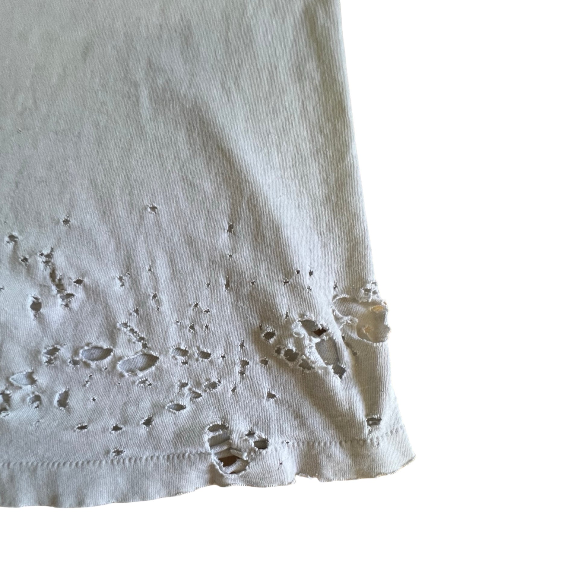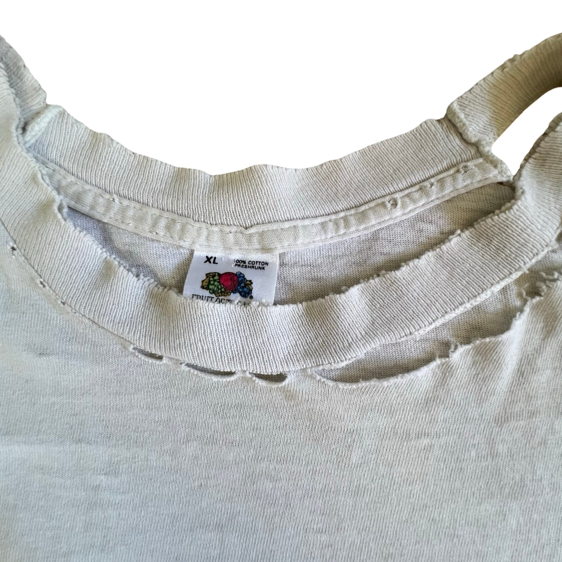 Vintage original authentic 1985 Black Flag single stitch t-shirt (not a 90’s re-print!). This shirt is rare, especially in this size. Copyright mark 1985 SST Records. It is heavily distressed and thrashed with holes everywhere and some spots & stains throughout. Fruit of the Loom tag XL measures 24” pit to pit and 28” top to bottom. Truly a special collectors piece.