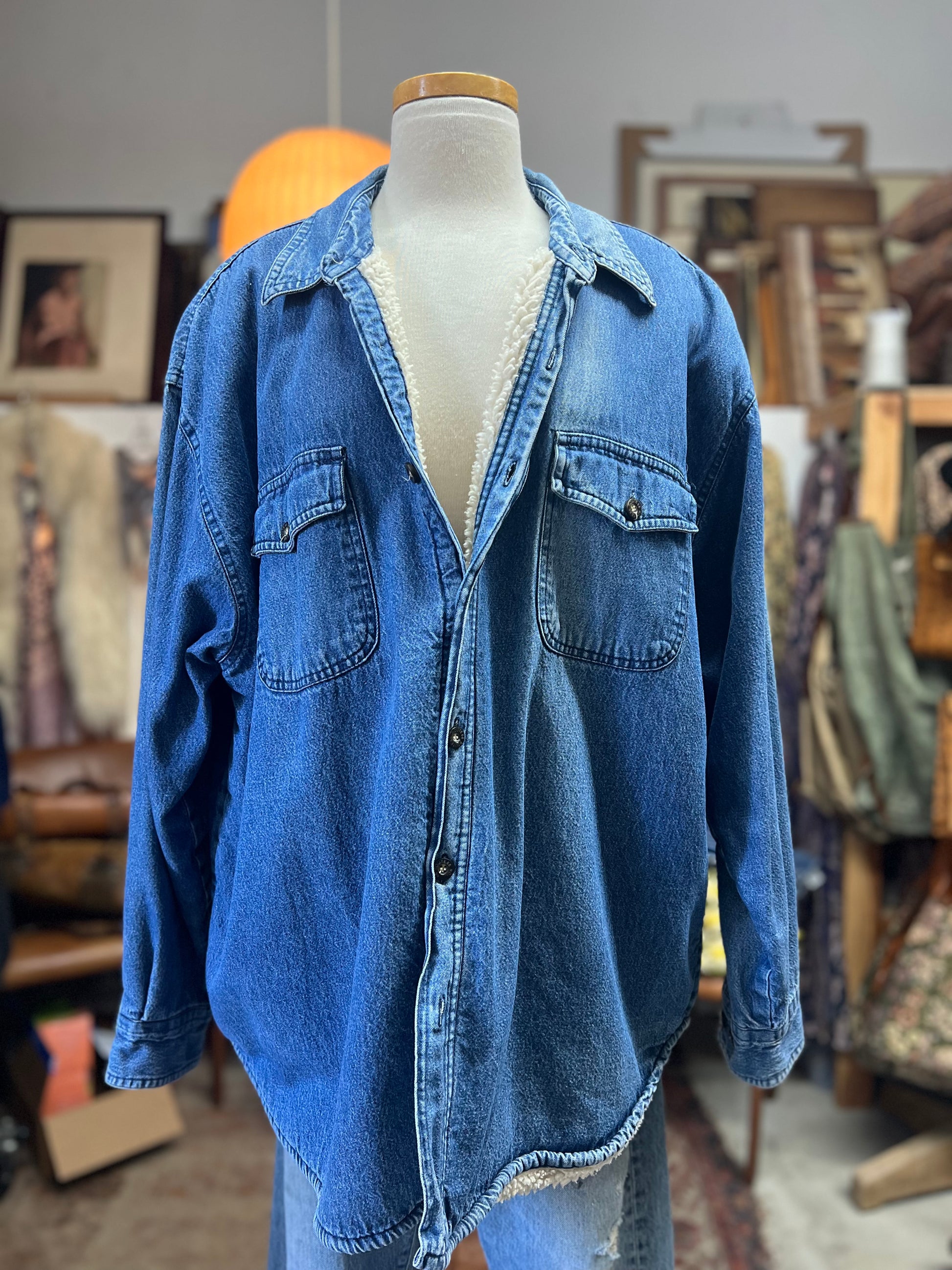 Vintage Oversized 80’s Route 66 Denim Sherpa Shirt Jacket XL/XXL