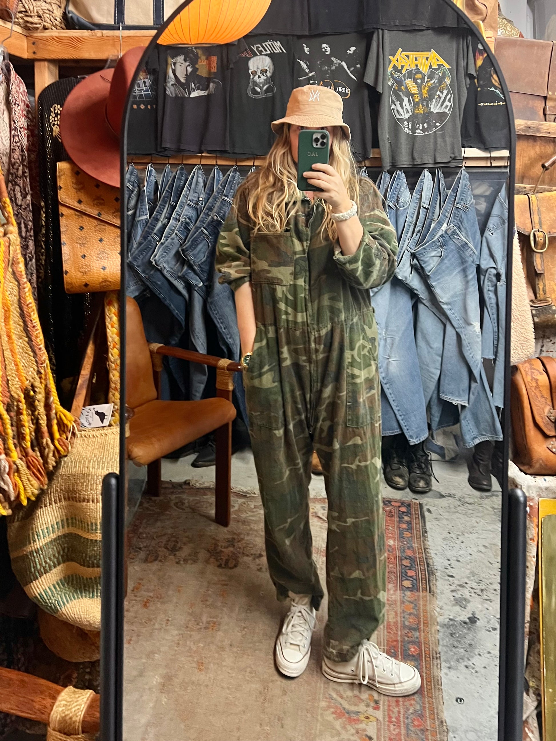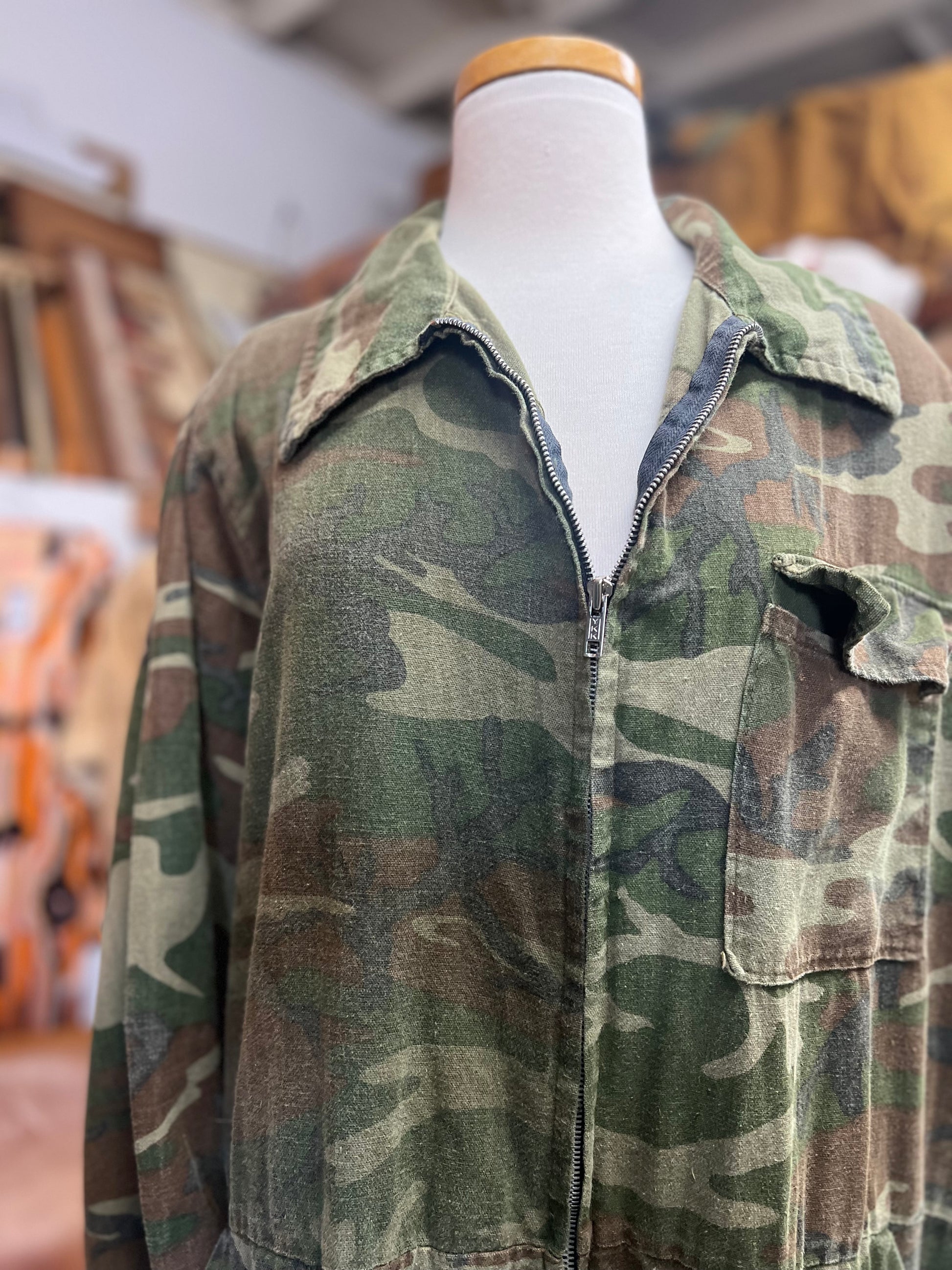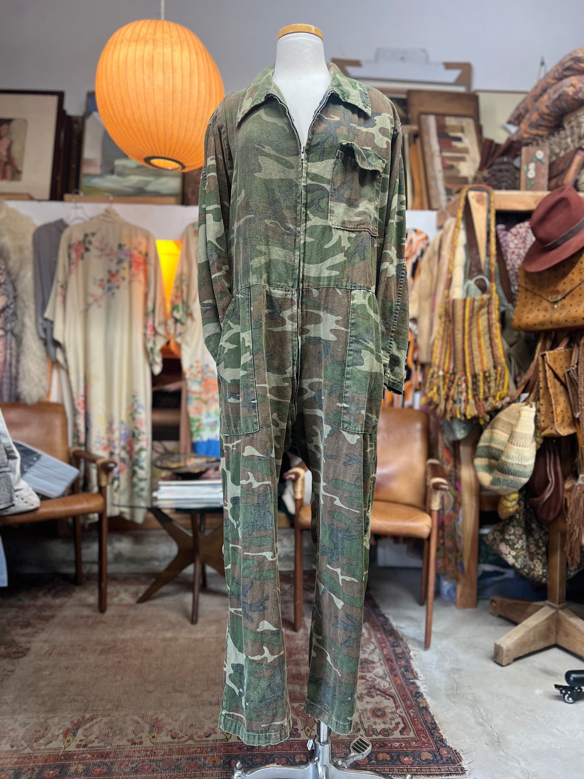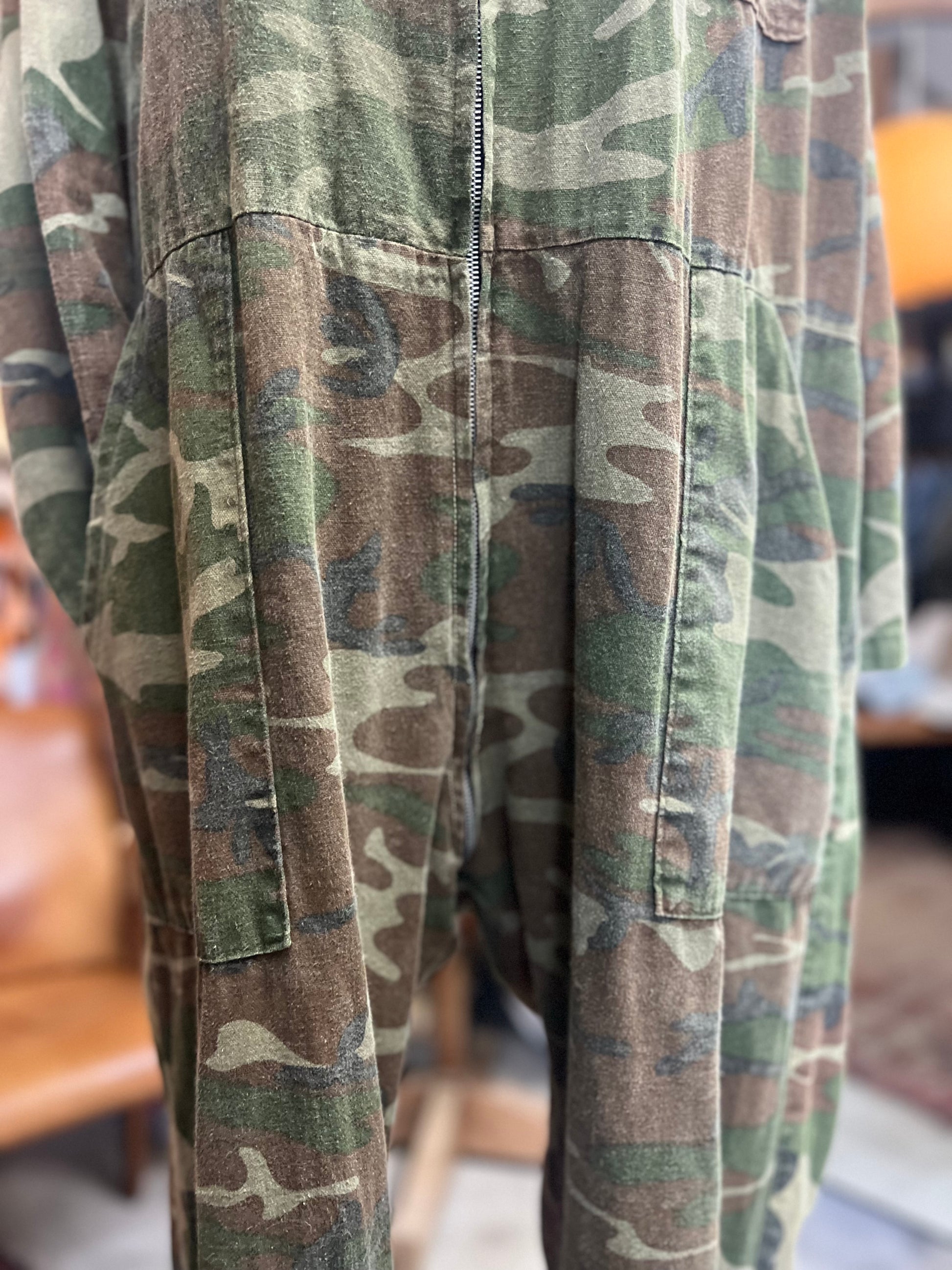 Vintage 1970’s Oversized KMart Zip Front Camo Jumpsuit XL/XXL