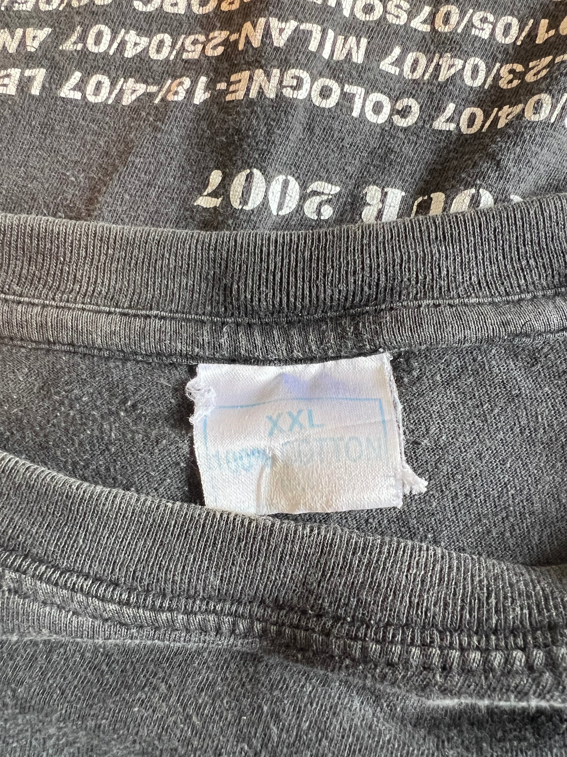 The wear on this tee is next level!! Super soft and thin with a beautiful drape, this Pink Floyd Dark Side of the Moon double sided tshirt is from the 2007 European tour. Some spots and holes throughout. Tag size XXL measures 26” pit to pit and 26” top to bottom.