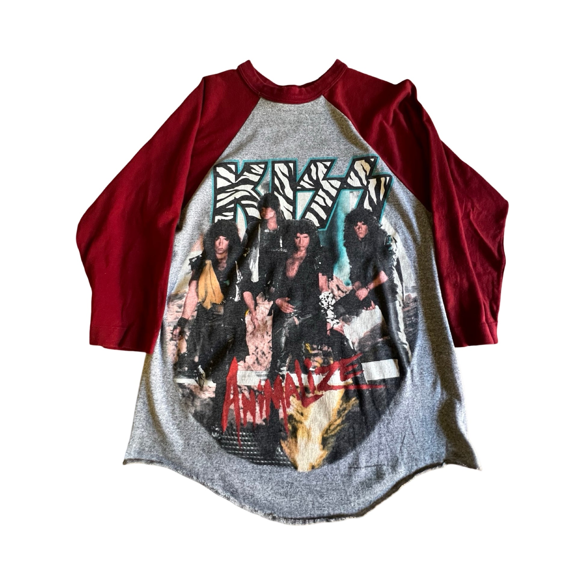 Rare vintage Kiss Animalize Tour 1984/1985 raglan baseball tour shirt. Single stitch, raw hem, soft & thin, tag size medium measures 17” pit to pit and 24.5” top to bottom.