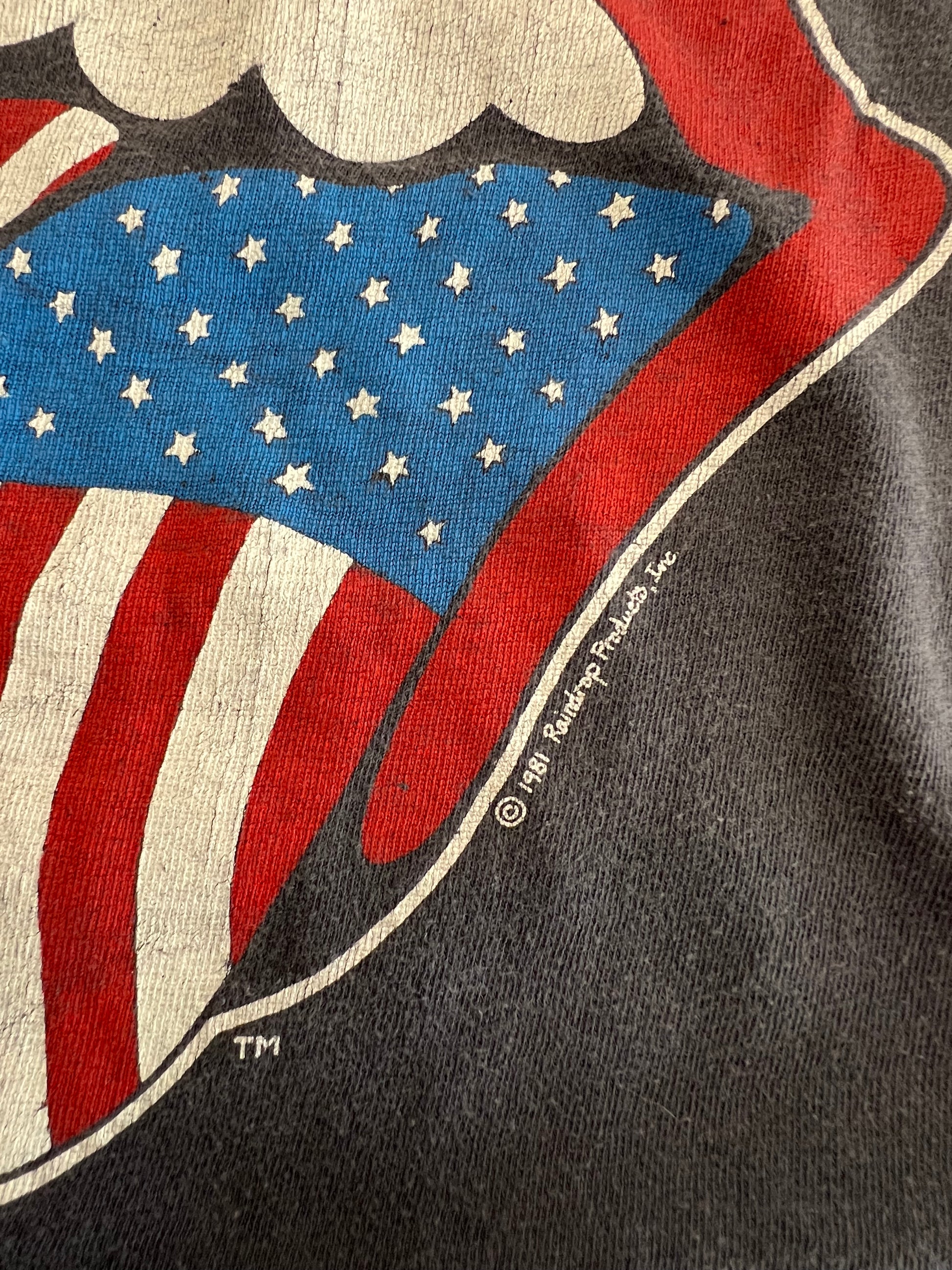 This shirt is vintage rock tee perfection. The Rolling Stones 1981 North American Tour, double sided, single stitch, copyright 1981 Raindrop Products, Inc. Soft and faded and worn to perfection, this shirt is amaaaaazing. Tag size medium, measures 18” pit to pit and 22” top to bottom.