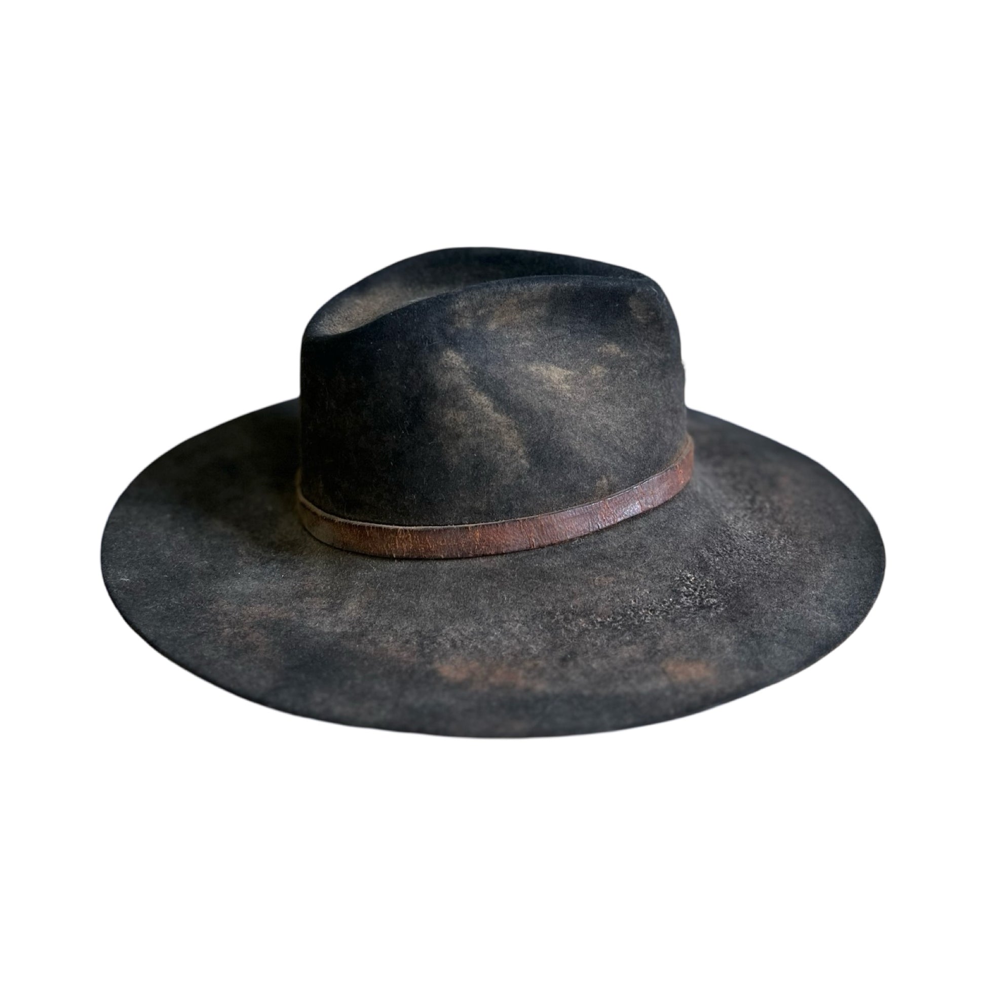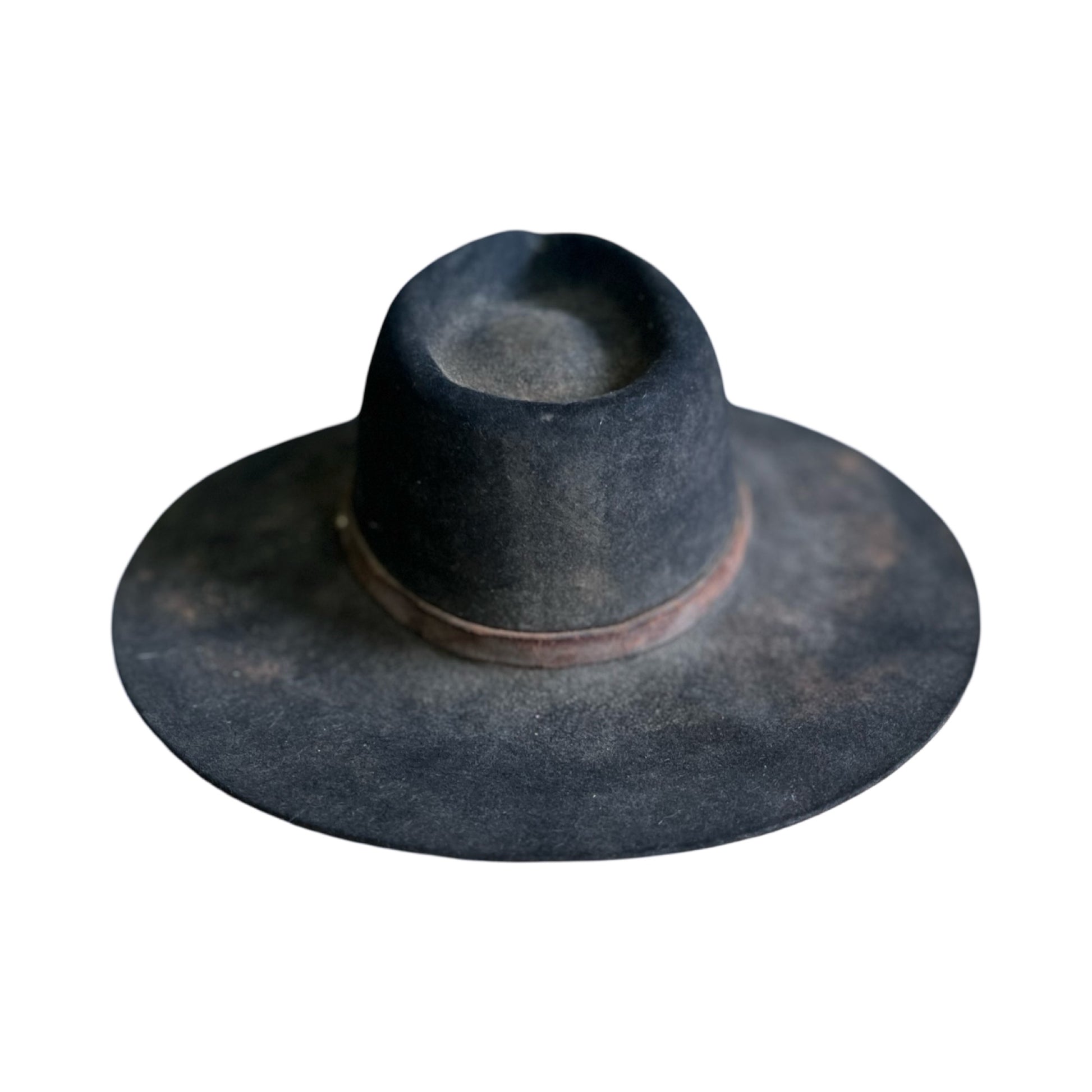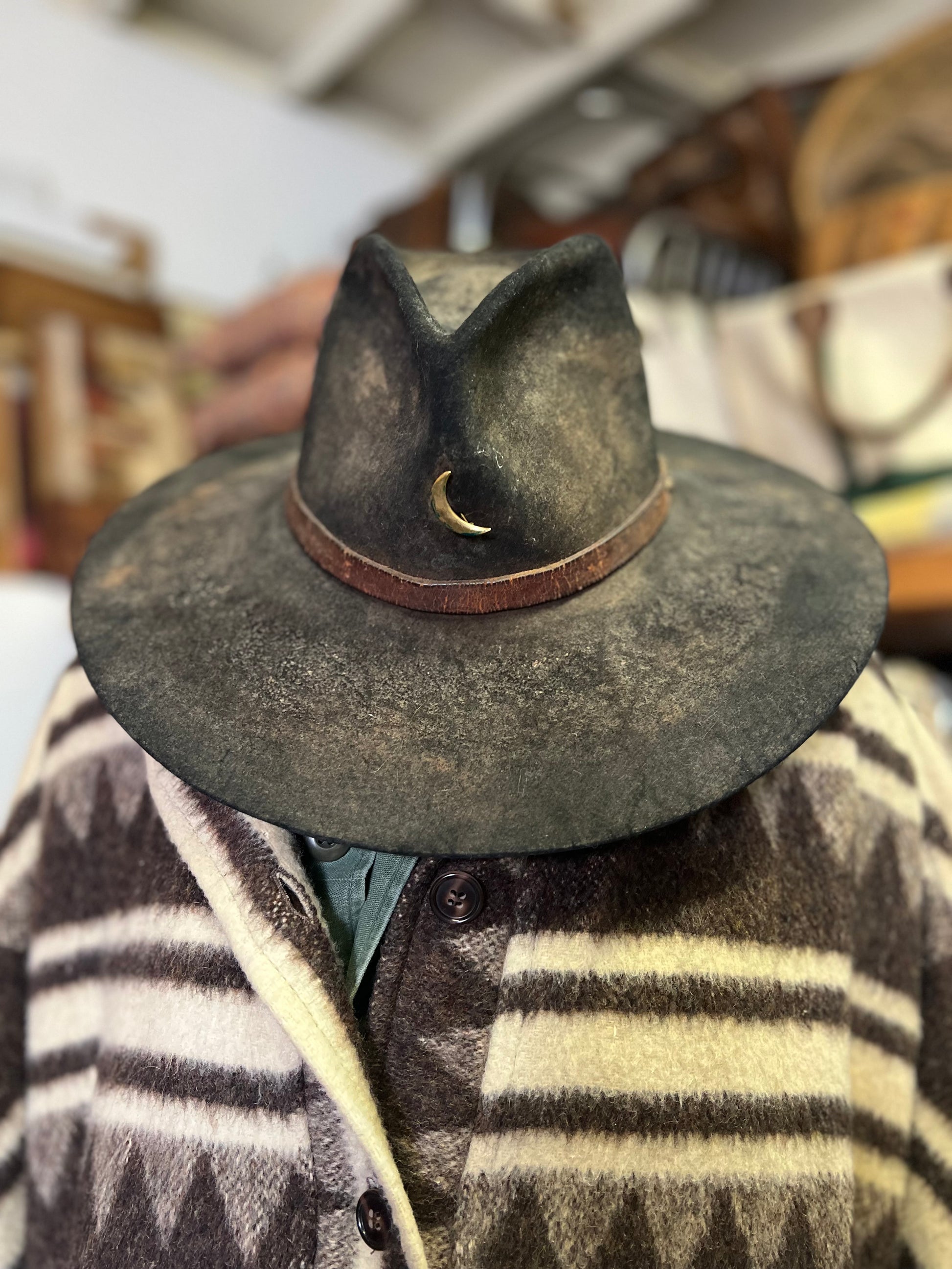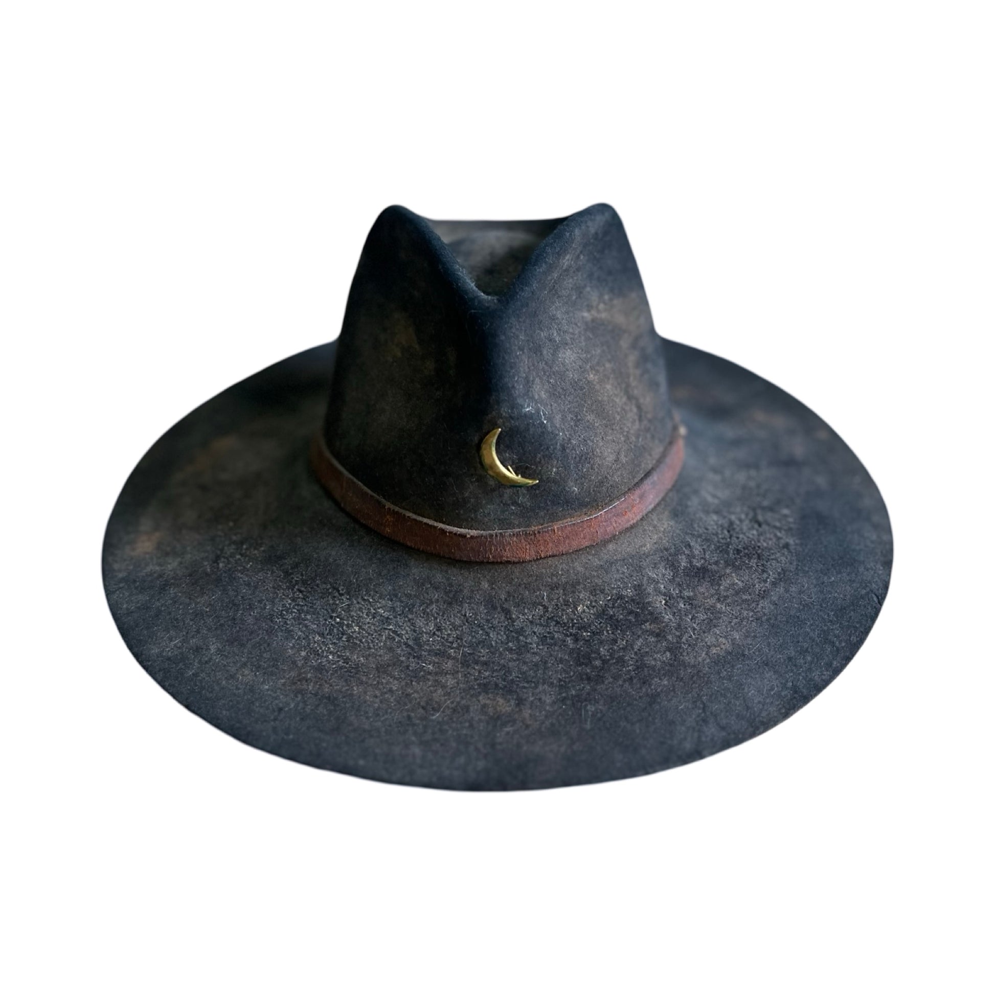 Vintage Bespoke Hat Crescent Moon Leather Band Weathered Worn Western