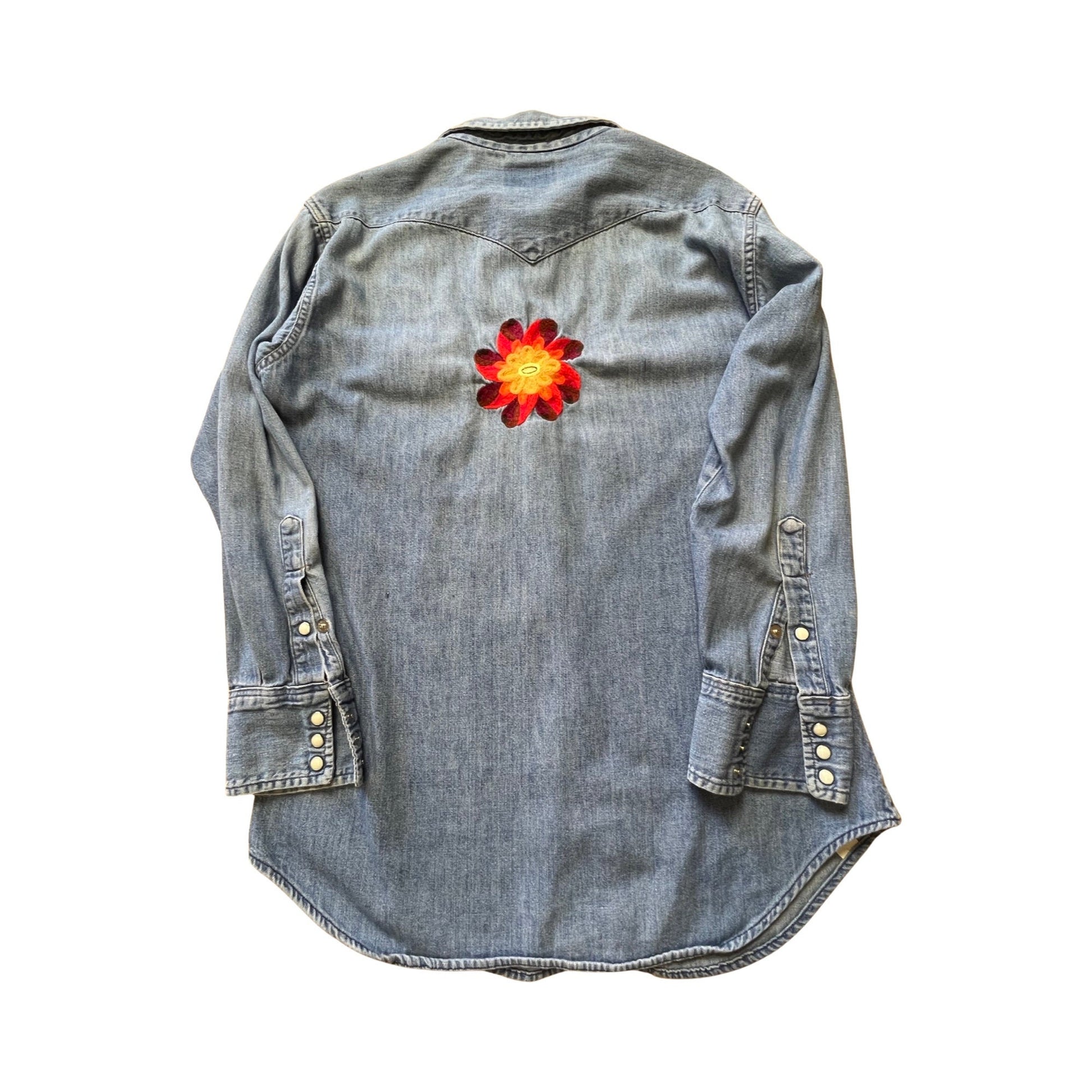 Vintage Sanforized Wrangler Pearl Snap Shirt Embroidered Flower