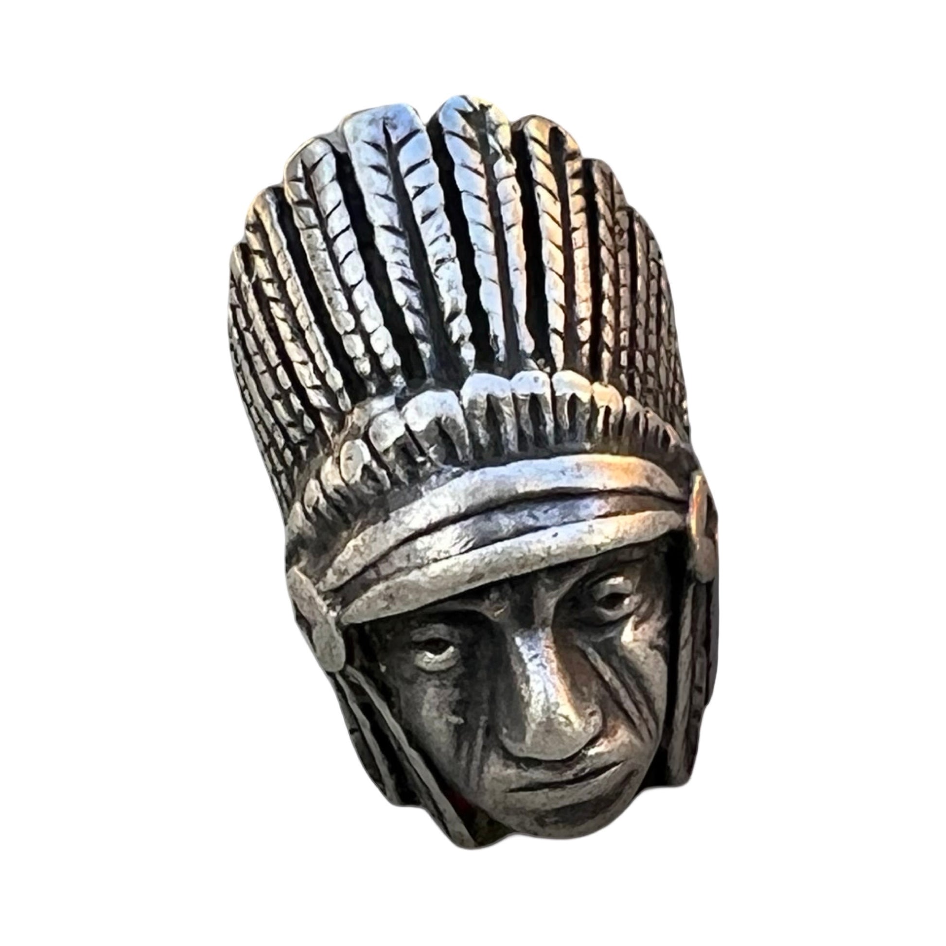 Vintage Native American Indian chief ring, shank slightly bent to fit size 6.5. Magnet and rub tested positive for sterling silver.