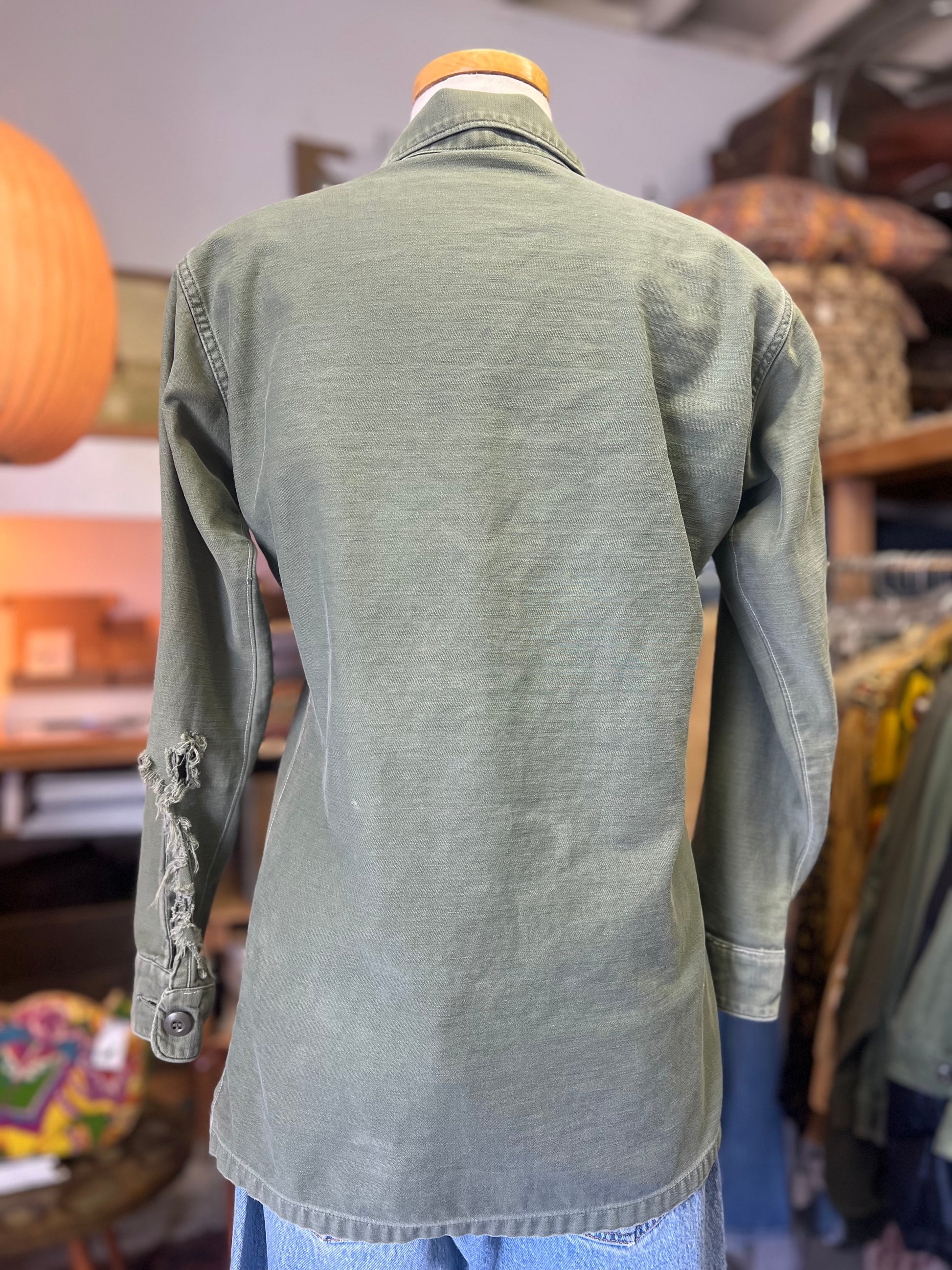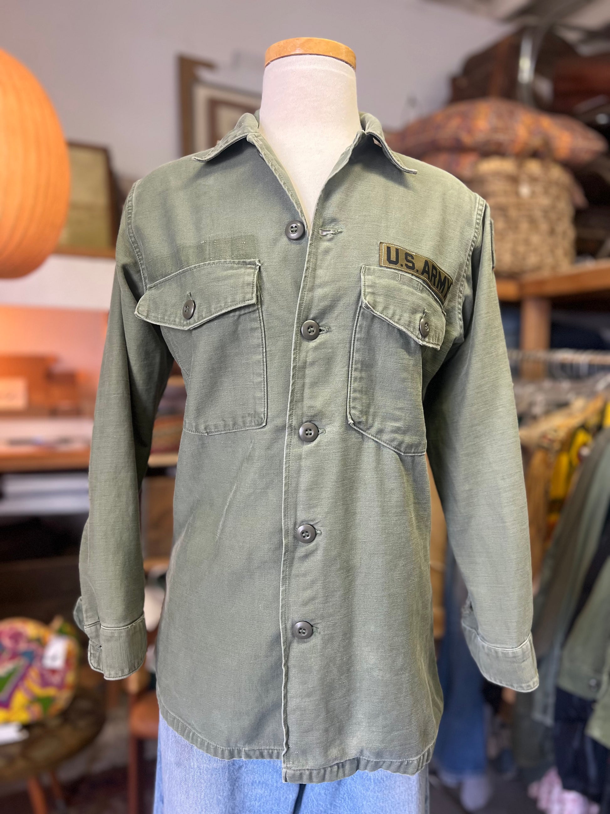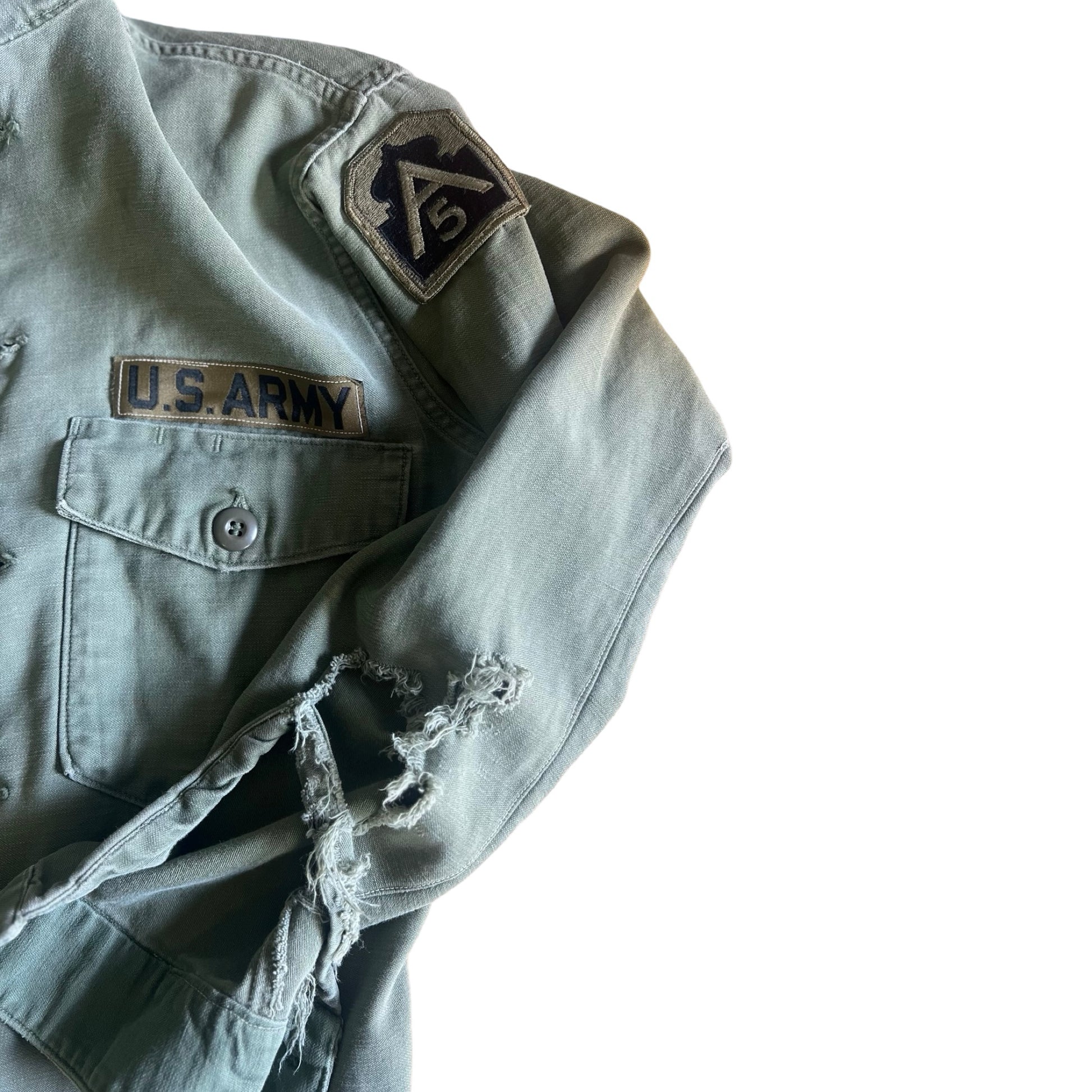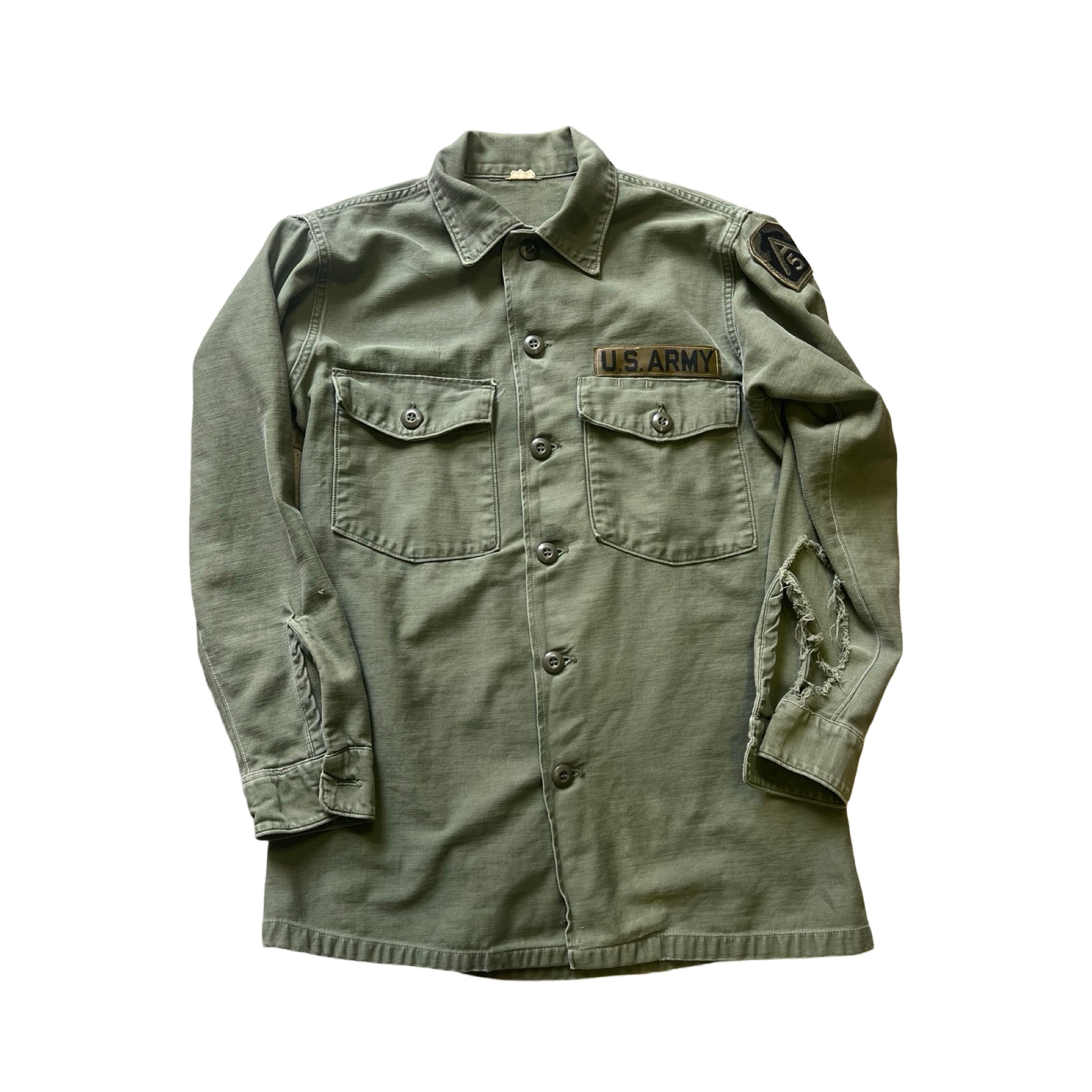 Vintage US Army Military Shirt Jacket Patches Faded Distressed
